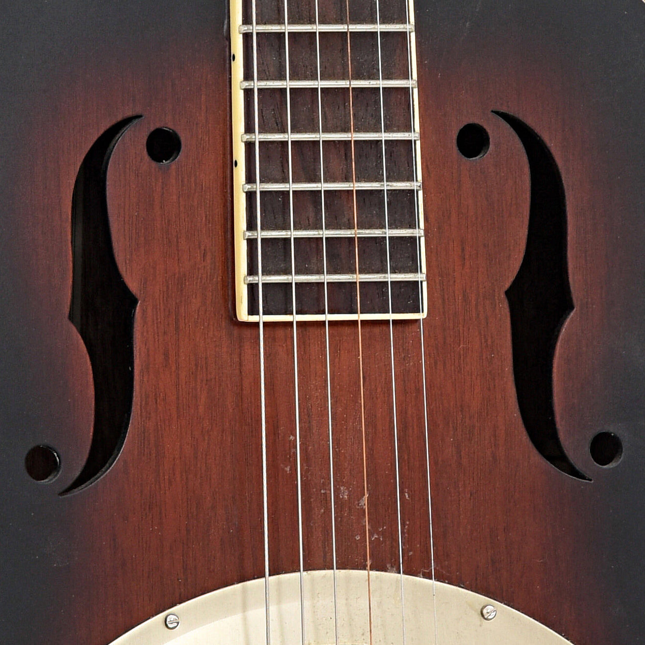 Nice entry-level round neck resonator guitar, all mahogany body and neck, aluminum cone and a biscuit bridge, EC, Sold AS-IS (needs minor fret work and set up, etc.)