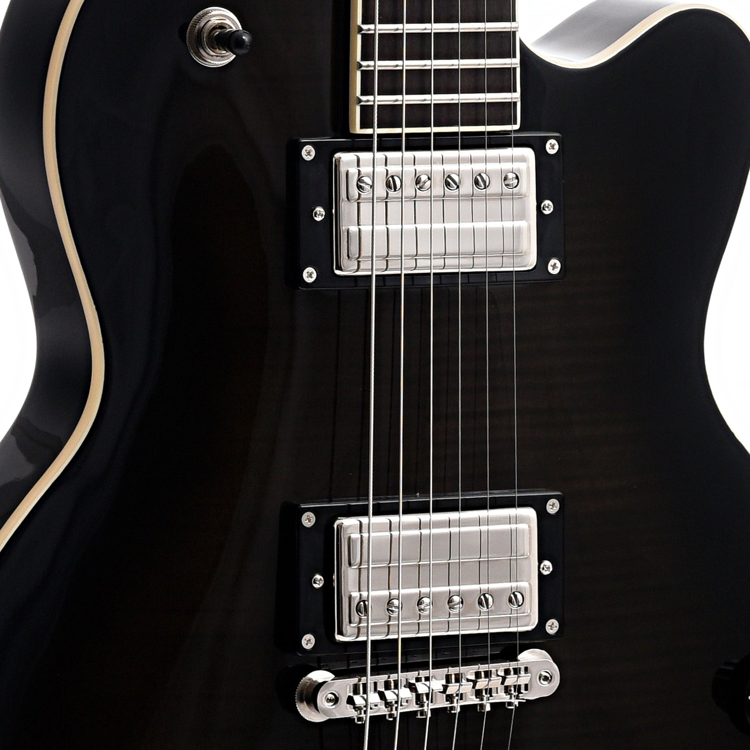 - Controls: Neck Volume & Tone, Bridge Volume & Tone, 3-way Toggle Pickup Switch, and Push/Pull Coil Split
