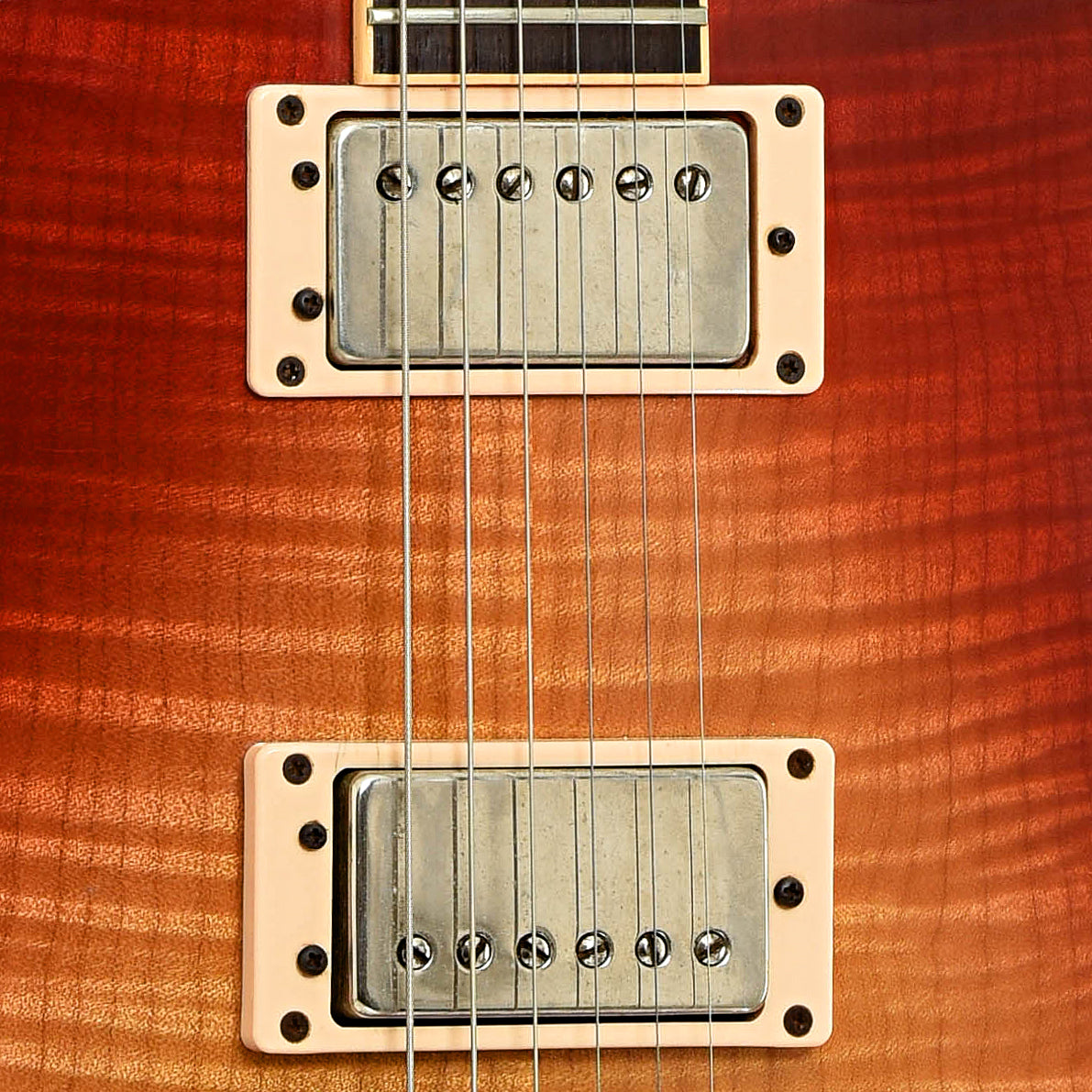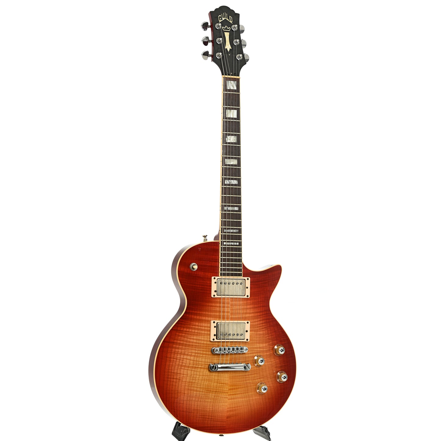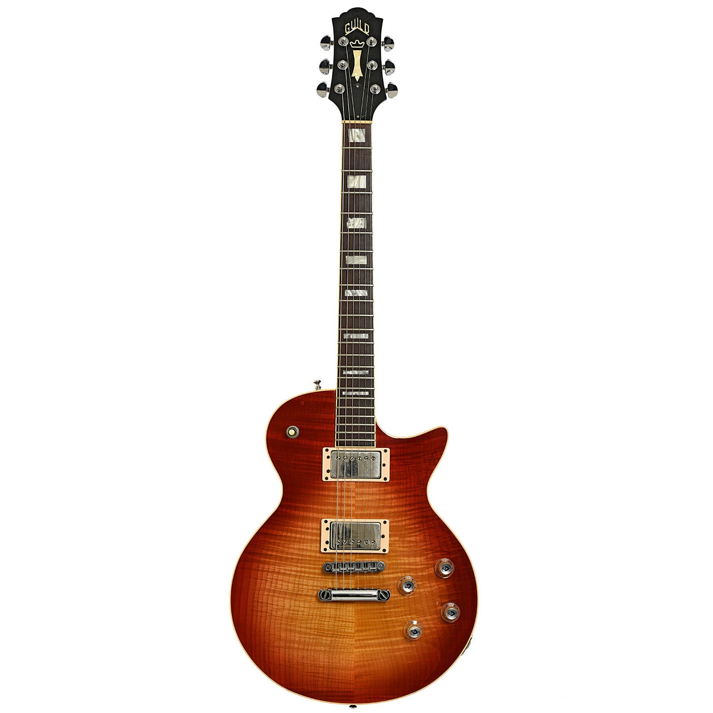 Built at the Fender Custom Shop, This Guild Bluesbird features a cherry sunburst finish on a nice looking bound maple top and a dark cherry finish on chambered mahogany body. It has a mahogany neck and a bound rosewood fretboard with block inlays. Equipped with 2 Duncan 59 humbucking pickups. Classic looks and sound.