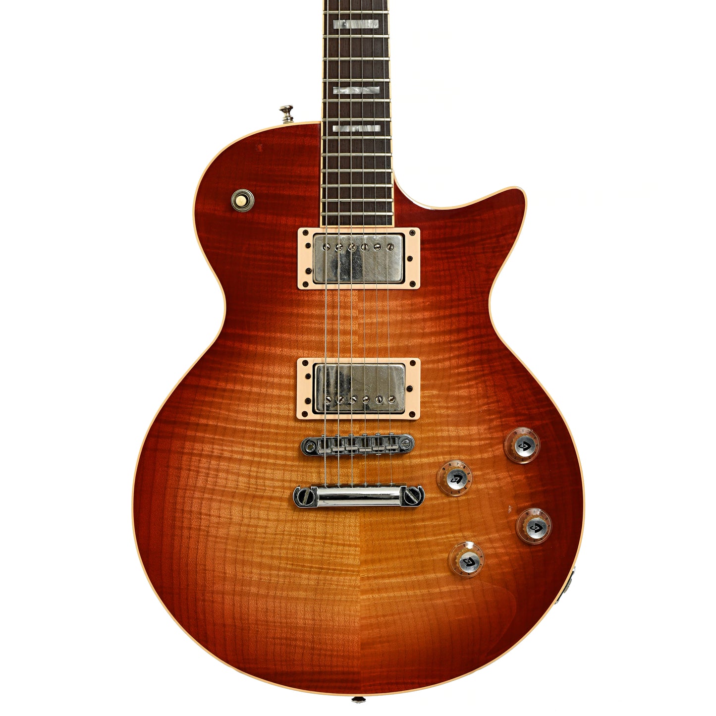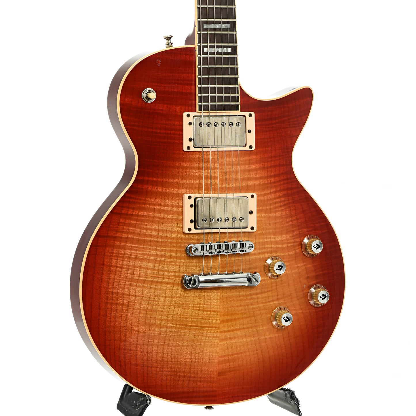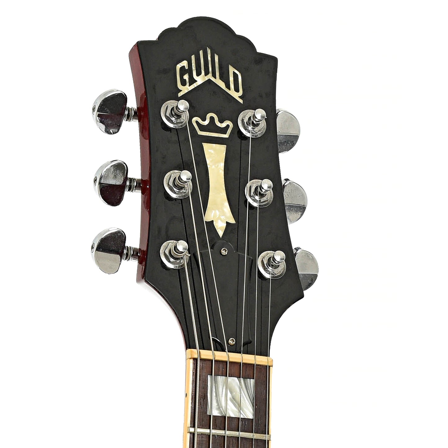 Built at the Fender Custom Shop, This Guild Bluesbird features a cherry sunburst finish on a nice looking bound maple top and a dark cherry finish on chambered mahogany body. It has a mahogany neck and a bound rosewood fretboard with block inlays. Equipped with 2 Duncan 59 humbucking pickups. Classic looks and sound.