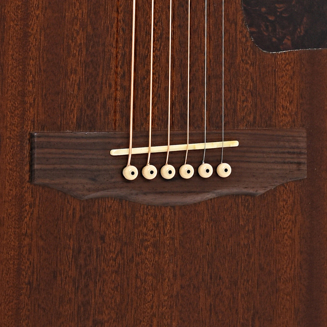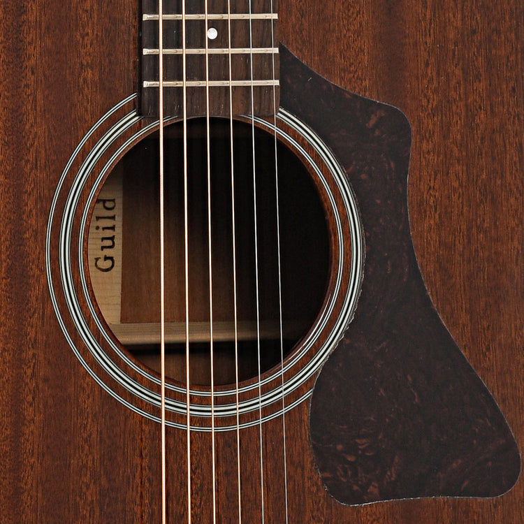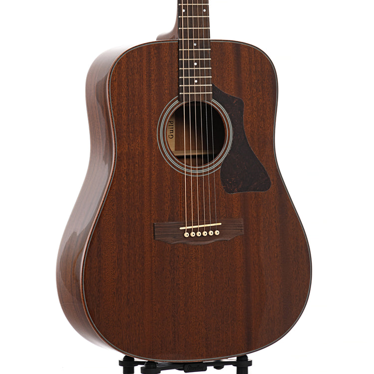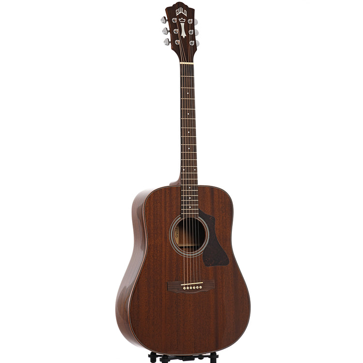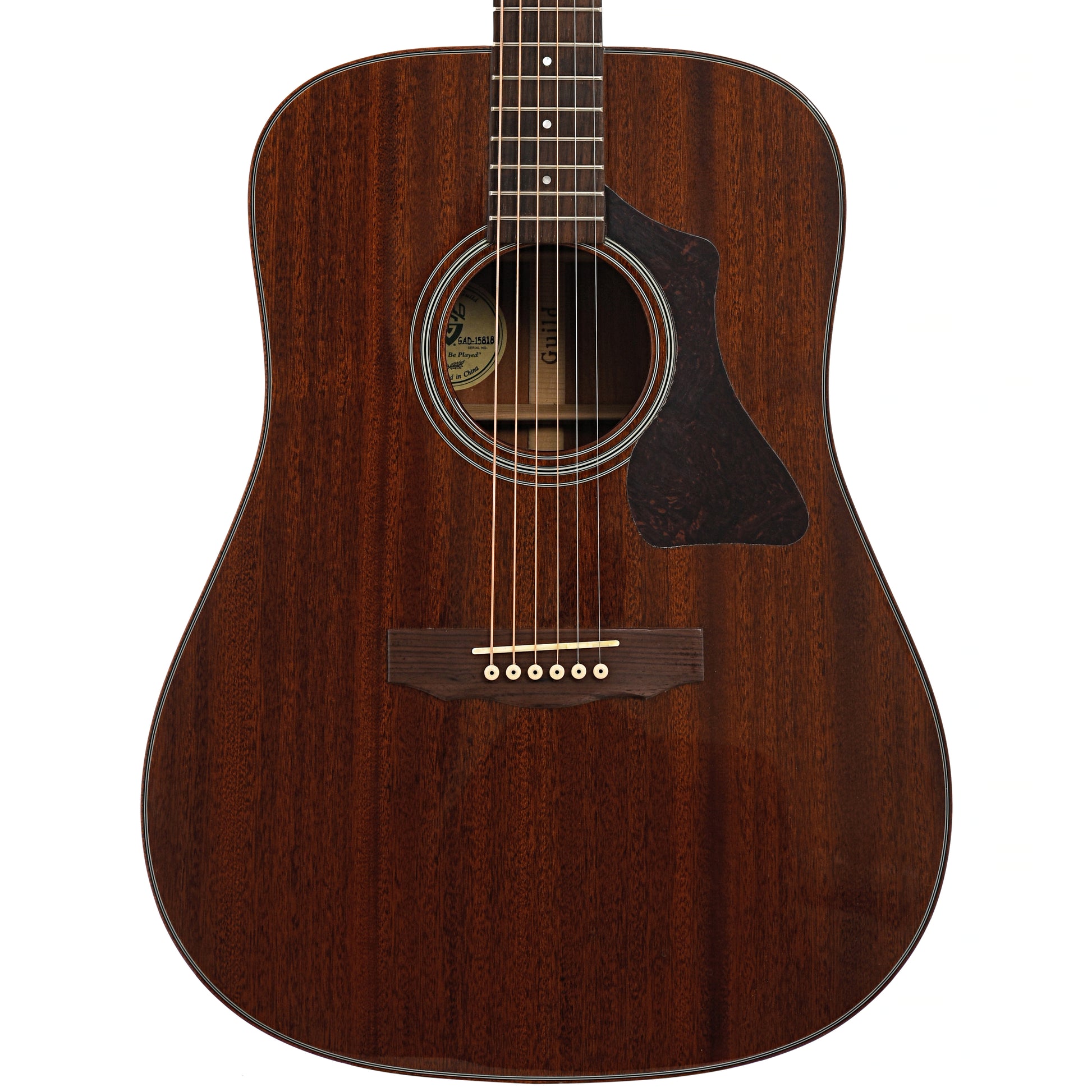 Nice dreadnought from Guild, solid mahogany body and neck, rosewood fingerboard and bridge. Great strummer! Finish checking on top. Original tweed and leather case. Made in China.