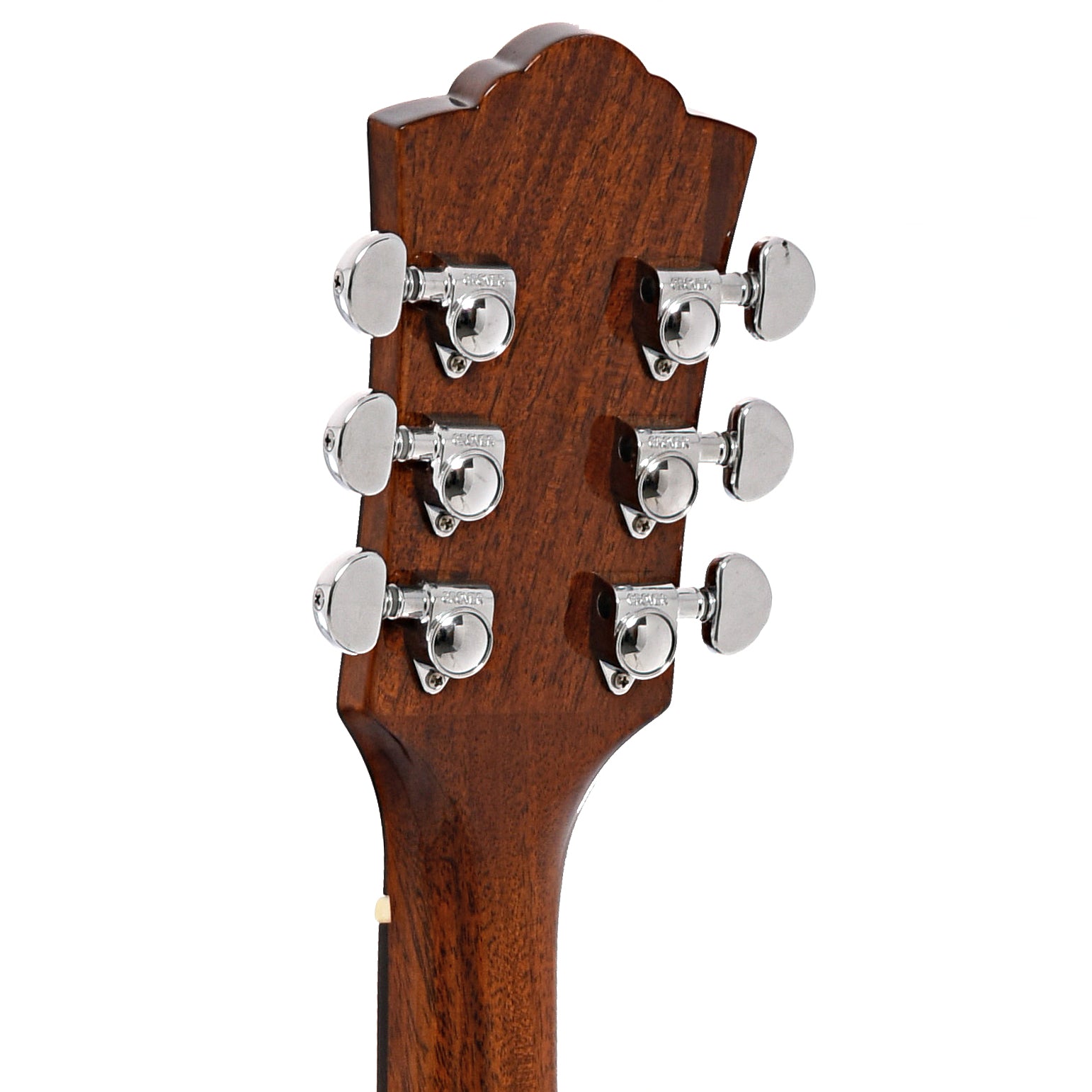 - Rosewood peghead overlay features pearloid Chesterfield and logo inlays
