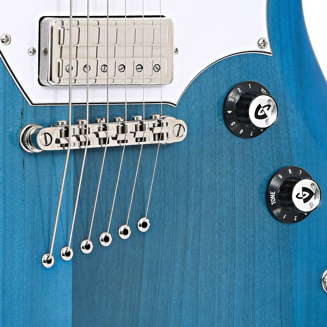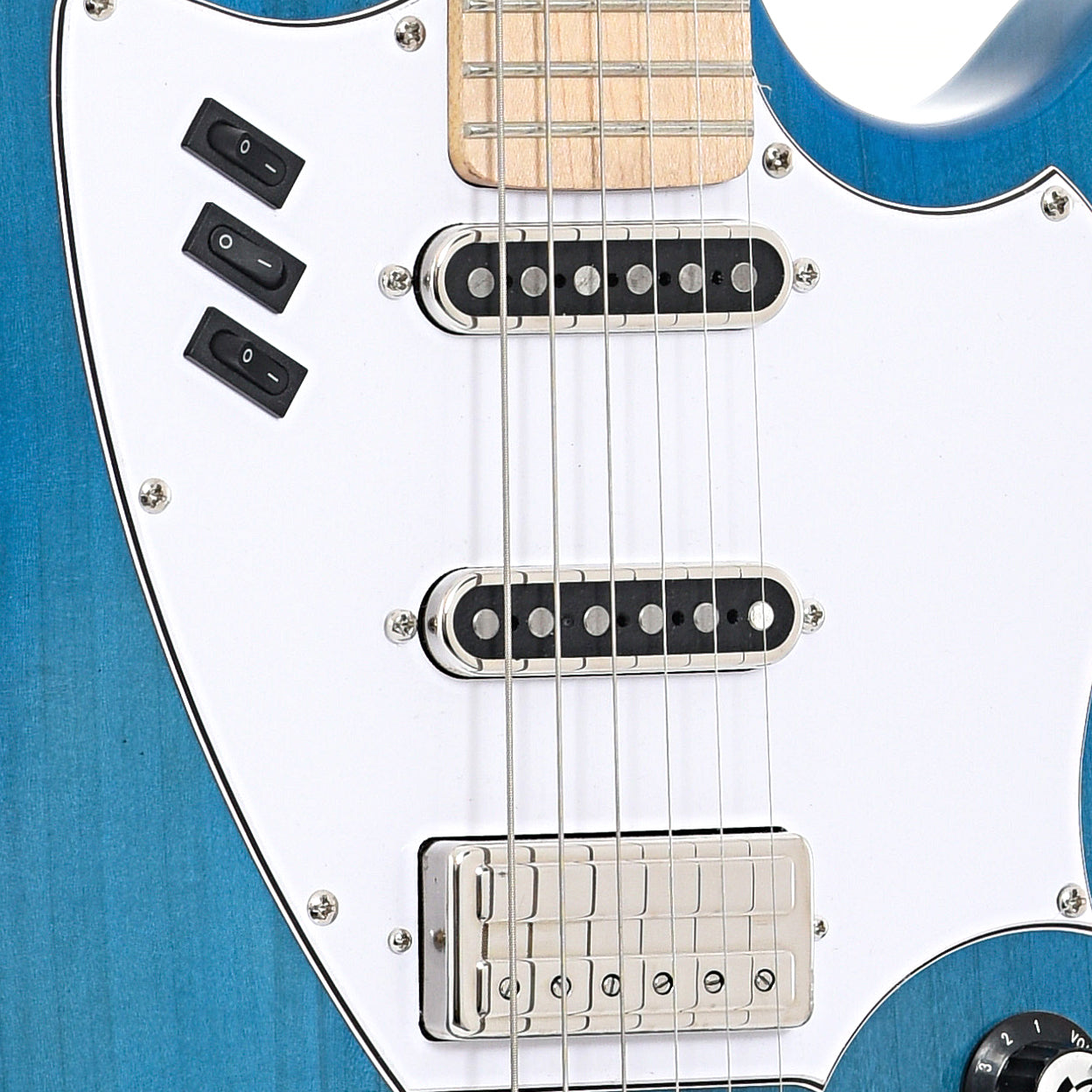 The vintage-inspired body shape of the Guild Surfliner features hum-single-single pickups with on/off rocker switches, and a string-through body with a Tune-o-Matic bridge for maximum sustain and resonance. It's a great design that is fun to play - great for a multitude of styles.