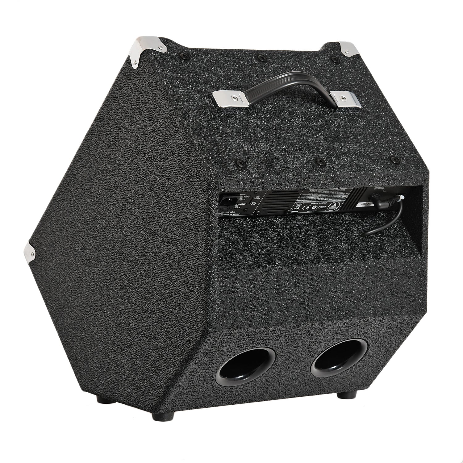 A powerful, lightweight bass amp that is ready for the stage. The Hartke Kickback KB12 features include Hartke's patented HyDrive Speaker technology, 500 watts of class D power and a full 3-band EQ. The combo can tilt back by 45 degrees to allow for more accurate on stage monitoring.