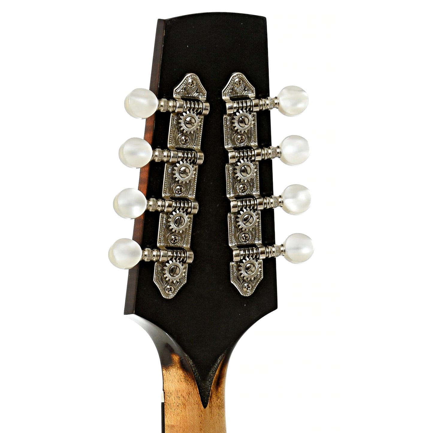 - Elevated ebony radiused fingerboard, pearl dots, scooped extension