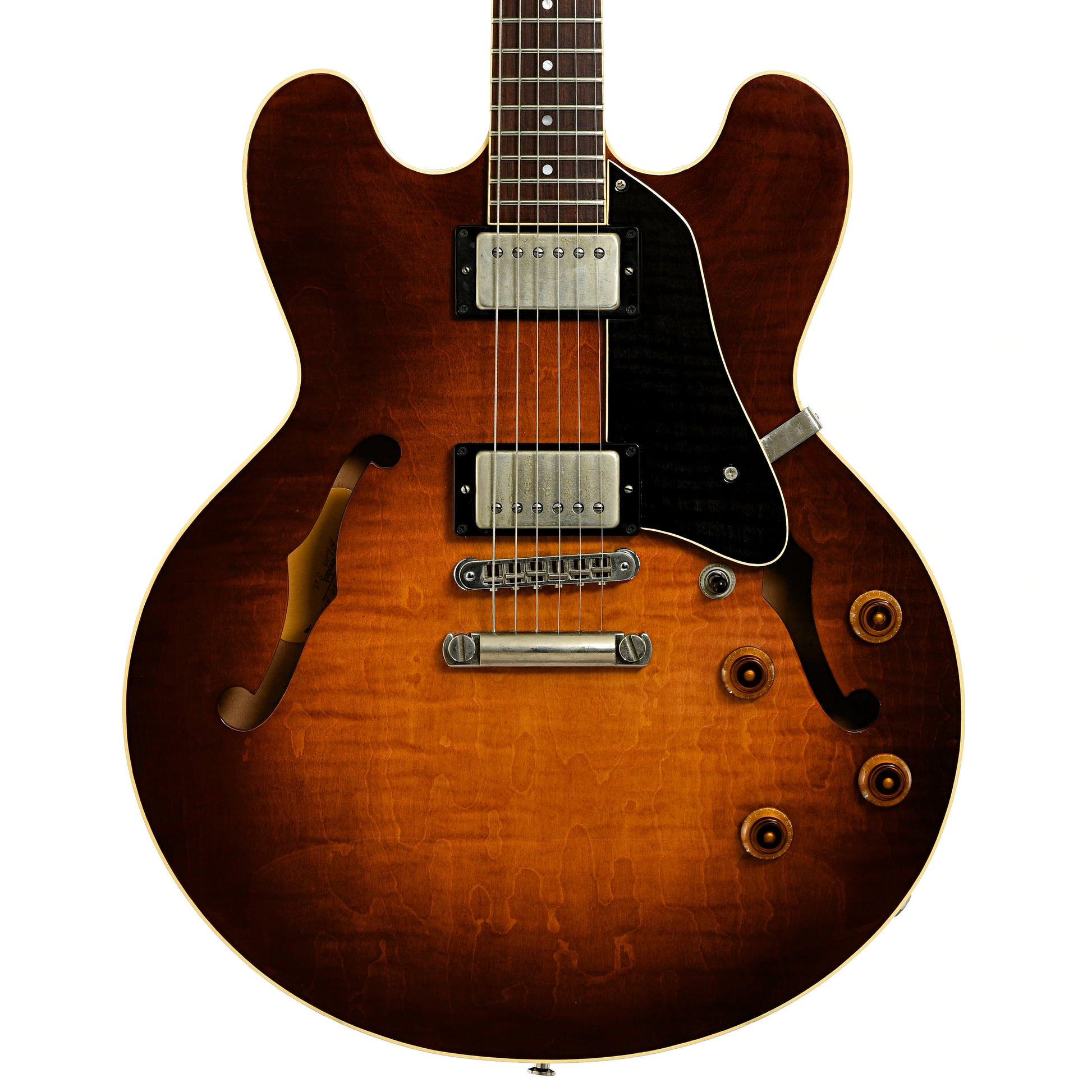 - Tobacco sunburst finish on figured maple top, back and sides