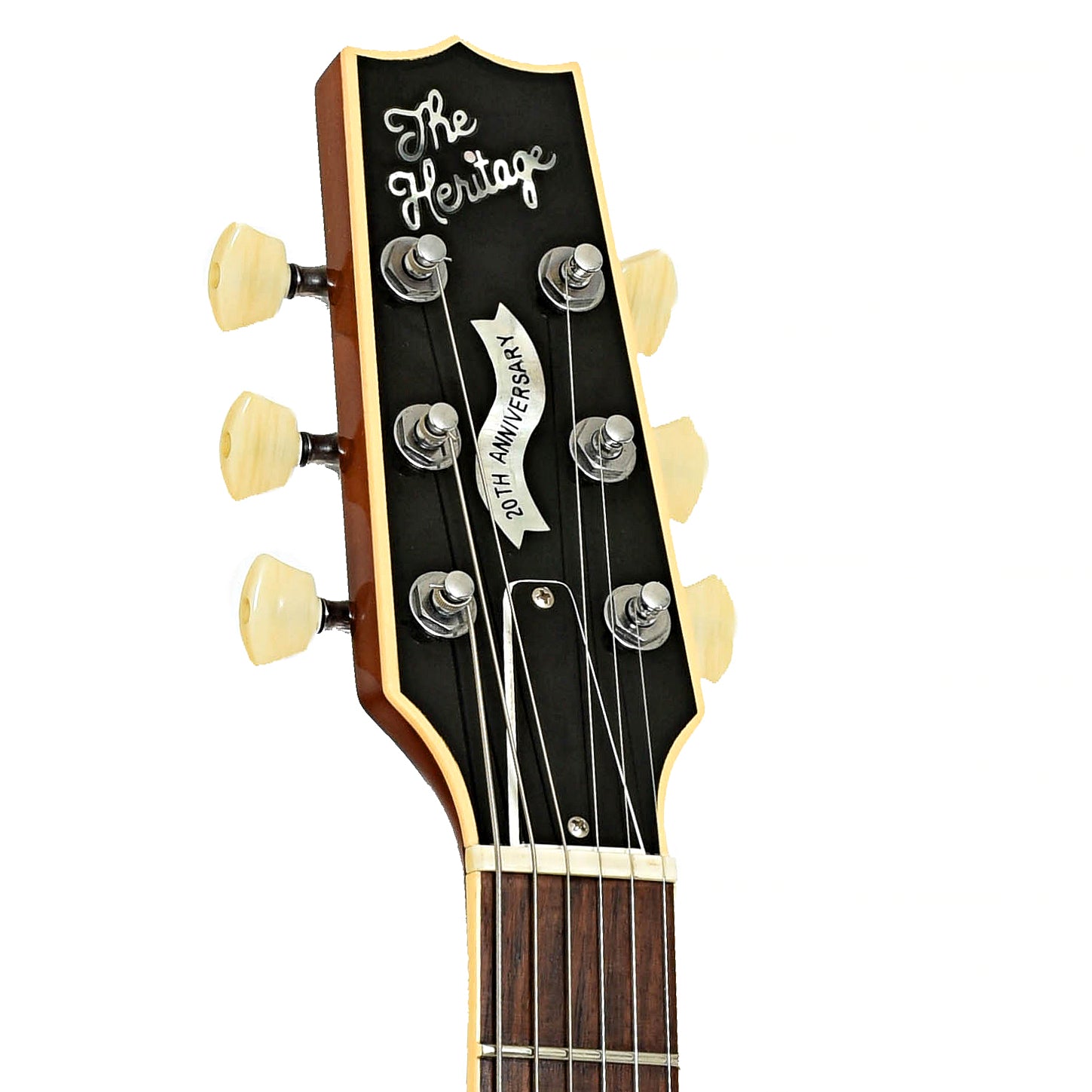 - Bound black peghead overlay features pearl logo and anniversary banner inlays