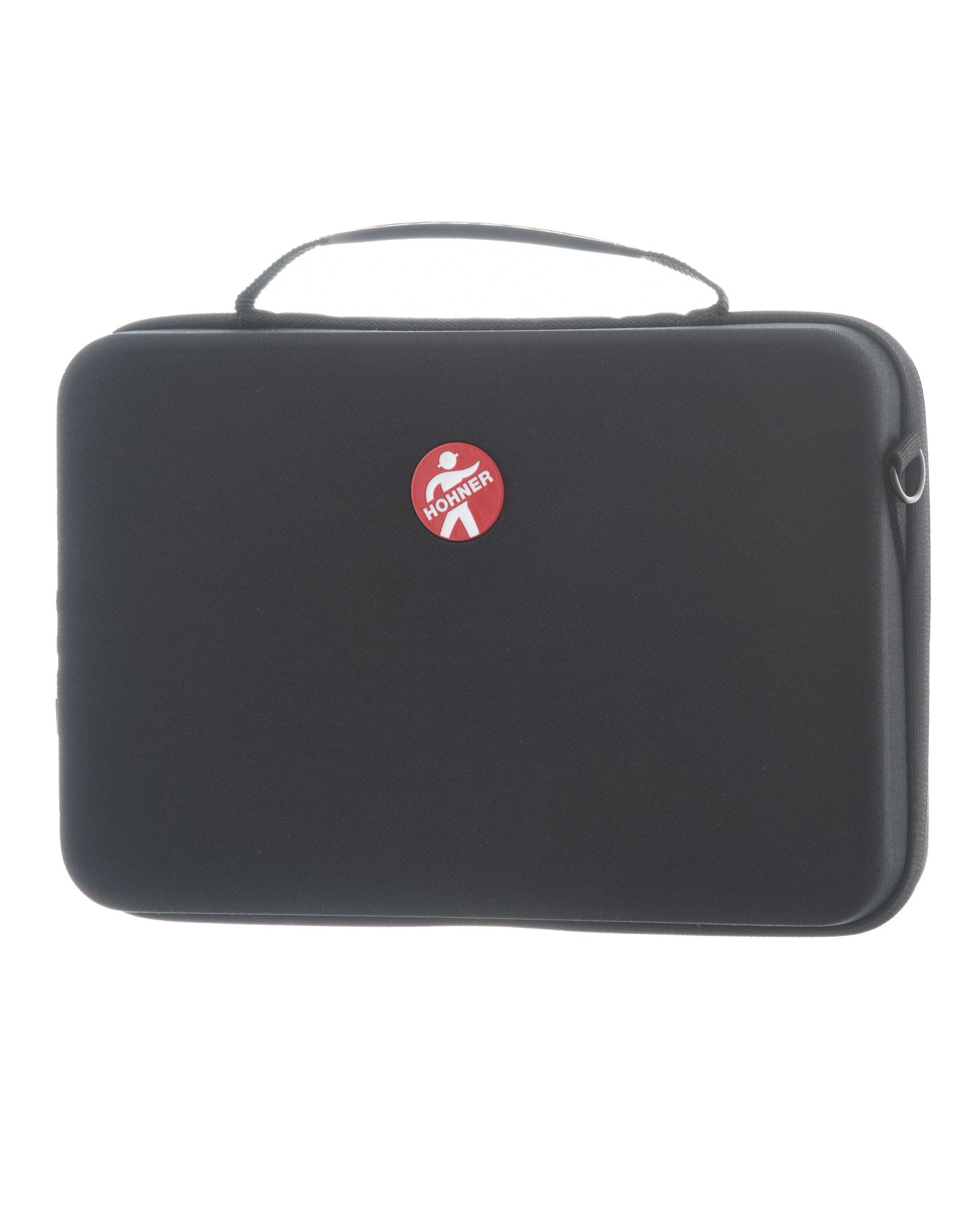 The Hohner FlexCase L is a small briefcase that offers the seasoned player everything they need to store and tote their gear. Either 18 diatonic harps, five 12-hole chromatics or two 16-hole chromatics or any combination of the above plus a vocal microphone or numerous accessories and tools fit in this case. The case protects each harmonica individually, preventing scratches or dents, and provides sufficient air circulation. A removable tool bag and middle section increase variability and hand-and shoulder straps ensure optimal carrying comfort.
