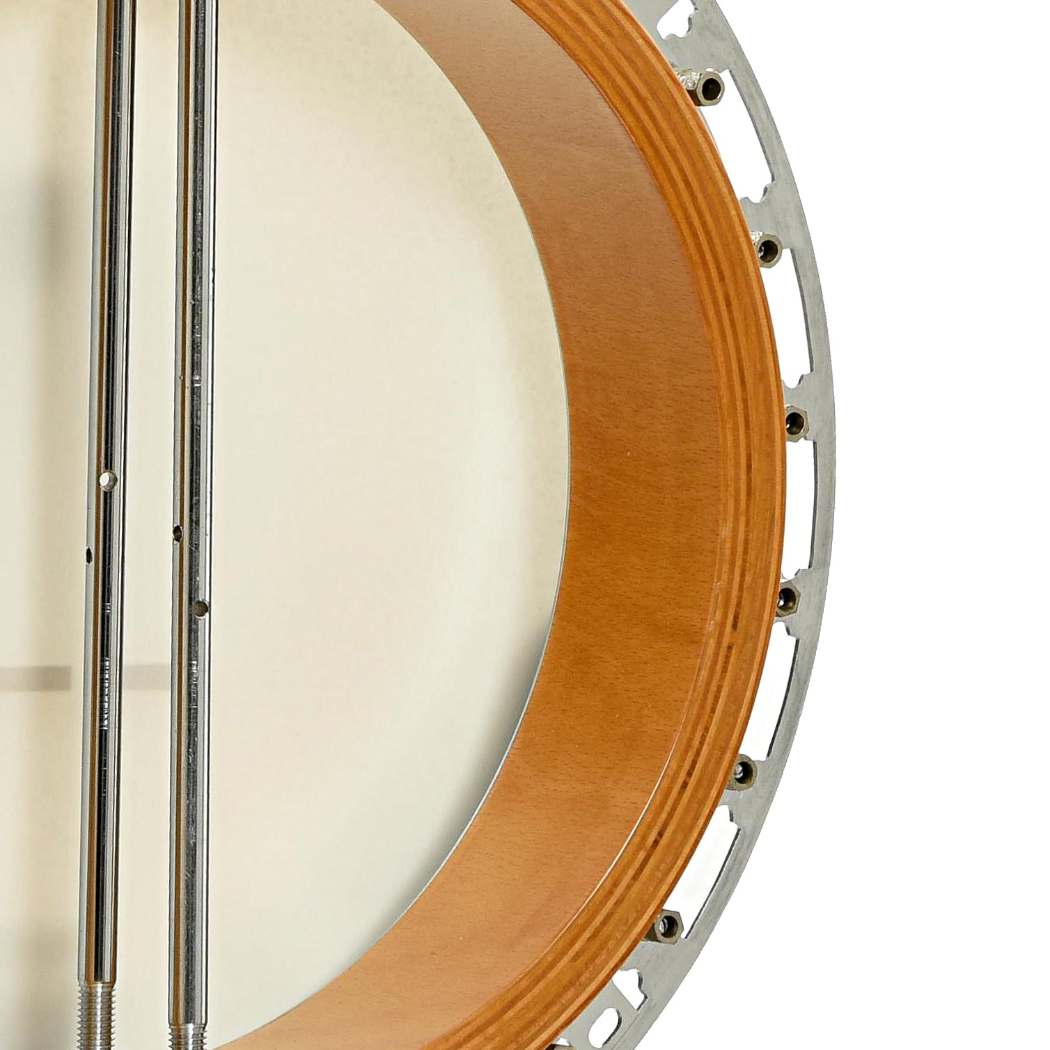A pretty import banjo with low miles, this Hohner resonator has a maple resonator and 3-piece neck in sunburst finish, bound rosewood fingeboard, flathead tone ring, maple rim, planetary tuners, and chrome hardware. Plenty of banging tone! Original brown hard shell case.