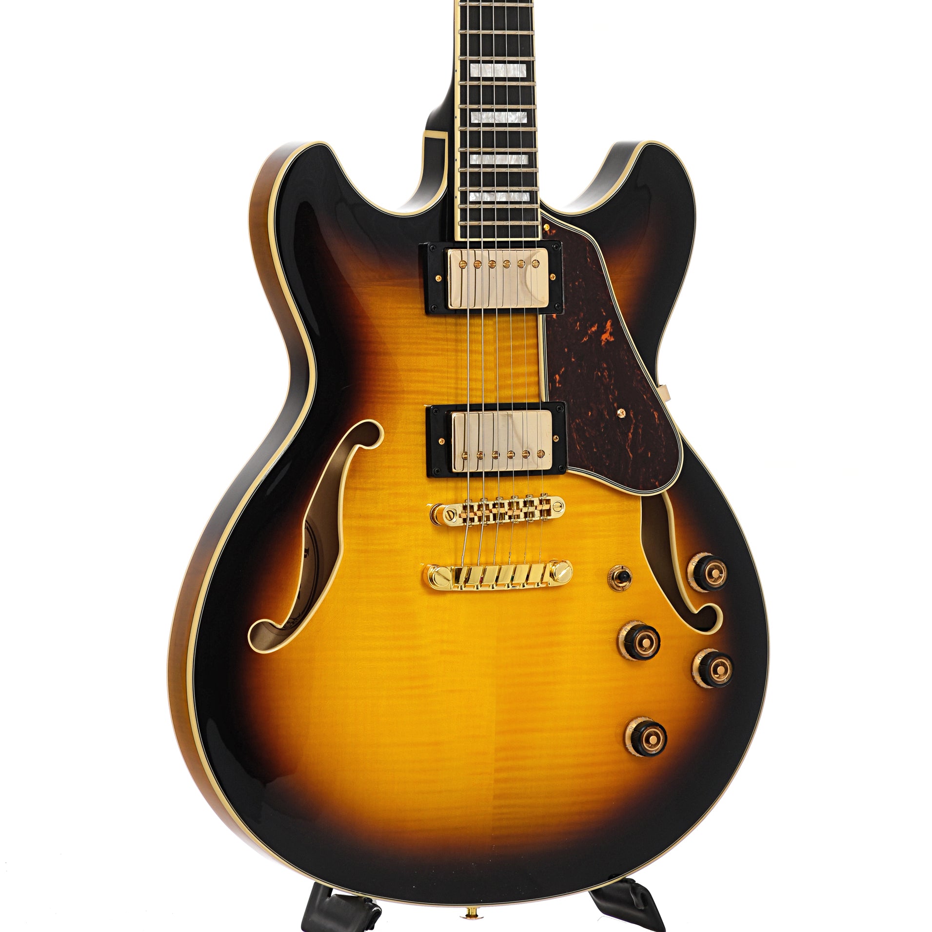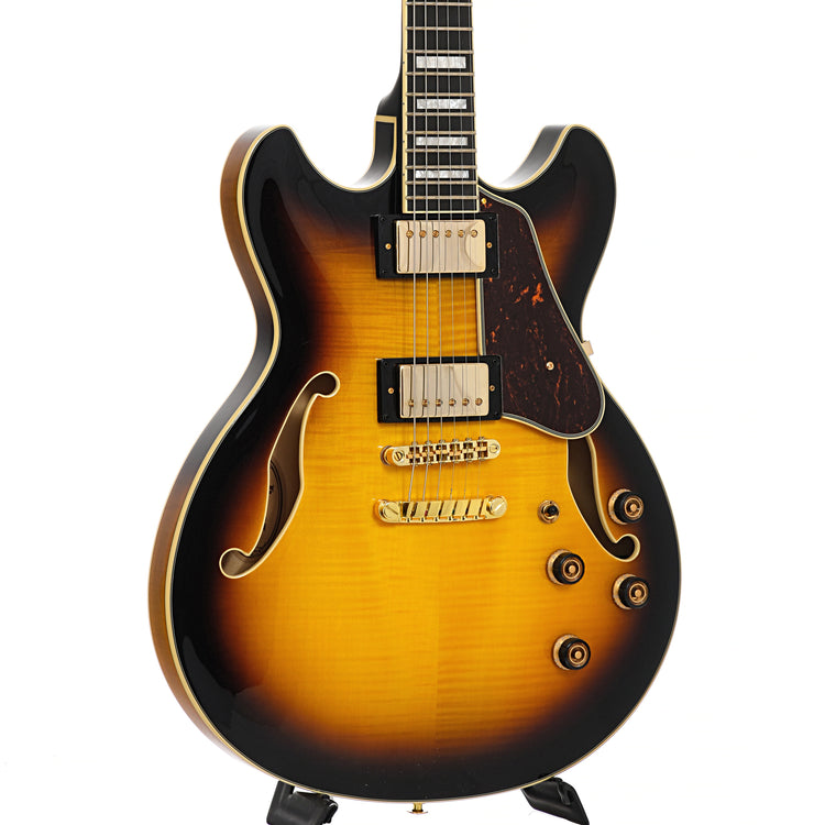 A warm and balanced semi-hollowbody guitar. The Ibanez AS93FM features include a nicely flamed maple top, Super 58 humbucking pickups and a bound Macassar ebony fretboard.