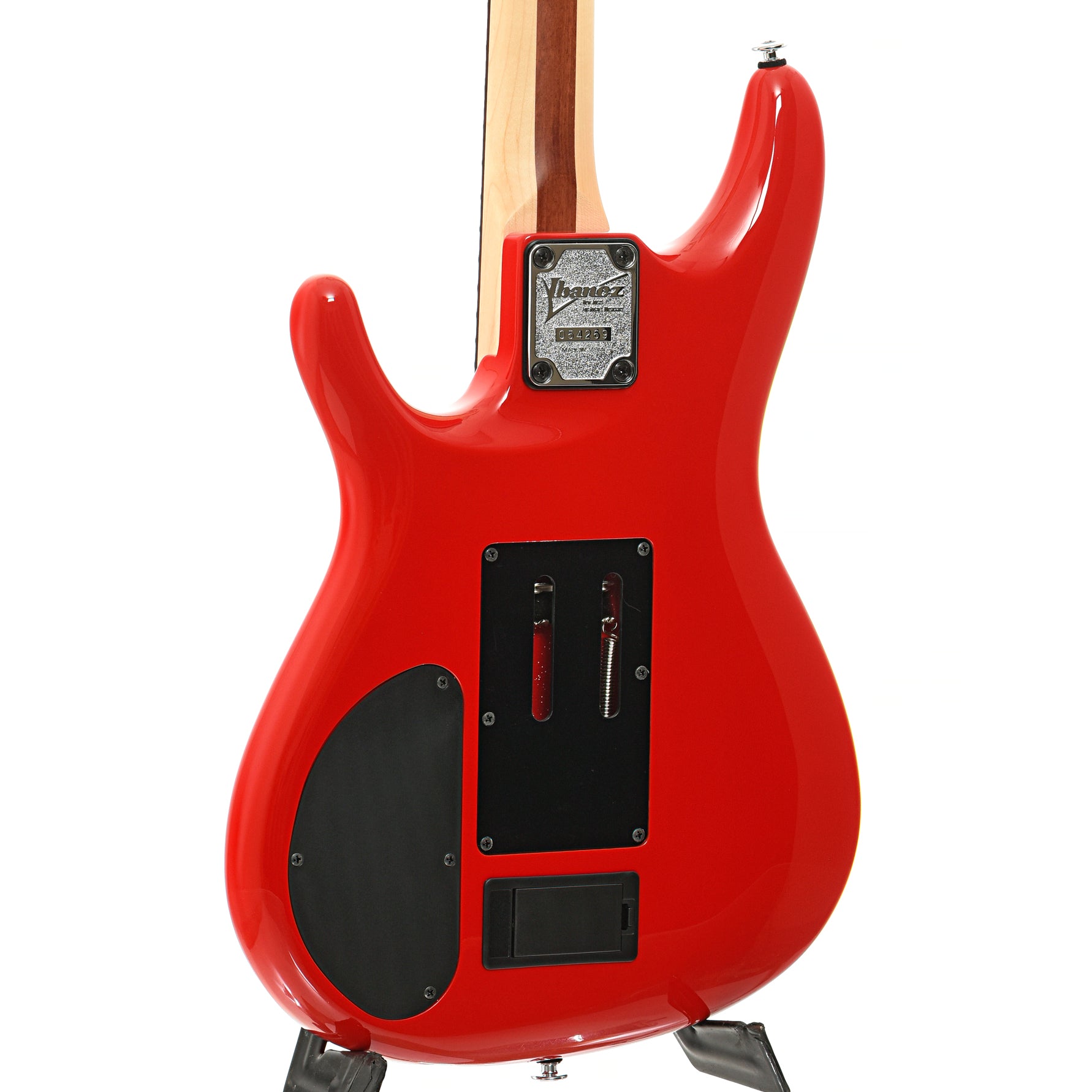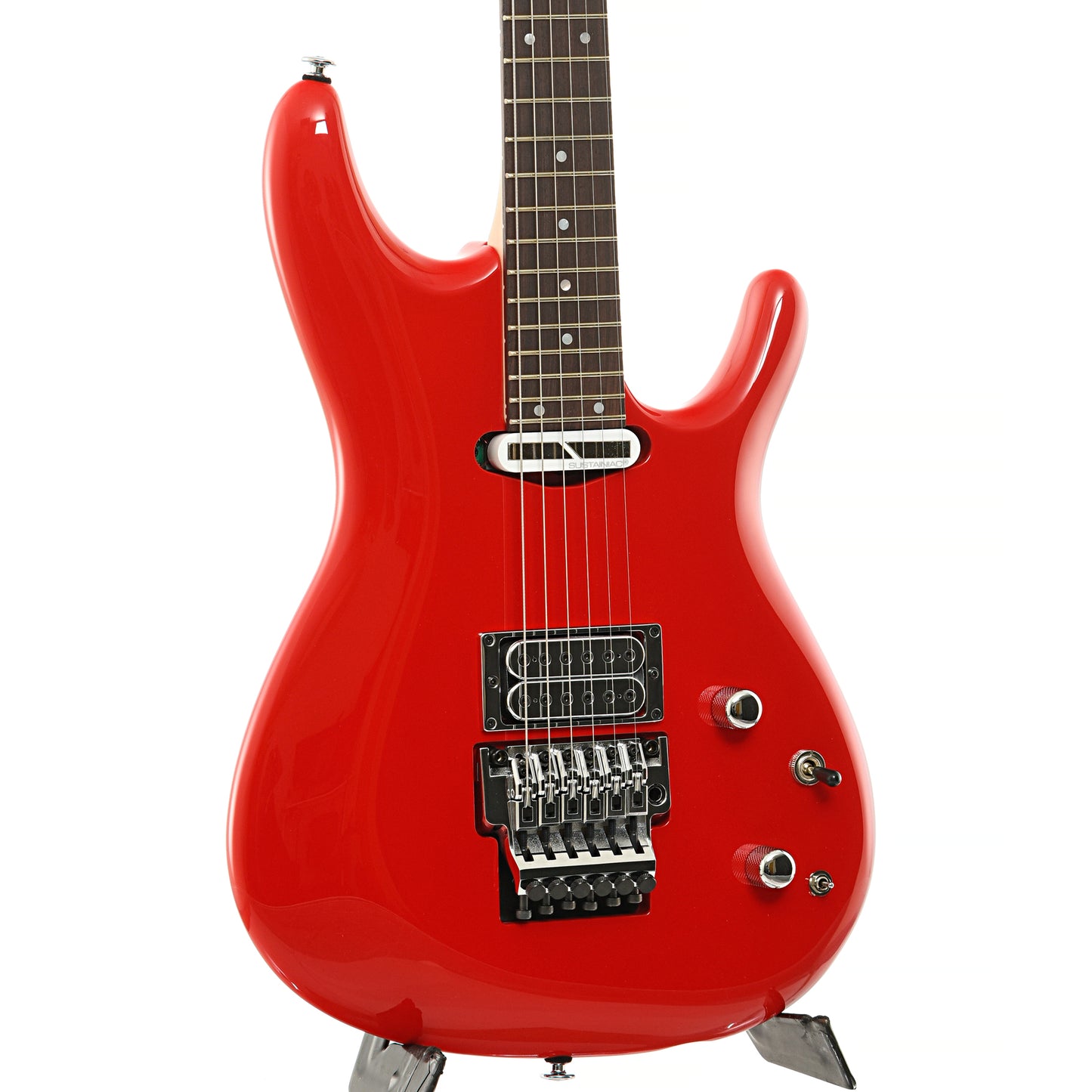 A guitar worthy of the legendary Joe Satriani name that is packed with hard to find features. The Ibanez JS2480 features include a SUSTANIAC Driver neck pickup with 3-way mode selector (normal: sustains the fundamental, mix: sustains the fundamental and overtone and harmonic: sustains overtone), a DiMarzio® Satchur8™ pickup, JS/Edge tremolo and a high-pass filter on the volume pot that maintains high frequencies at low volumes.