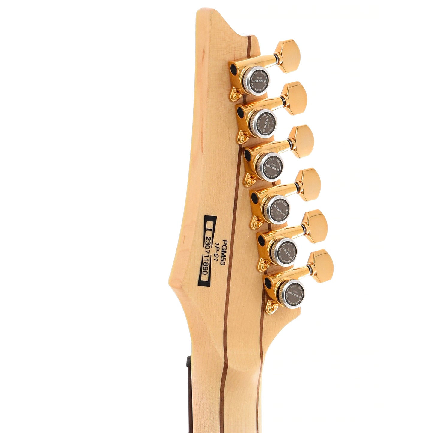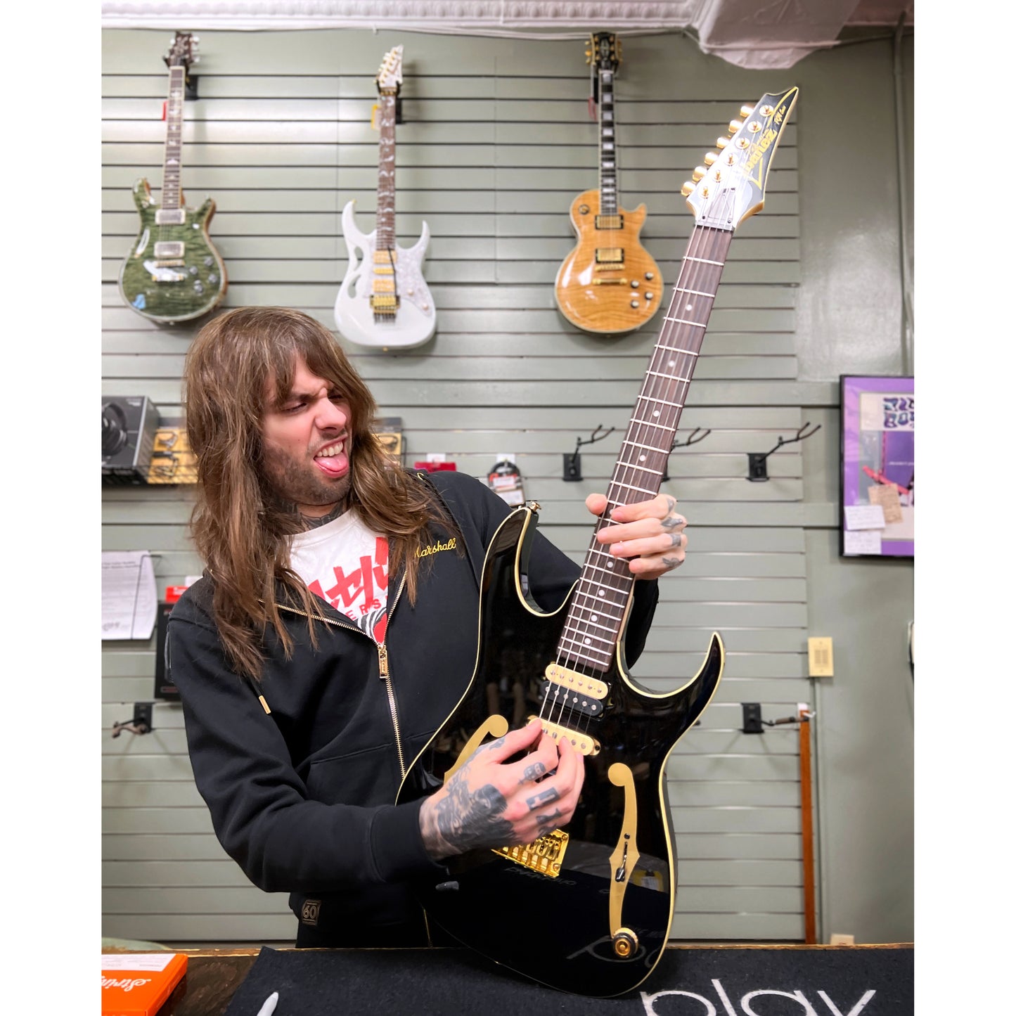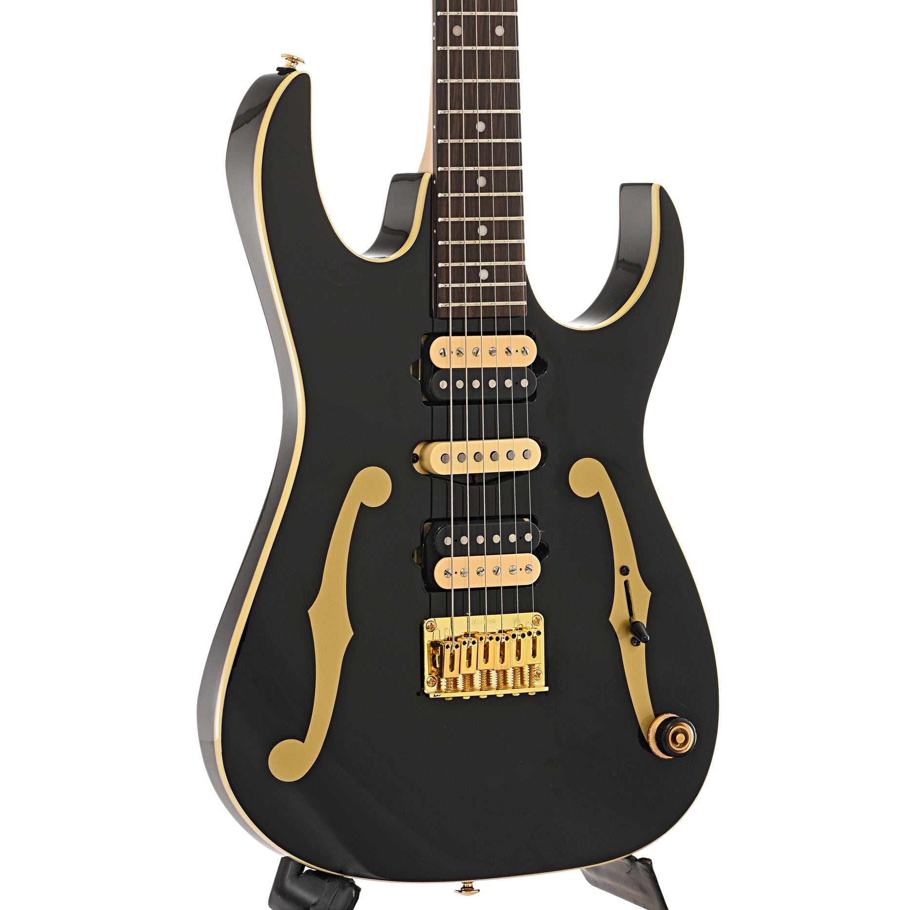 The Ibanez Paul Gilbert Signature PGM50 Electric Guitar is an expertly crafted instrument with a feature set designed for modern rock players. The 5-piece maple/walnut neck and rosewood fingerboard provide great playability. Equipped with DiMarzio® pickups and Gilbert's faux F Holes, this electric guitar is perfect for shredding and rocking out.