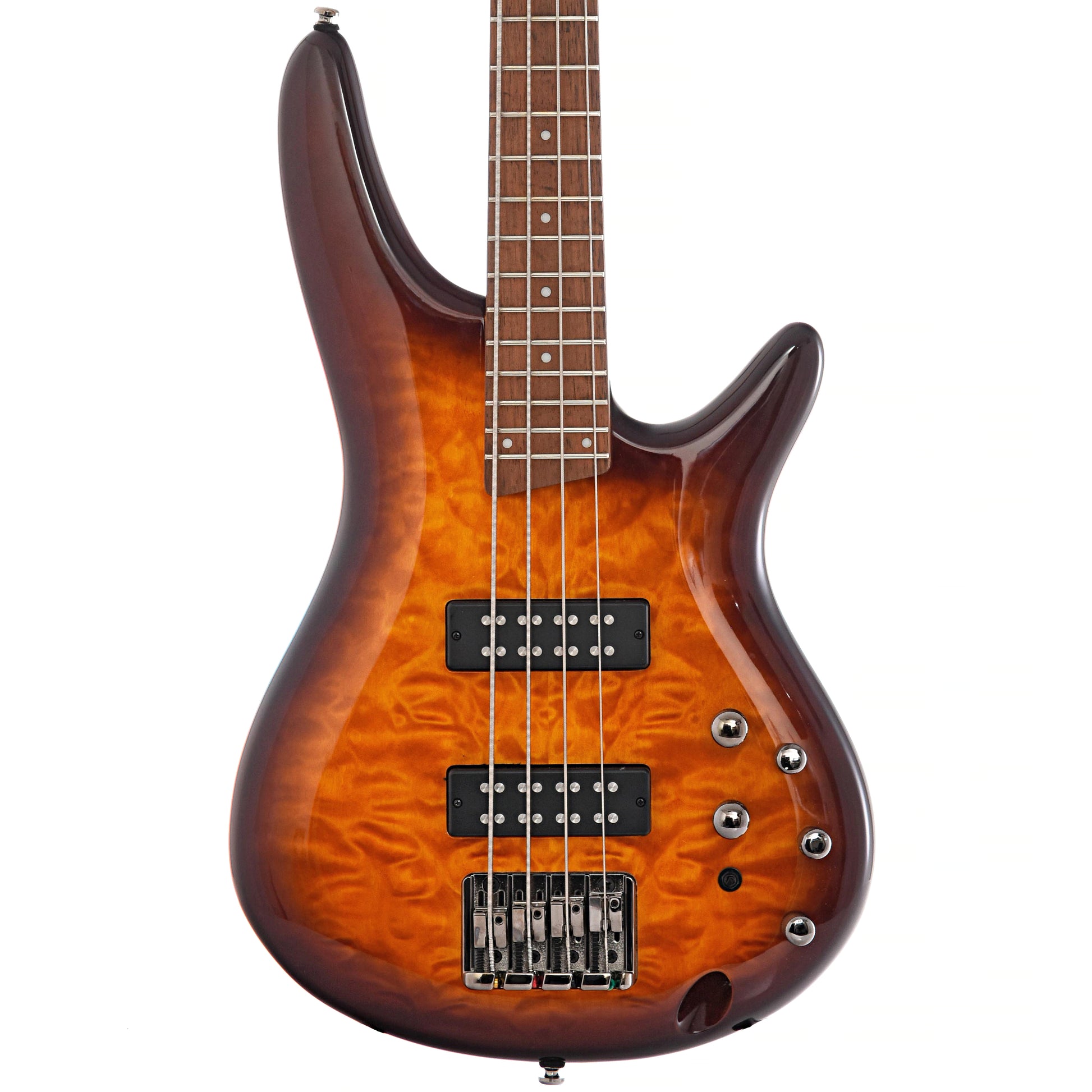 A striking bass with a plenty of modern punch. The Ibanez SR400EQM features include two Ibanez PowerSpan dual core pickups, a sleek and stable 5 piece maple/walnut neck and an active 3-band EQ with 3-way Power Tap Switch.