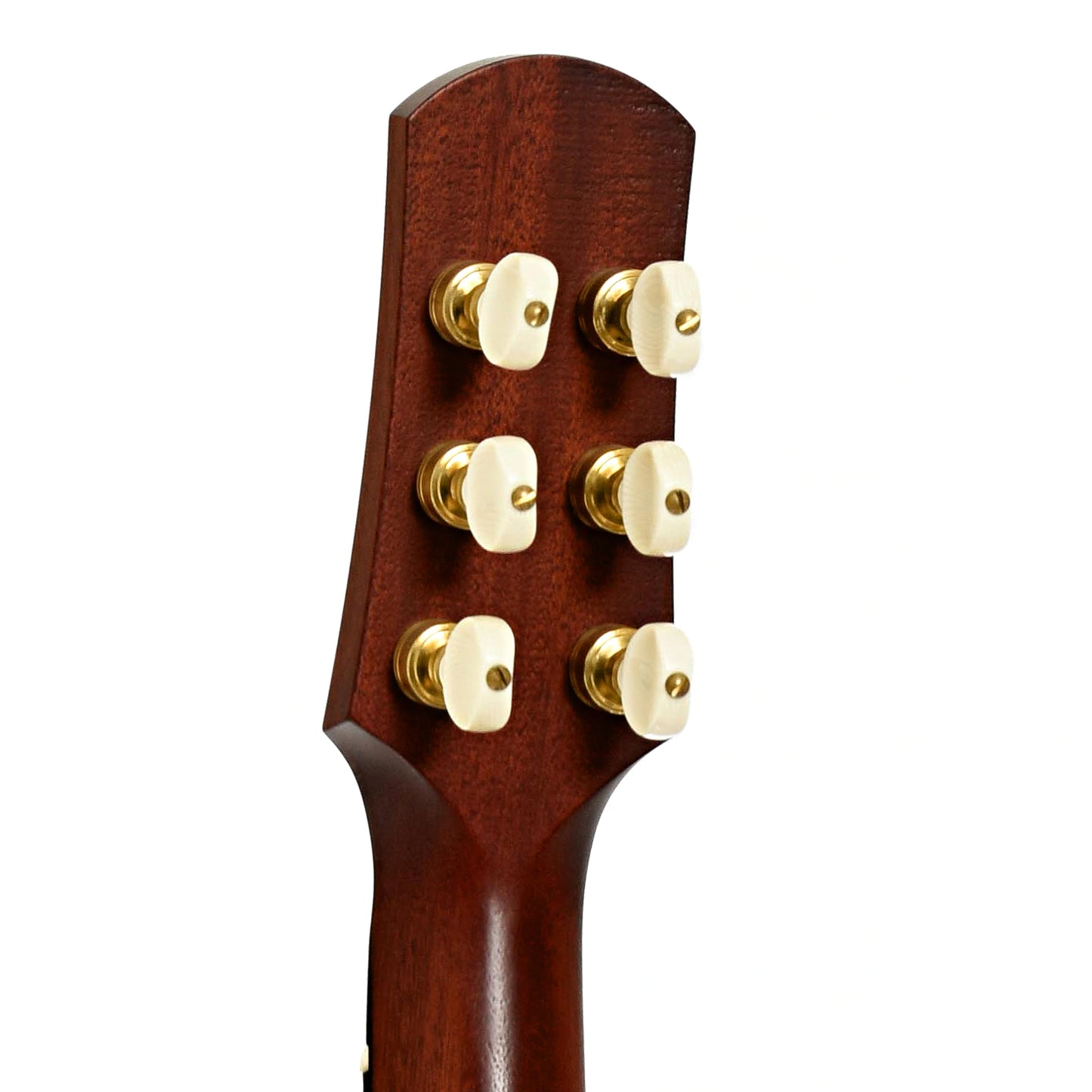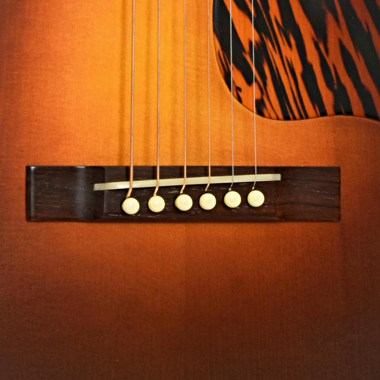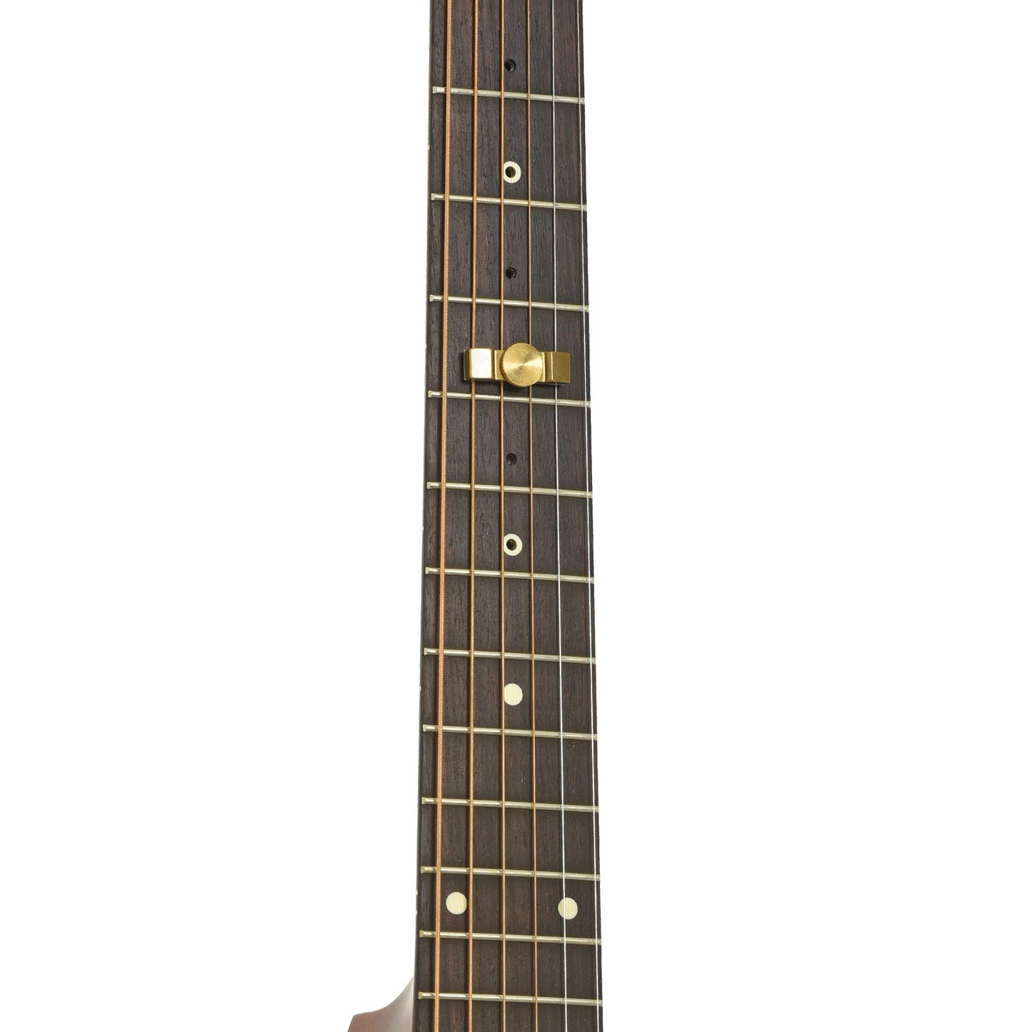 Thanks to its clever capo system and thoughtful build, this Iris DE-11 is ready for serious playing and creative tuning setups. Based on the 1937 Kalamazoo KG-11, it features a sunburst Adirondack spruce top, Honduran mahogany back and sides, and a V-shaped mahogany neck with extended peghead. The rosewood fingerboard includes threaded brass inserts to fit the included set of three screw-down capos. Additional details include a Tiger Stripe pickguard, checkerboard soundhole binding, and Rickard rear-mount banjo tuners. TKL hard shell case. Made in Vermont, USA.
