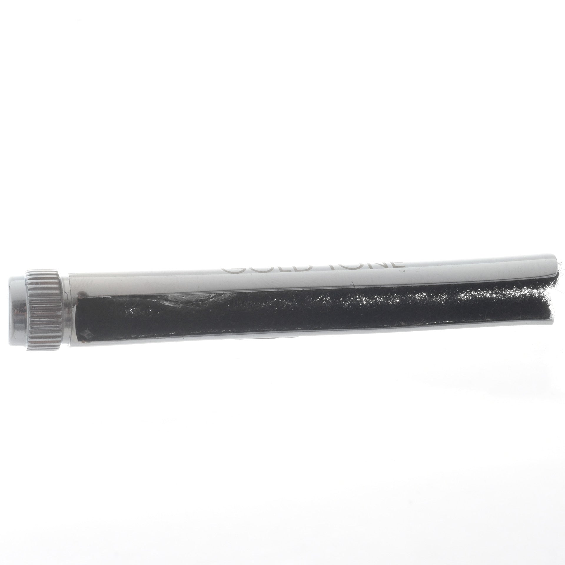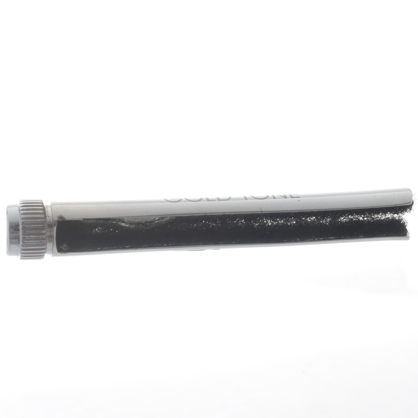 New improved version of the Gold Tone "Ultimate Mute", chrome plated brass. Black fuzzy lining protects the bridge.