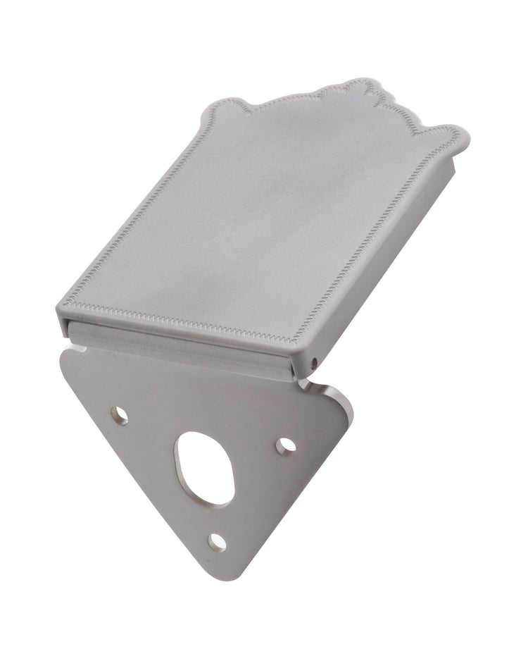 This very innovative, "classic" looking design features a hinged cover with concealed latch. For ease of re-stringing, the cover flips up allowing easy access to string ends, then flips down to hold string ends in place leaving both hands free. Strings and cover are fully dampened against vibration. Nickel plated bronze satin finish with decorative "stitch" engraved border. Installation screws included.