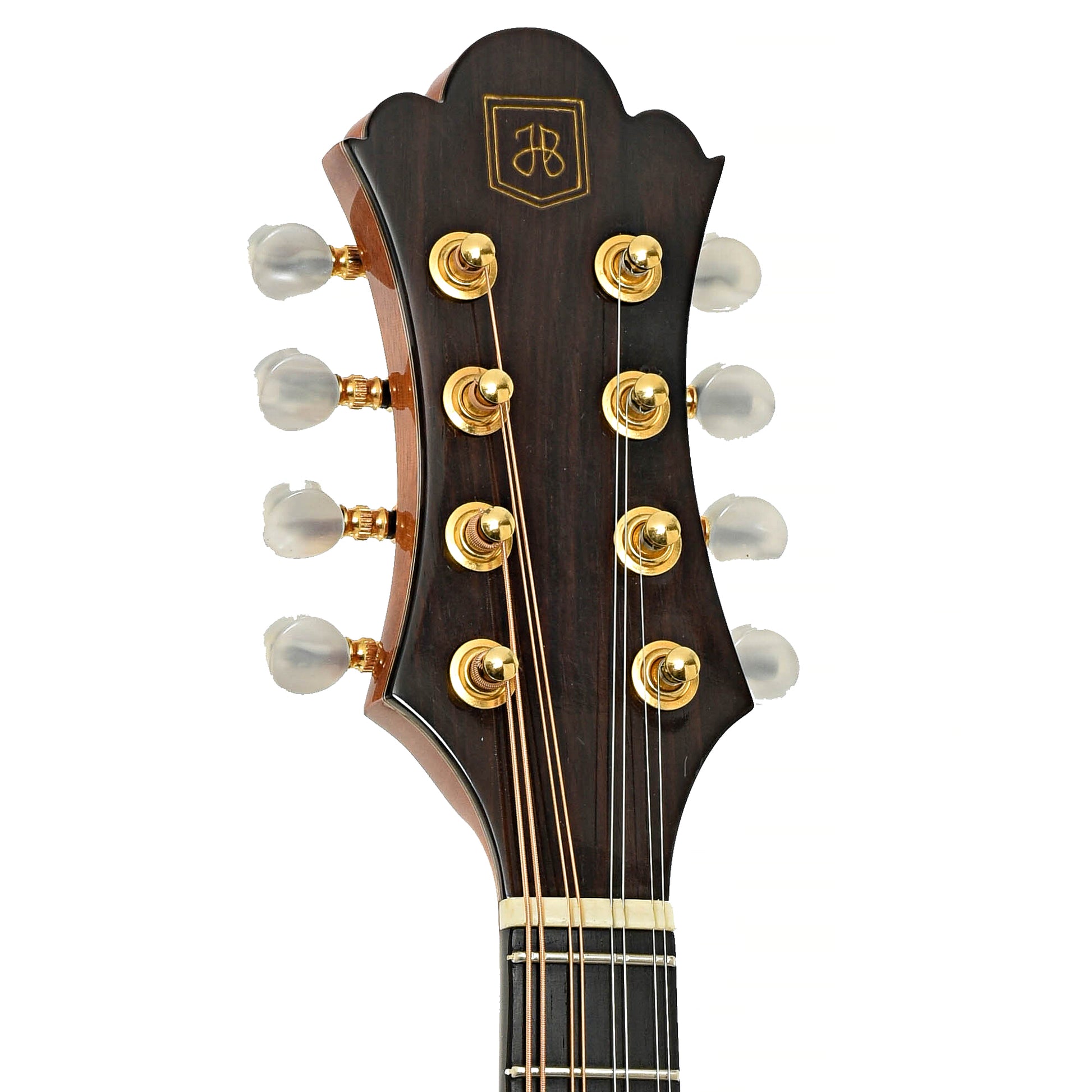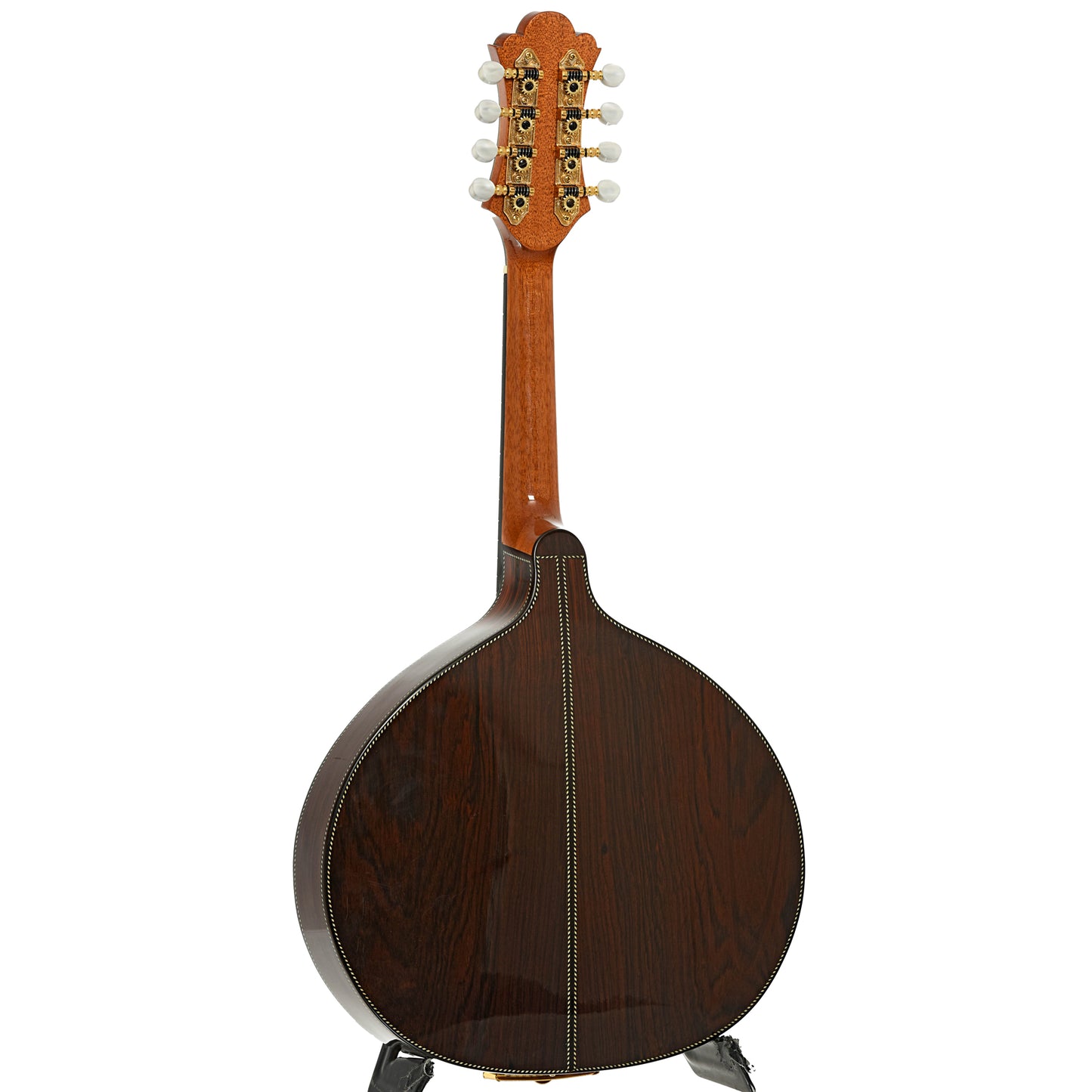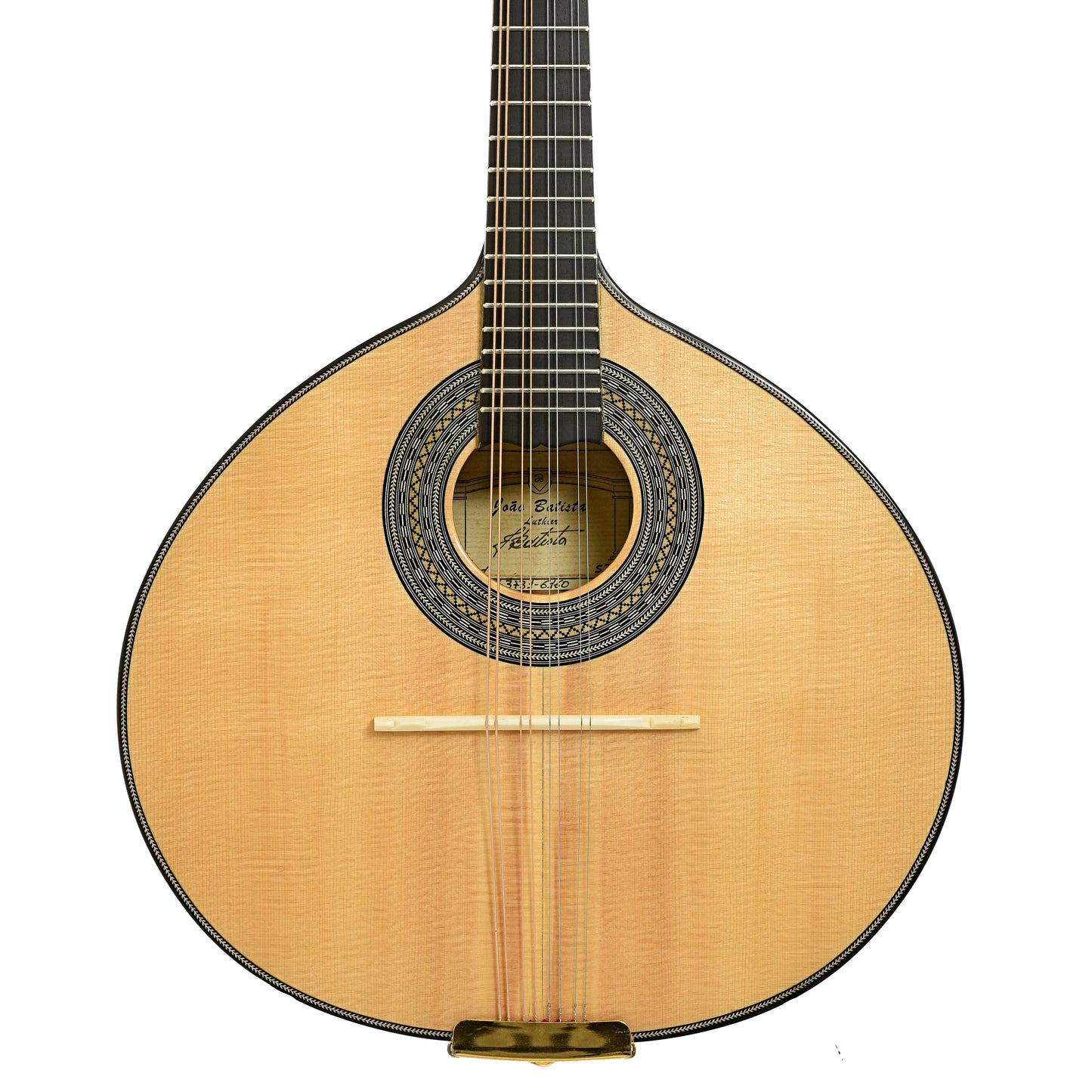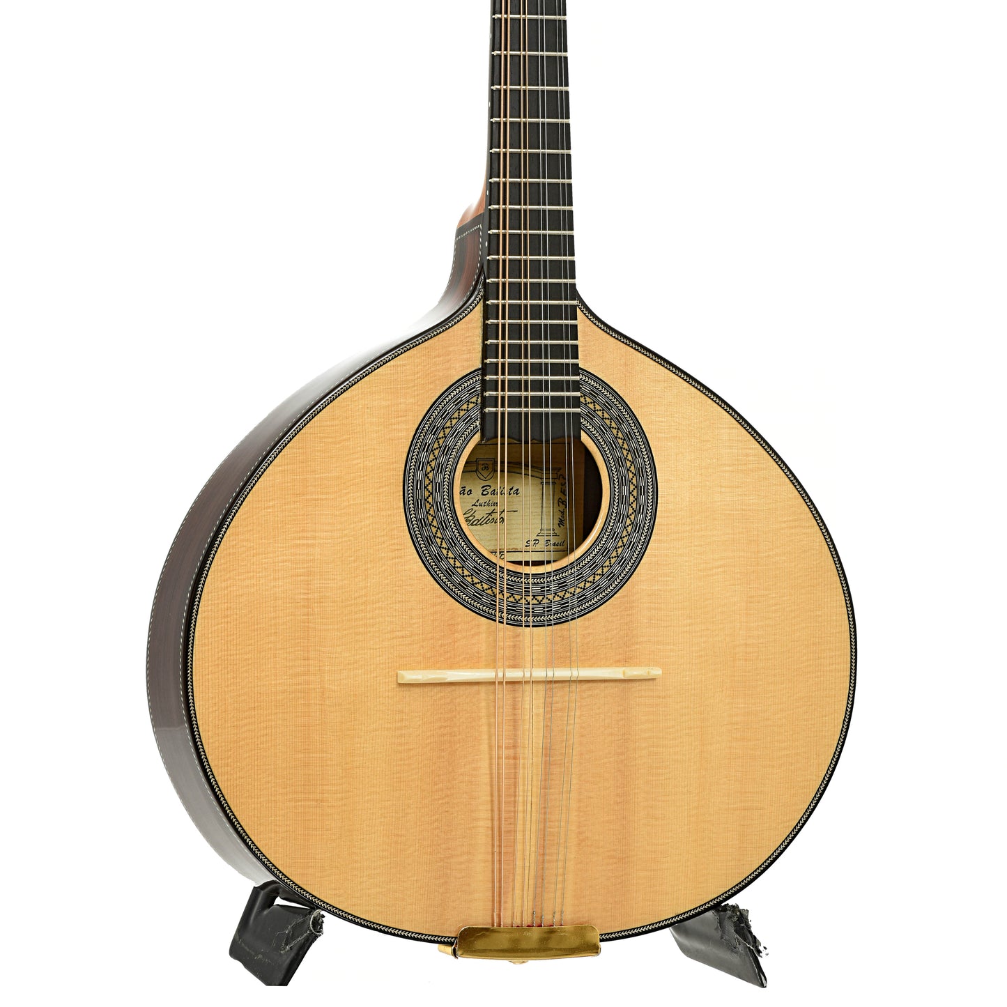 Built in Brazil, this bandolim by Joao Batista is a mandolin-family instrument in standard GDAE tuning. Features include a solid wood body of spruce top and Brazilian rosewood back and sides. It has a mahogany neck, ebony fingerboard, and solid bone bridge. Appointments include a fancy rosette and herringbone purflings. Metal-reinforced hard shell case. Handcrafted in Brazil.