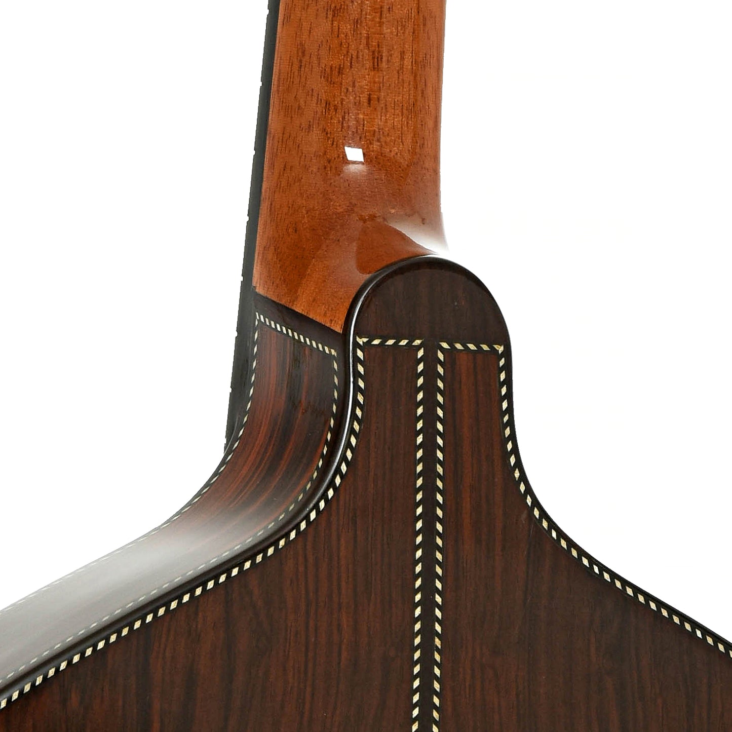 - Rosewood binding, elaborate rosette, herringbone top purfling