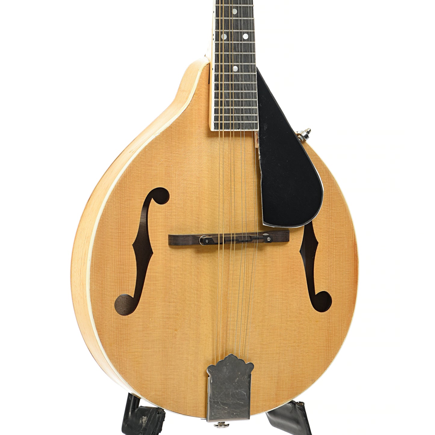 A kit build, this A-style mandolin features solid woods of bound spruce top and maple back, sides and neck in a tack finish. It has a bound ebonized maple fingerboard, adjustable ebony bridge, 4-on-a-plate tuners. NO CASE. Made in USA. (