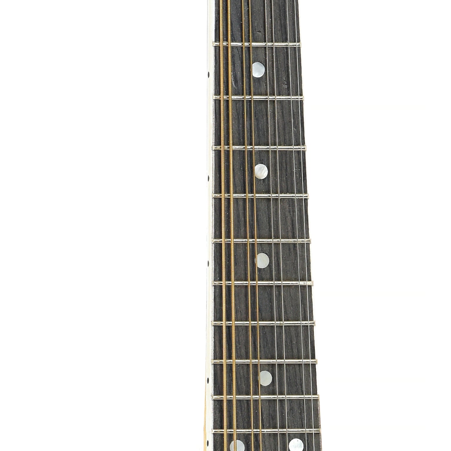 - Bound ebonized maple fingerboard with pearl dot inlays
