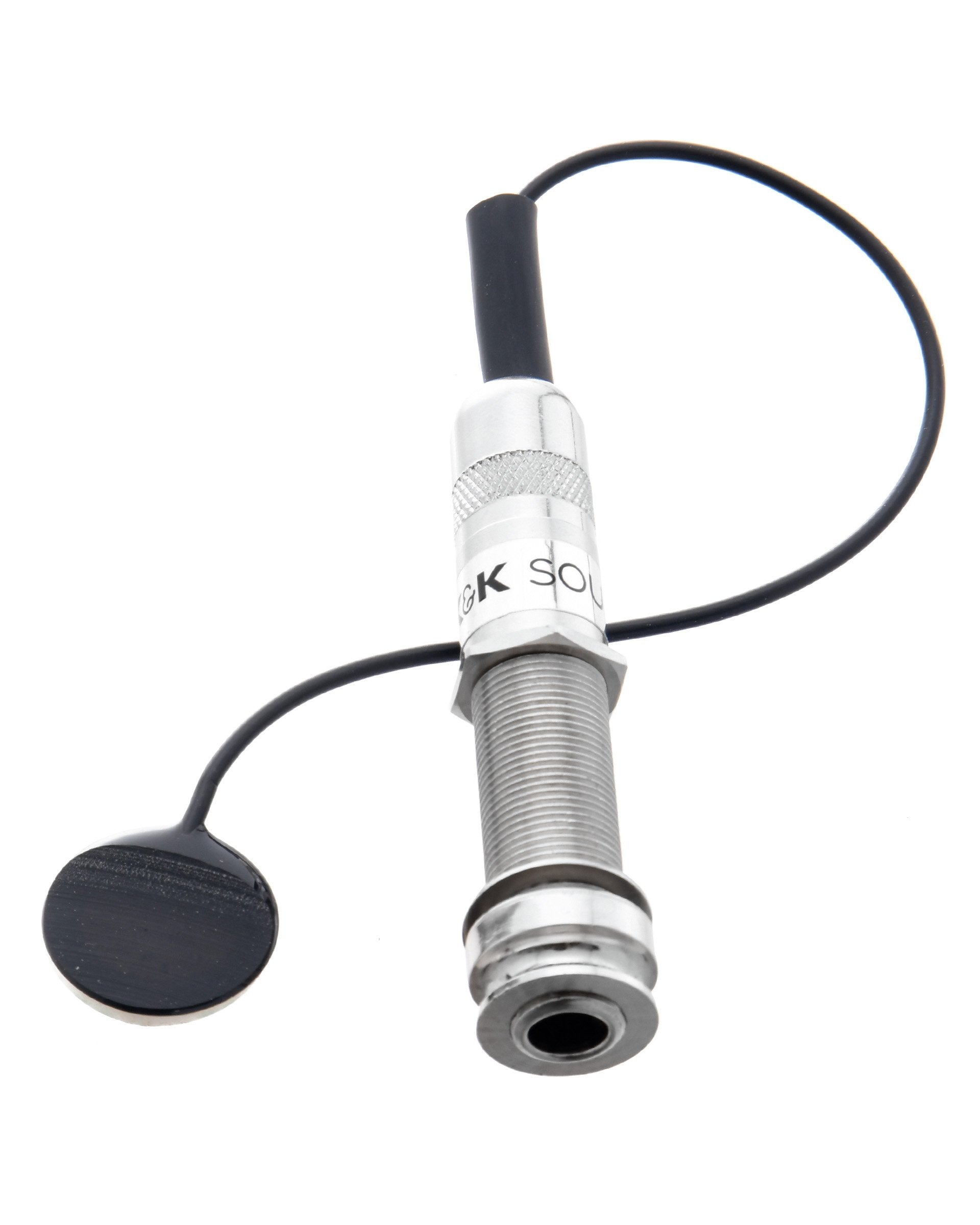 Piezo disc soundboard transducer, 3/4" diameter, attaches to underside of top with double-sided adhesive, wired to a standard 1/4" endpin jack. Professional installation recommended. Also, this is a passive pickup and will perform best when used with a preamp.