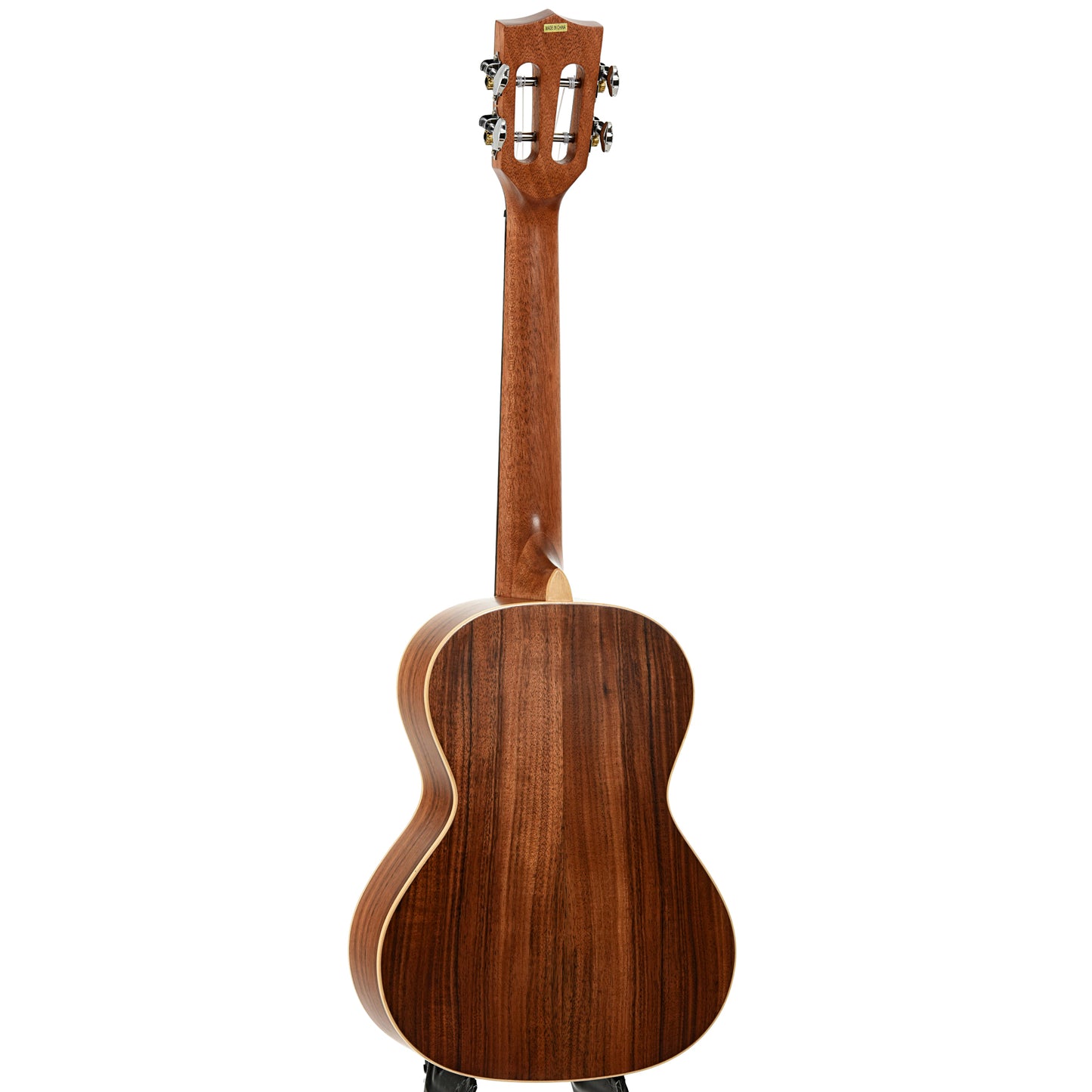 Beautiful, all-solid striped acacia tenor ukulele turns heads and pleases ears. Nice decorative features include custom fret marker inlays, maple binding, and vintage-style herringbone purfling.
