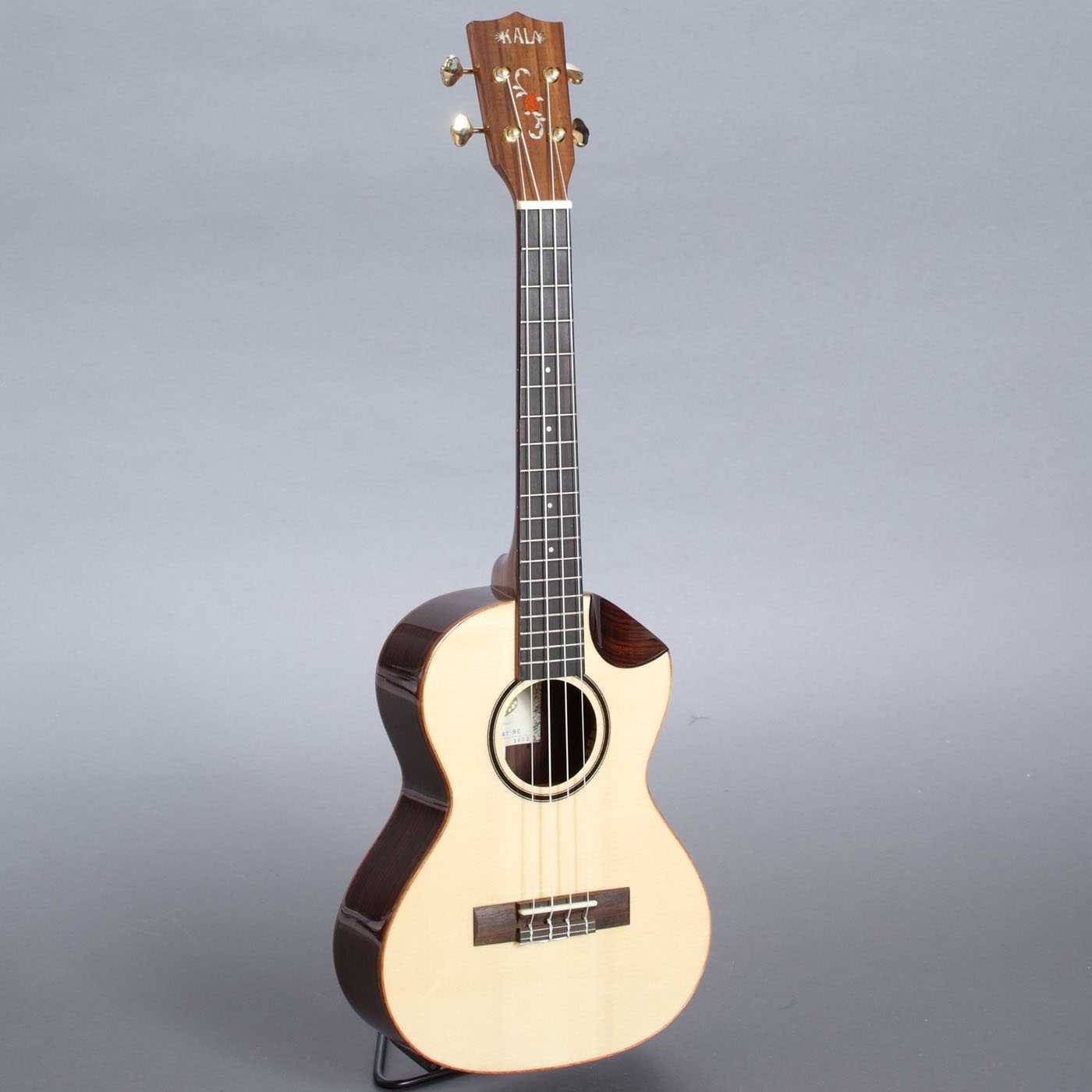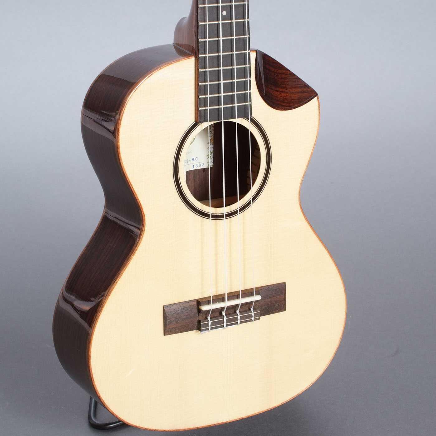 This unique ukulele features a scalloped cutaway that provides easy access to the upper frets and makes for an interesting, graceful aesthetic.