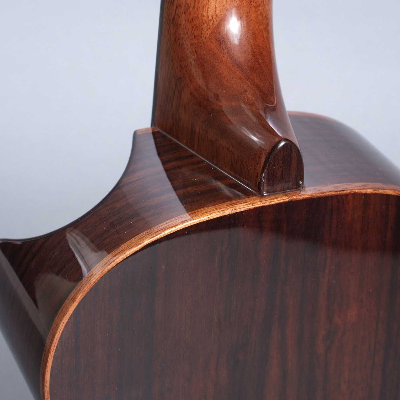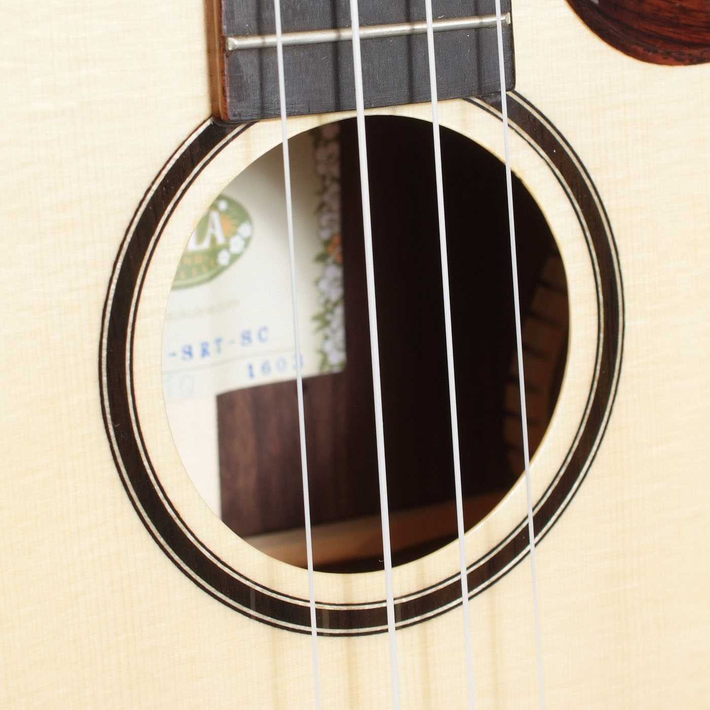- Rosewood headstock overlay with Kala's artichoke and leaf inlay