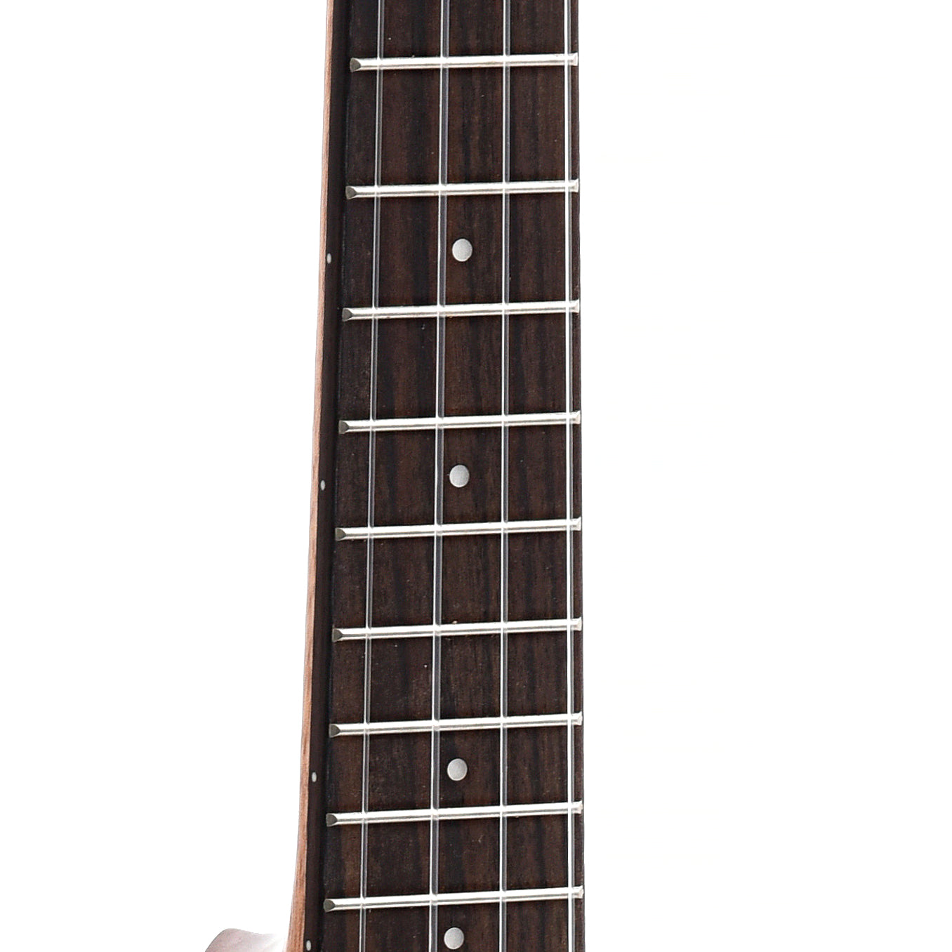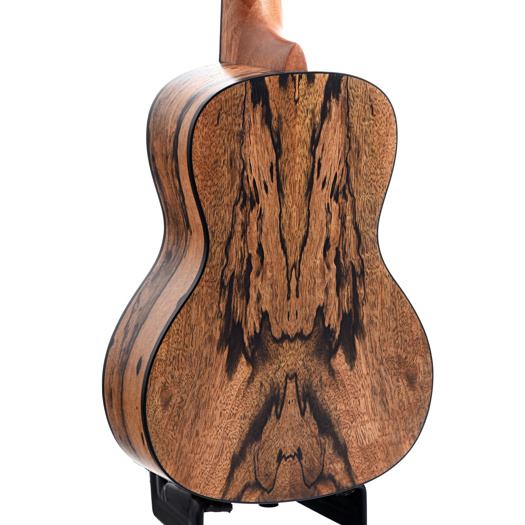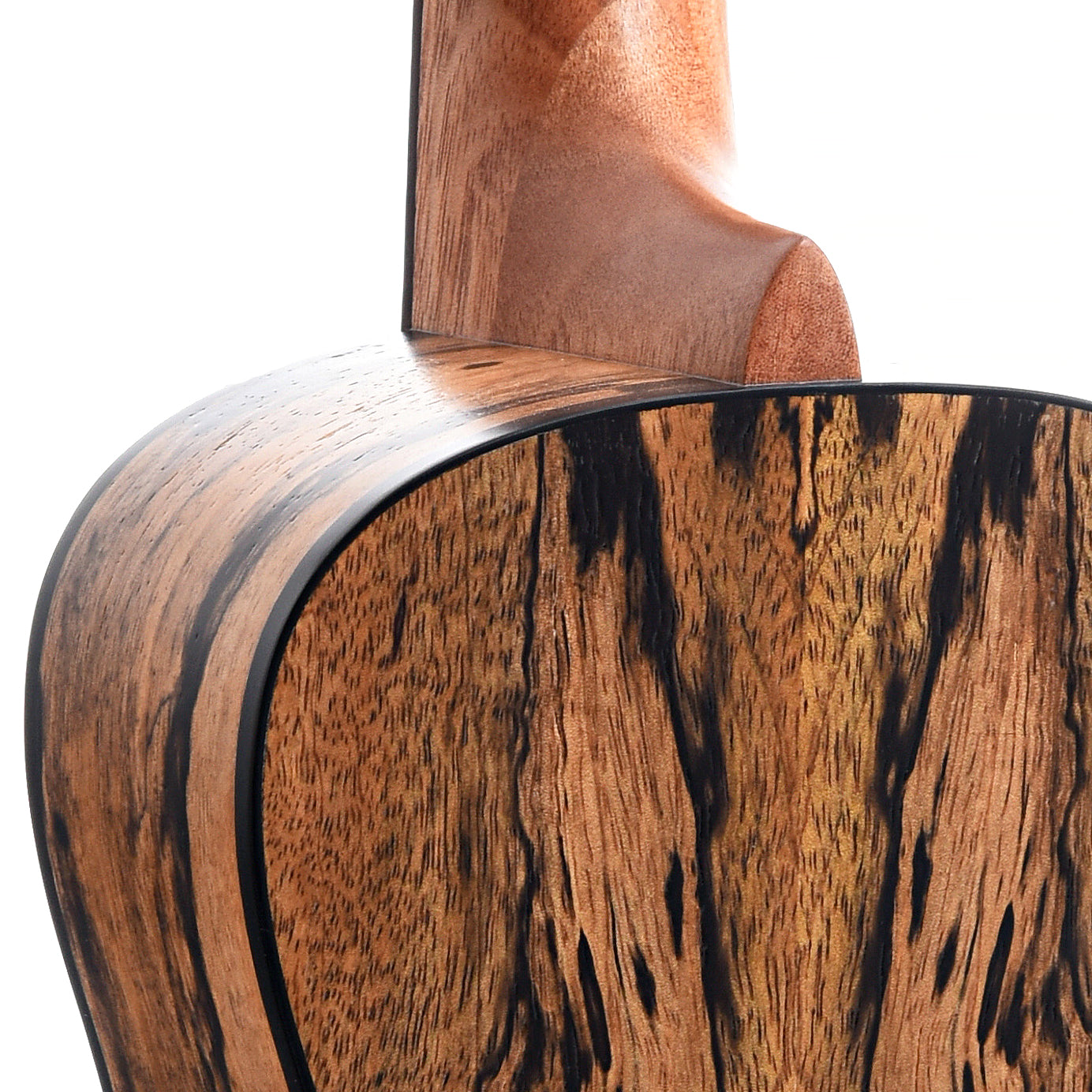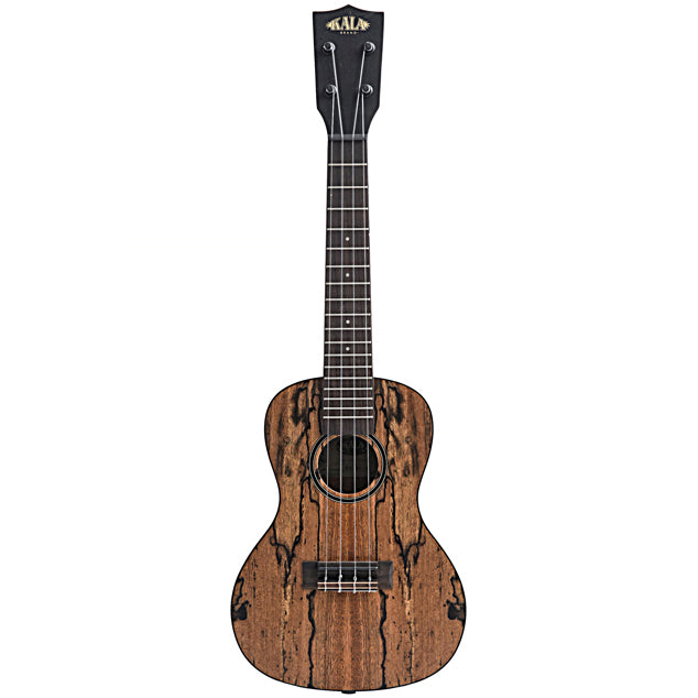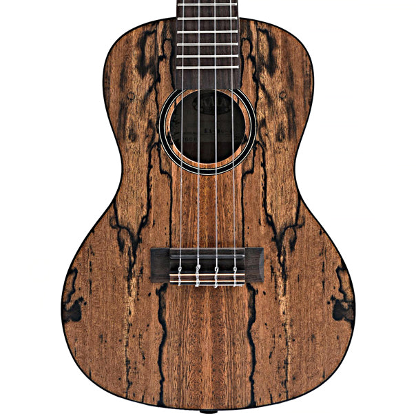 The Spalted Mango concert ukulele has remarkable figuring featuring a kaleidoscope of shapes and patterns that give each uke a lot of individual character -- no two look alike. Attractively bound in black with a black headstock overlay, it also features lightweight geared Graph Tech Ratio tuners.