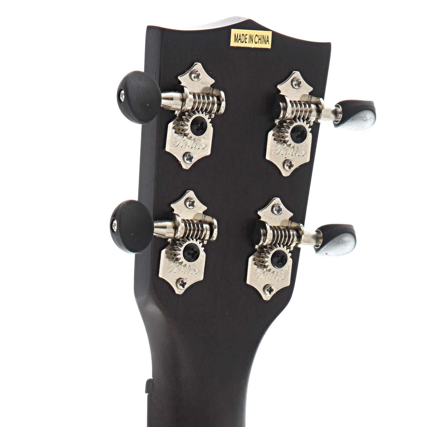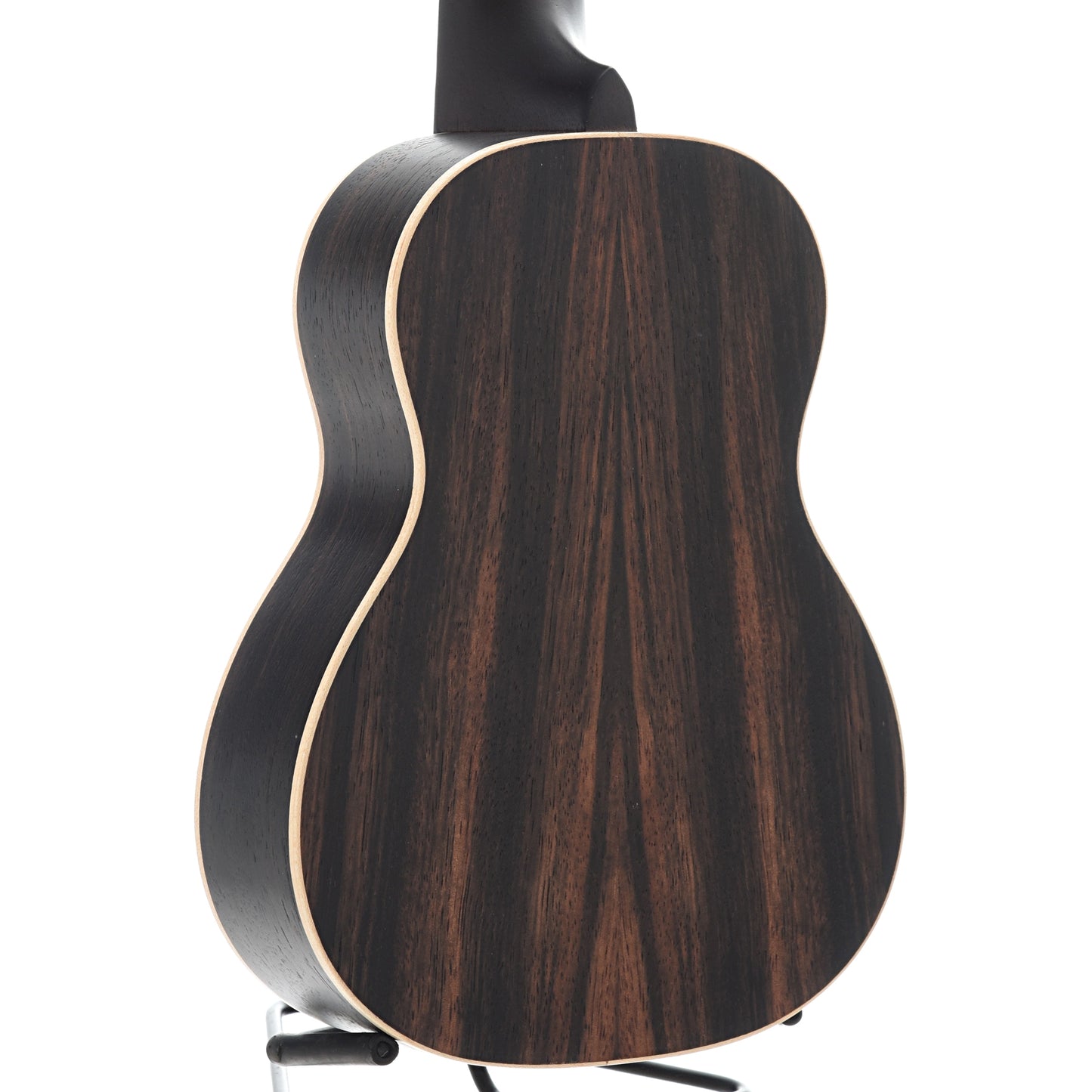 Striped Ebony (laminate) top, back and sides. Rosewood fingerboard and bridge. Geared tuners. A nice addition to the Kala line-up of mid-priced ukes. Each one is a little different as the stunning coloration of the striped ebony varies greatly from instrument to instrument. Aquila strings.