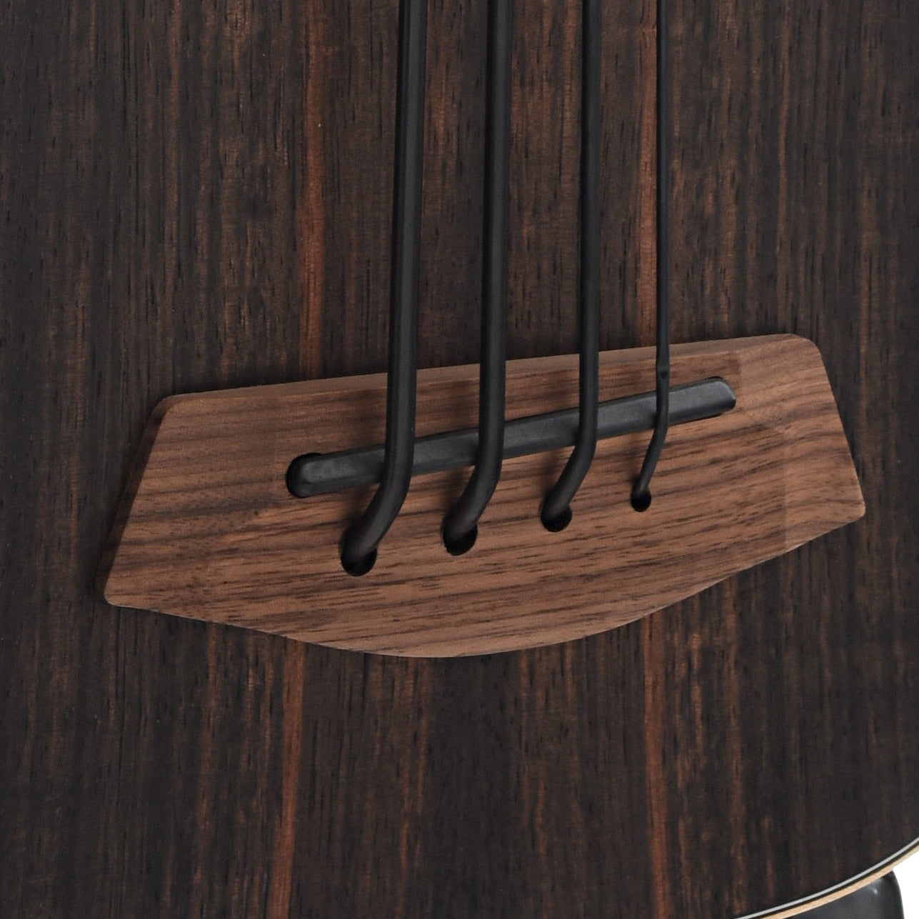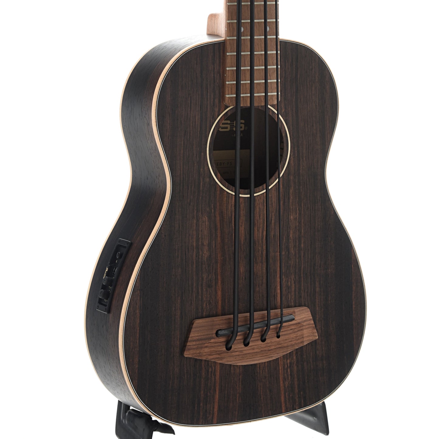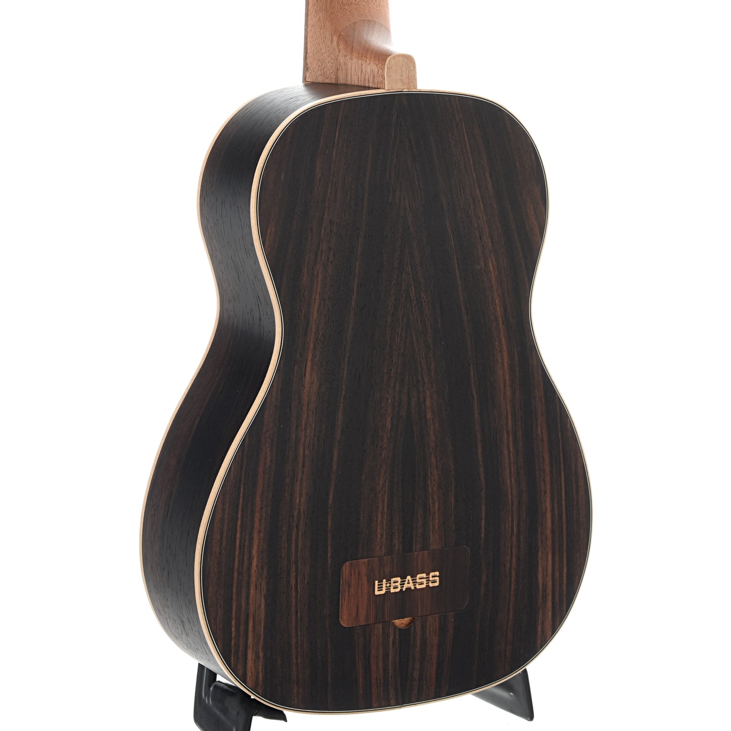 The beautiful Striped Ebony U-Bass has a deep brown color with reddish-brown striping. The maple binding creates a striking contrast with the ebony body, helping the striping stand out. This fretted model features Road Toad Pahoehoe (proprietary polyurethane) strings, so it sounds similar to an upright bass. With its Shadow pickup system, this impressive ukulele/bass hybrid is ready to hit the stage.