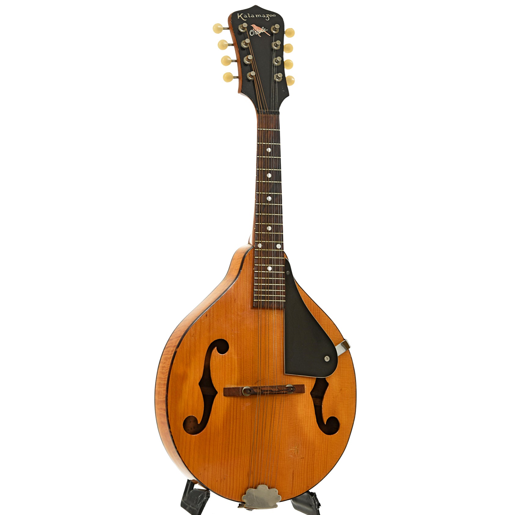 - Headstock overlay features "Kalamazoo" and "Oriole" logos