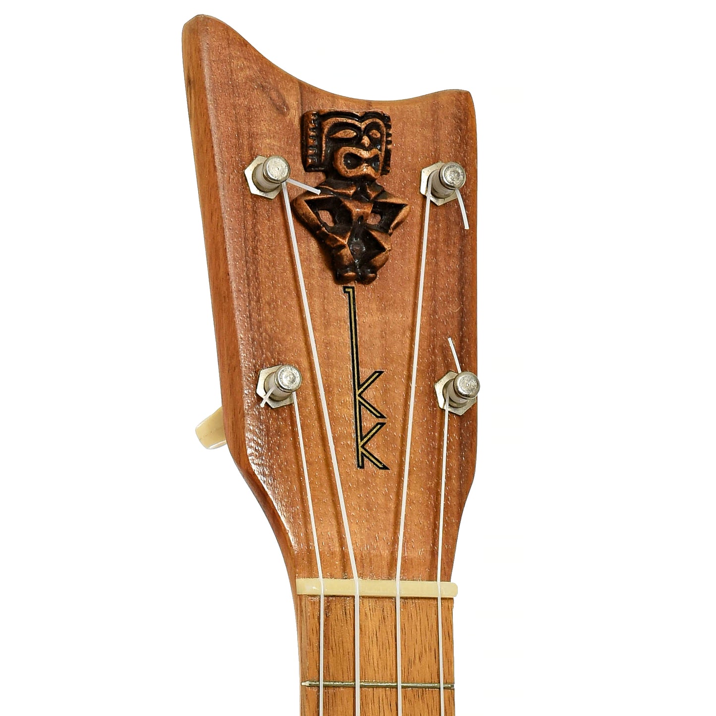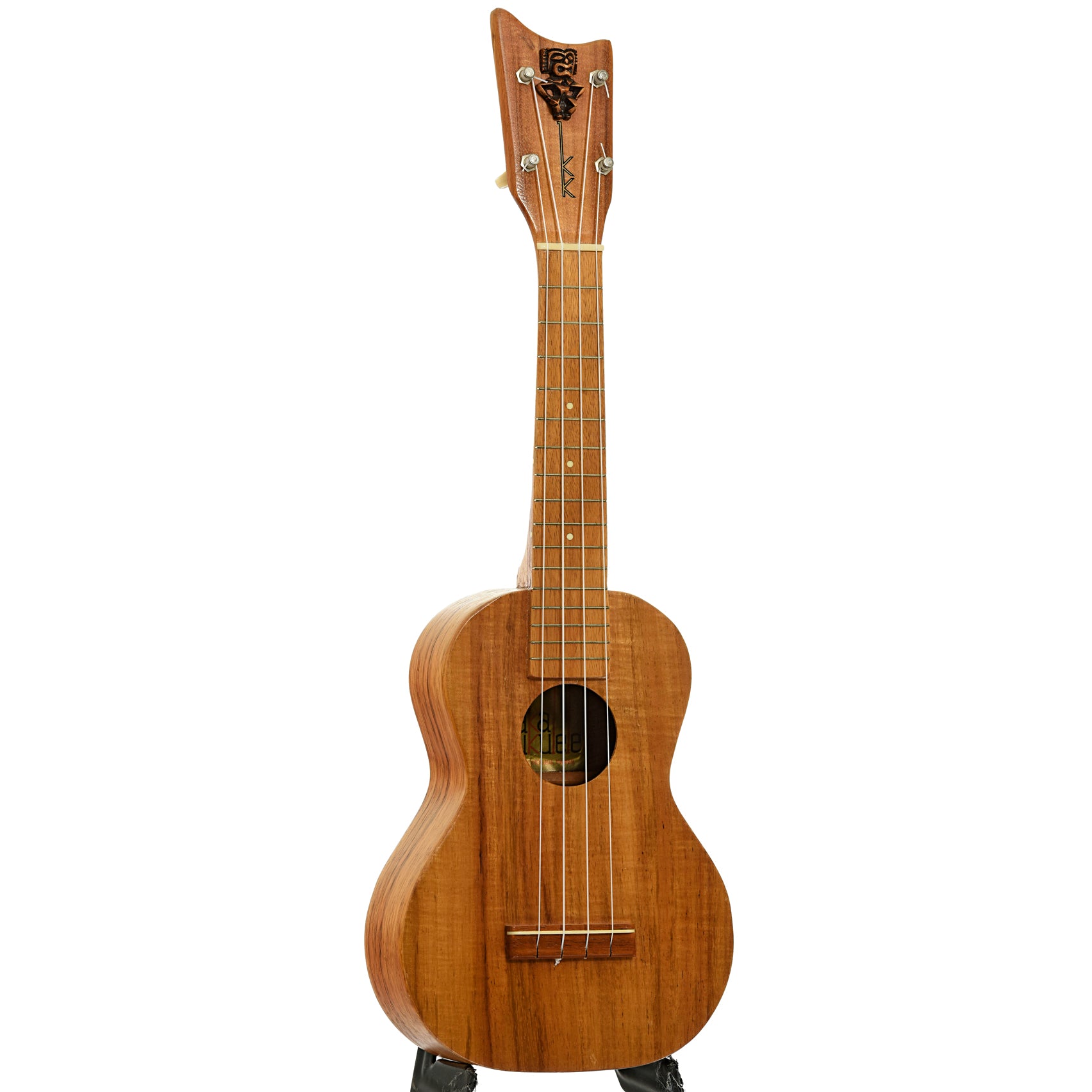 - Peghead features carved tiki and double KK logo decal