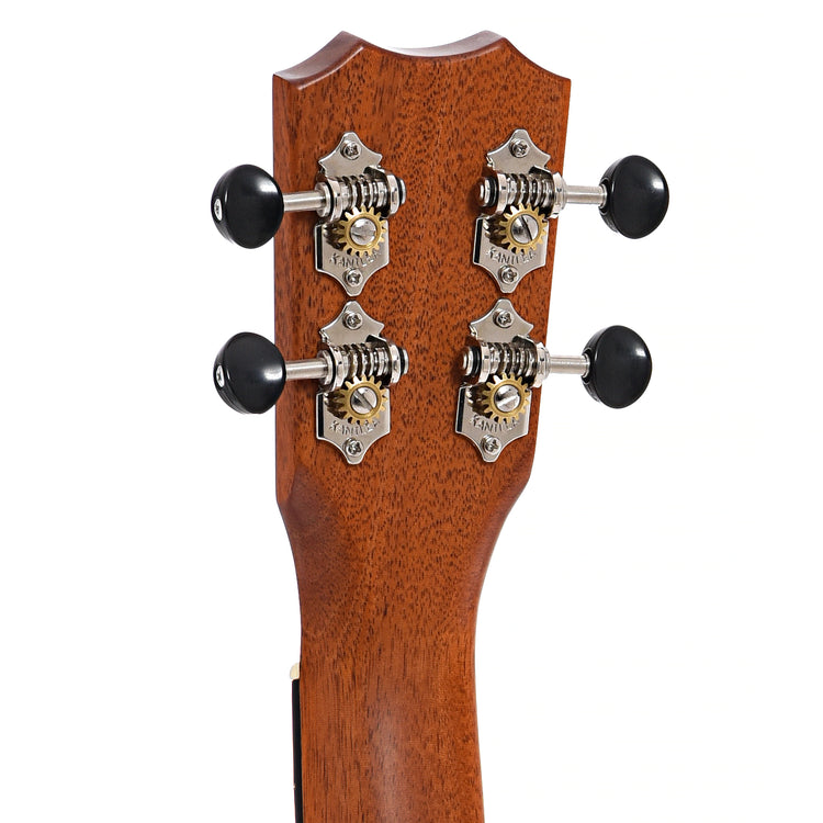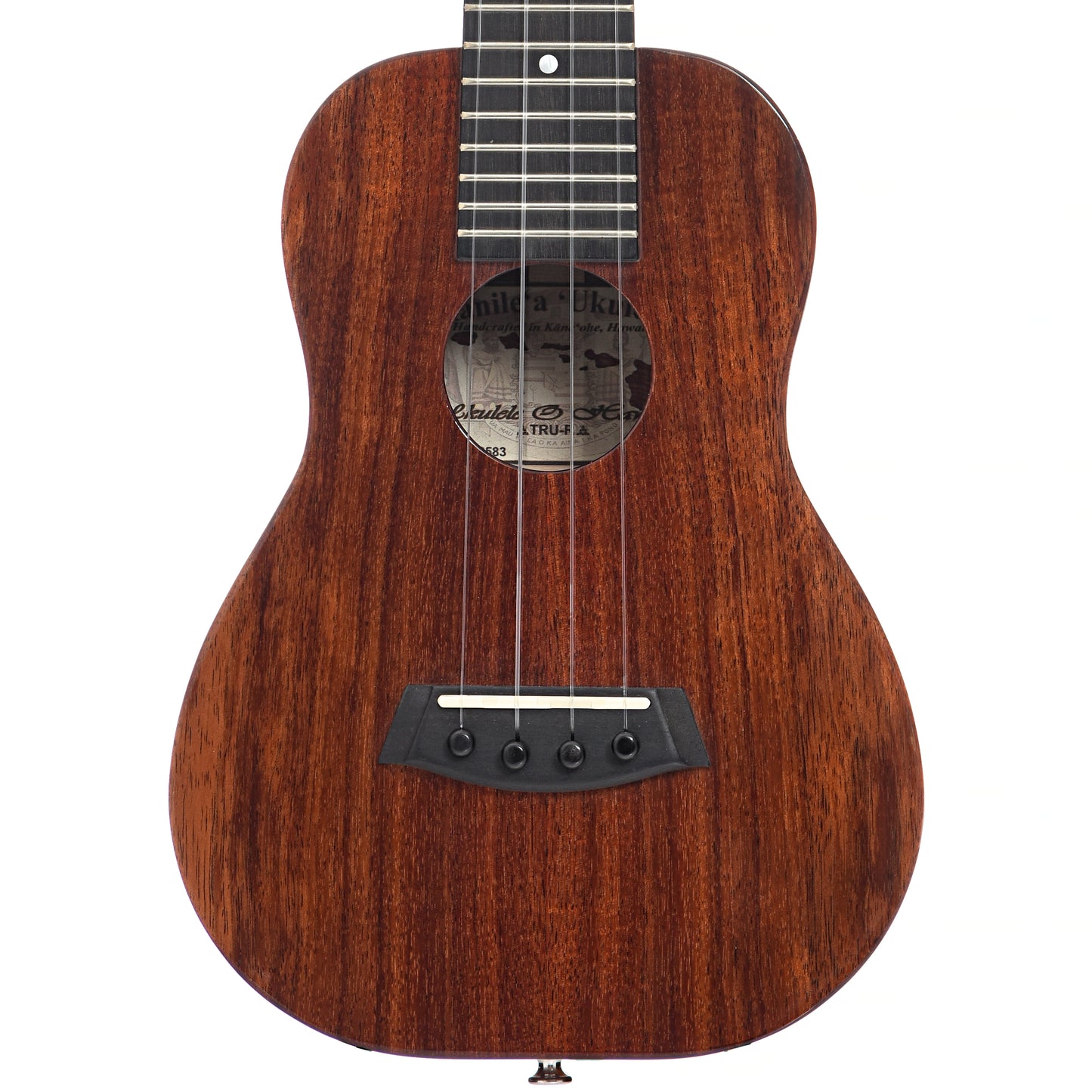 Featuring a shimmering gloss natural finish on a solid koa body, this Kanile'a K-1C Concert excites with mahogany neck, ebony fingerboard, bridge and peghead overlay, pearl appointments. Form fit nylon semi-hard shell case. Chrome open geared tuners. Lovely sound! Made in USA.
