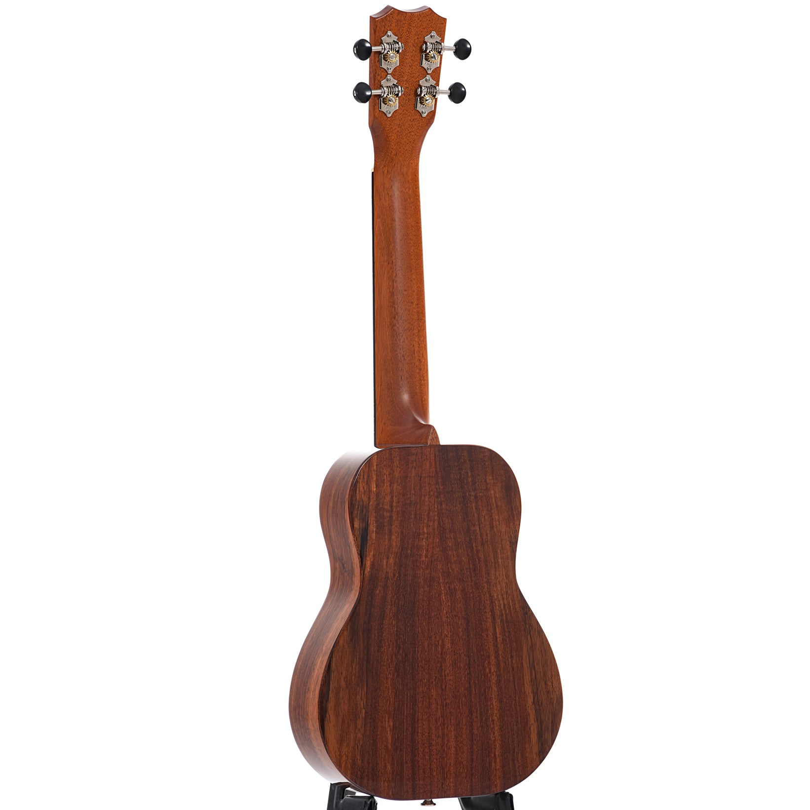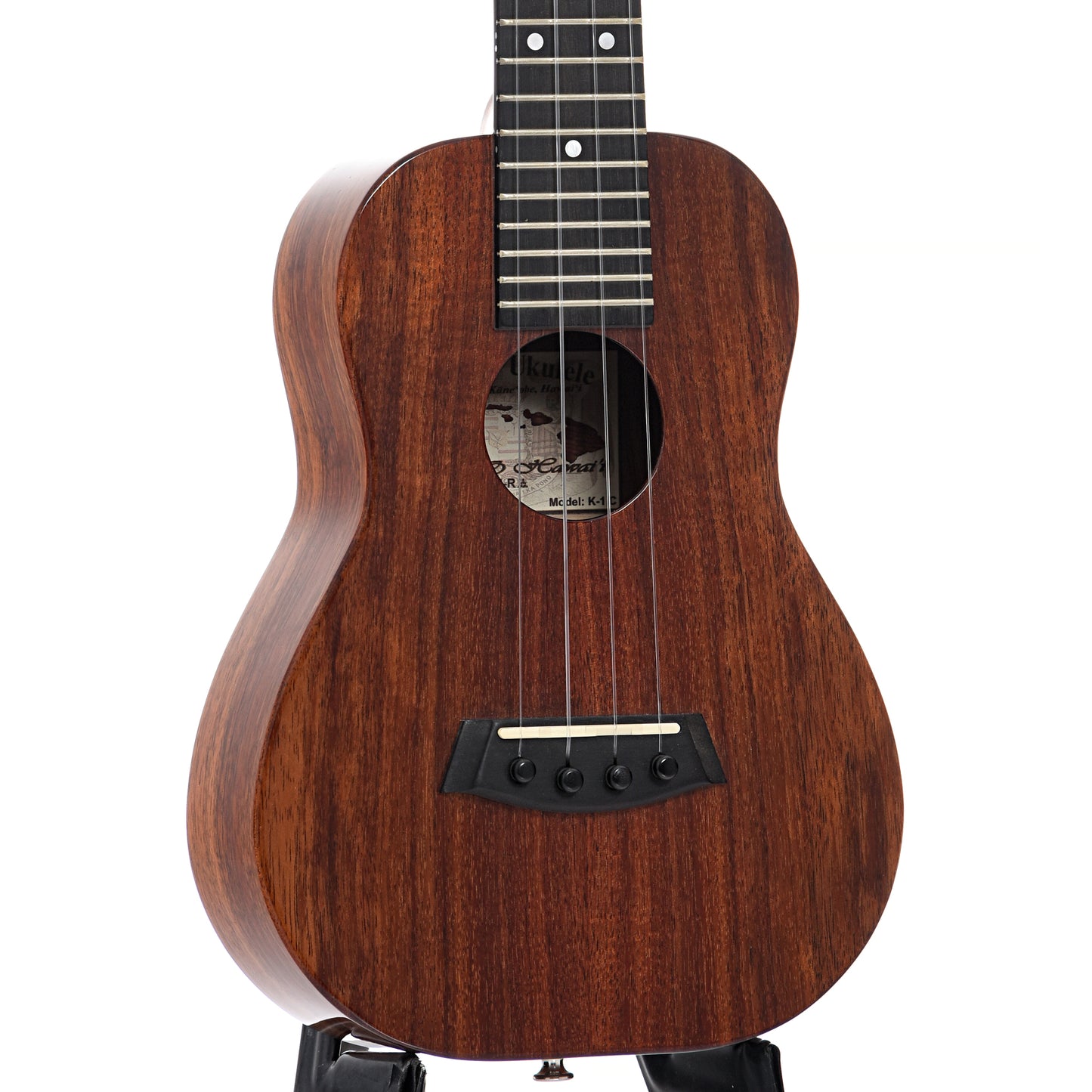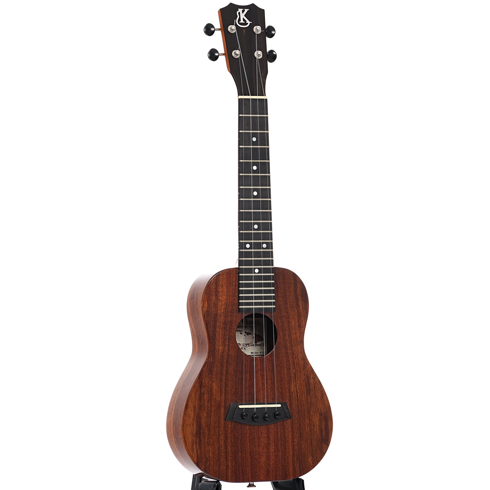 Featuring a shimmering gloss natural finish on a solid koa body, this Kanile'a K-1C Concert excites with mahogany neck, ebony fingerboard, bridge and peghead overlay, pearl appointments. Form fit nylon semi-hard shell case. Chrome open geared tuners. Lovely sound! Made in USA.