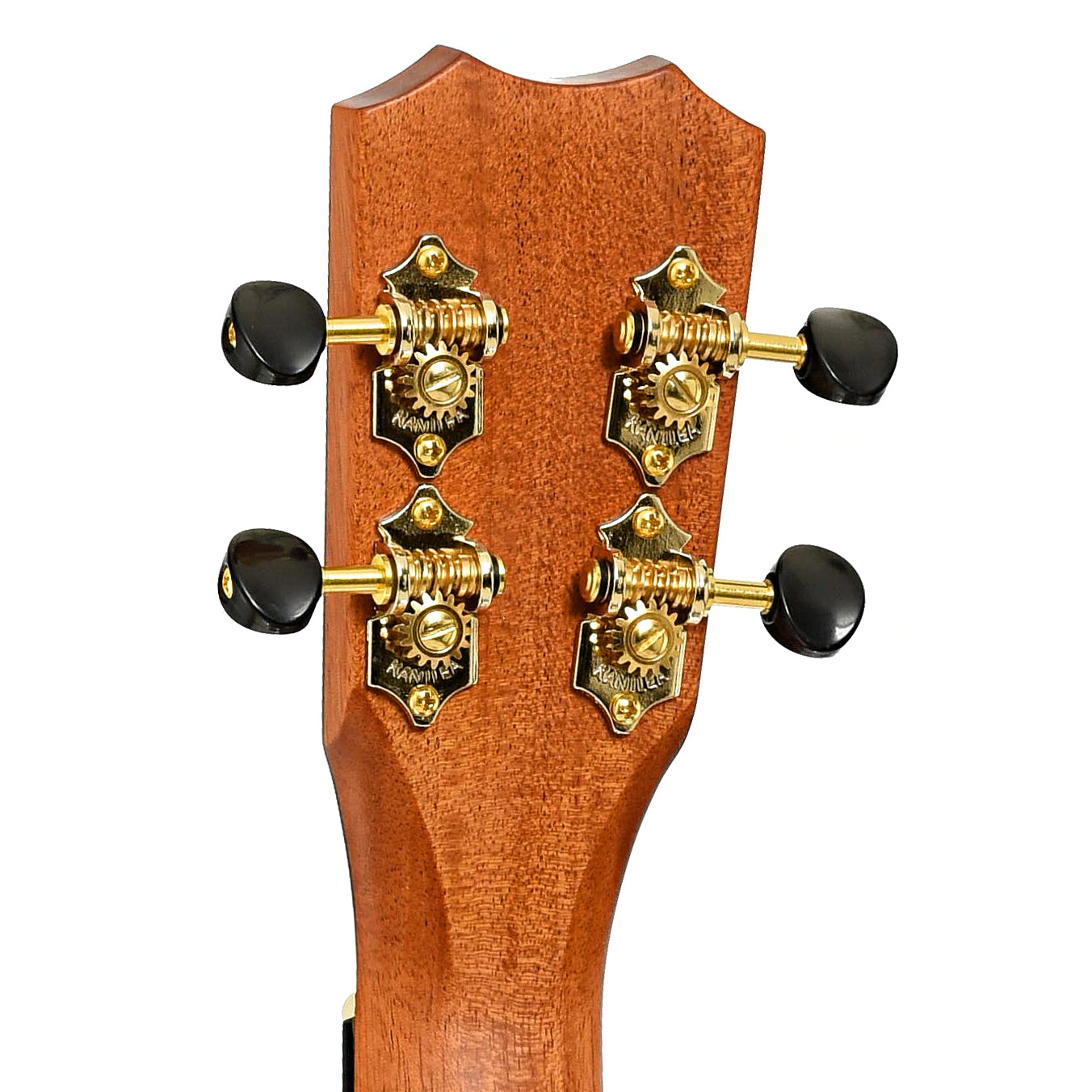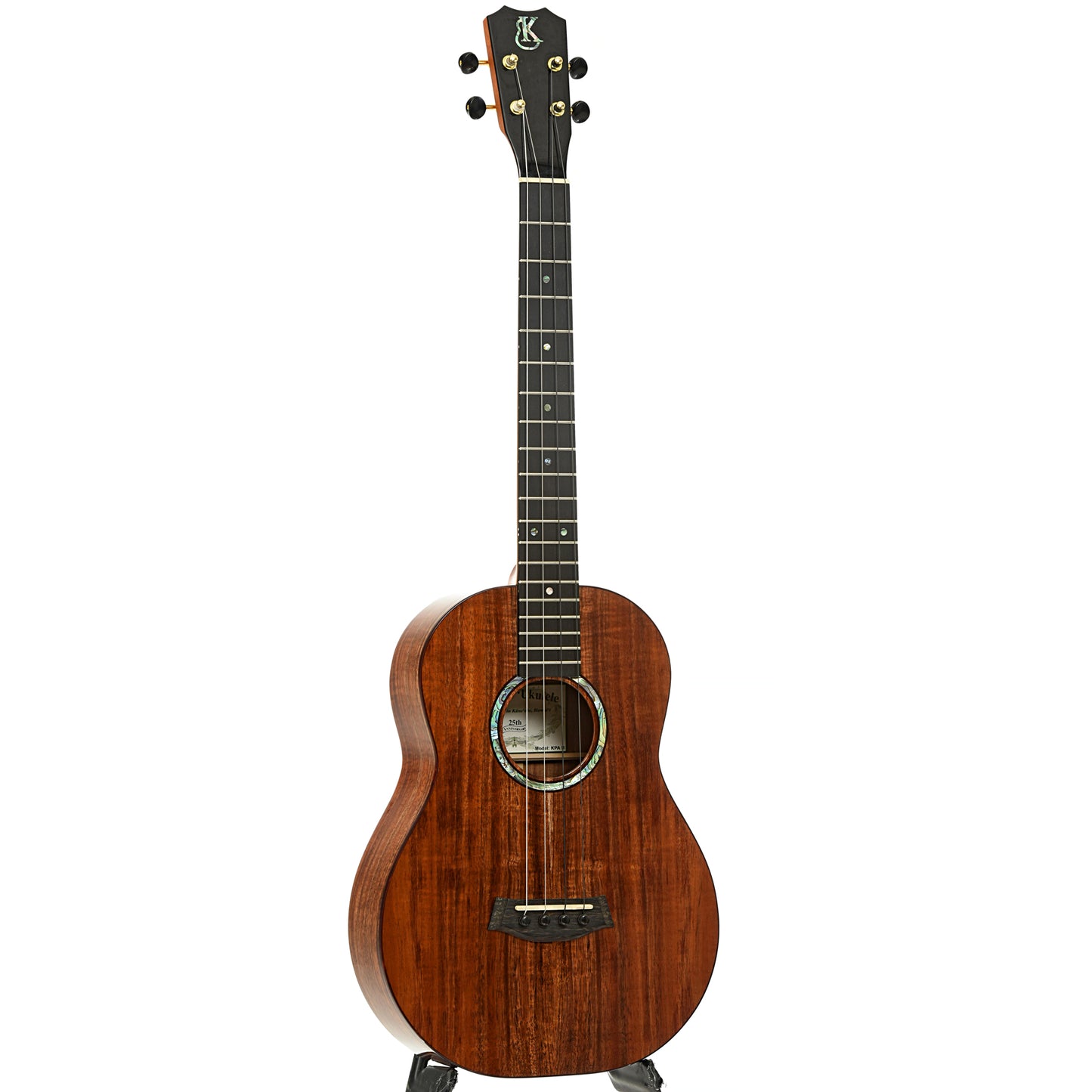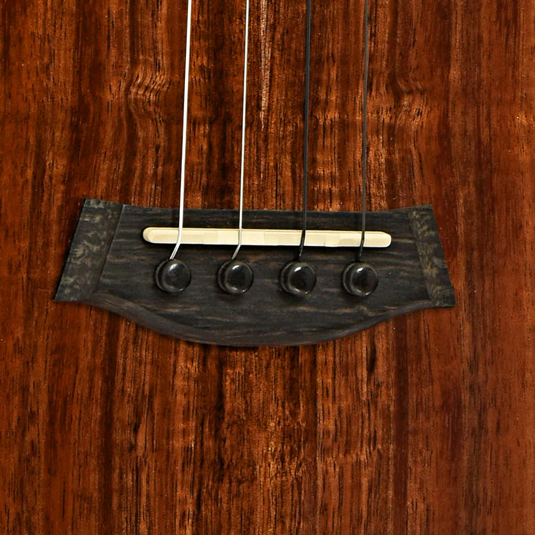 Built to celebrate Kanile'a's 25th Anniversary, this baritone uke features a gloss finish on a solid koa body, paired with a mahogany neck and ebony fingerboard. Appointments include an abalone rosette and logo, plus open-gear guitar-style tuners. Big, warm sound. Includes original padded gigbag. Built in Hawaii, USA.