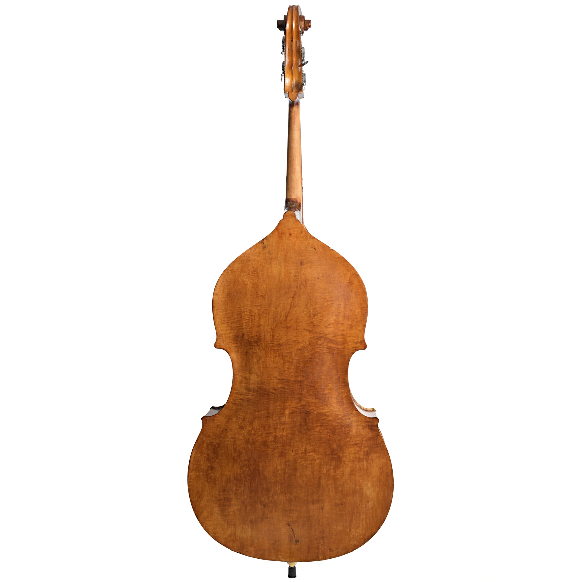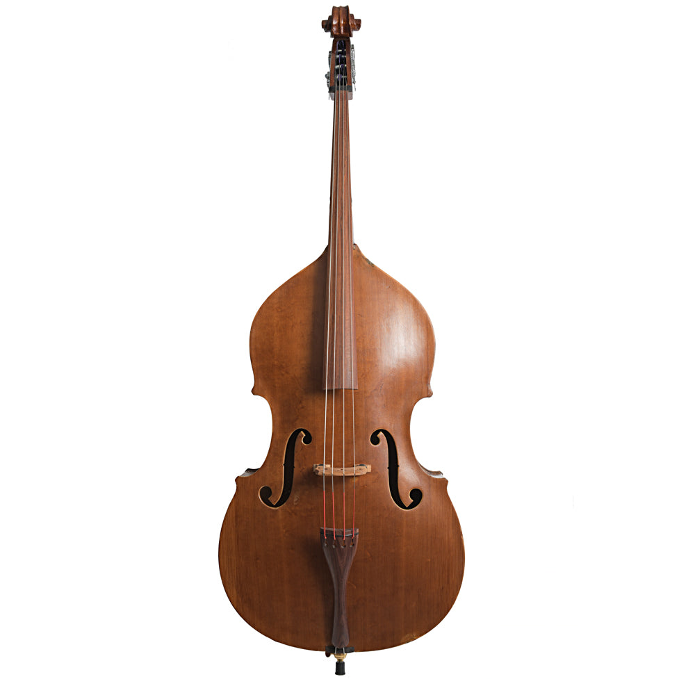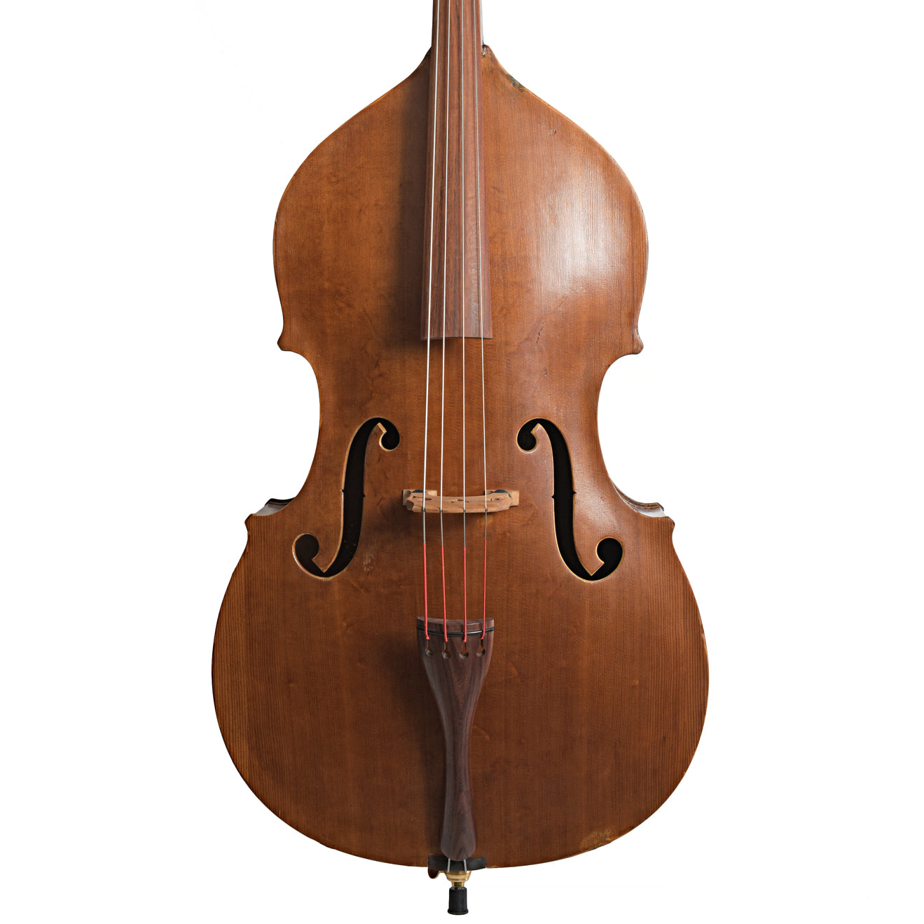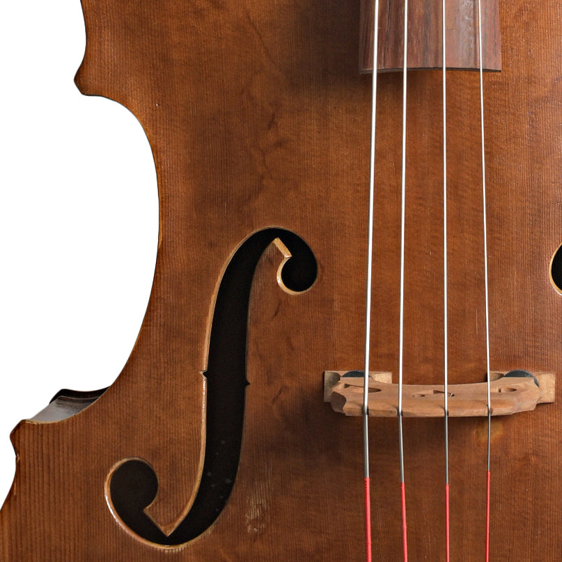 Good player's instrument, 3/4 size body, refinished natural, laminated spruce top with f-holes, laminated maple sides and back, new rosewood fingerboard and tailpiece, new bridge, end pin, soundpost and nut, VGC+ (repaired heel), Sold AS-IS (needs fretboard planed, nut and bridge adjustments, etc.)