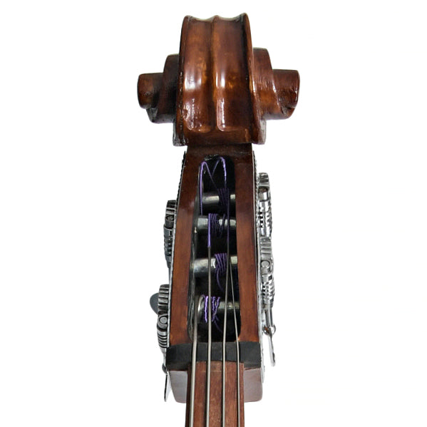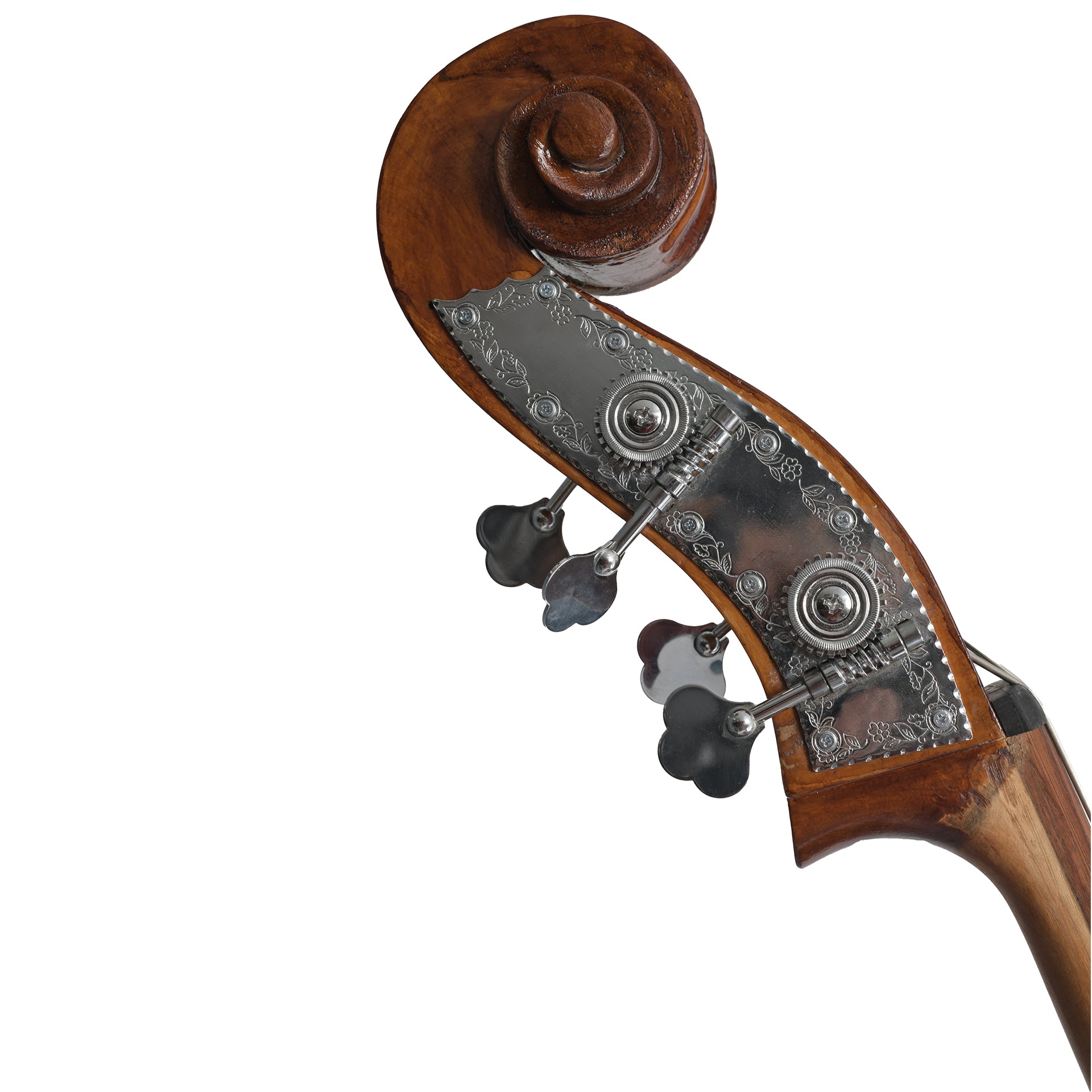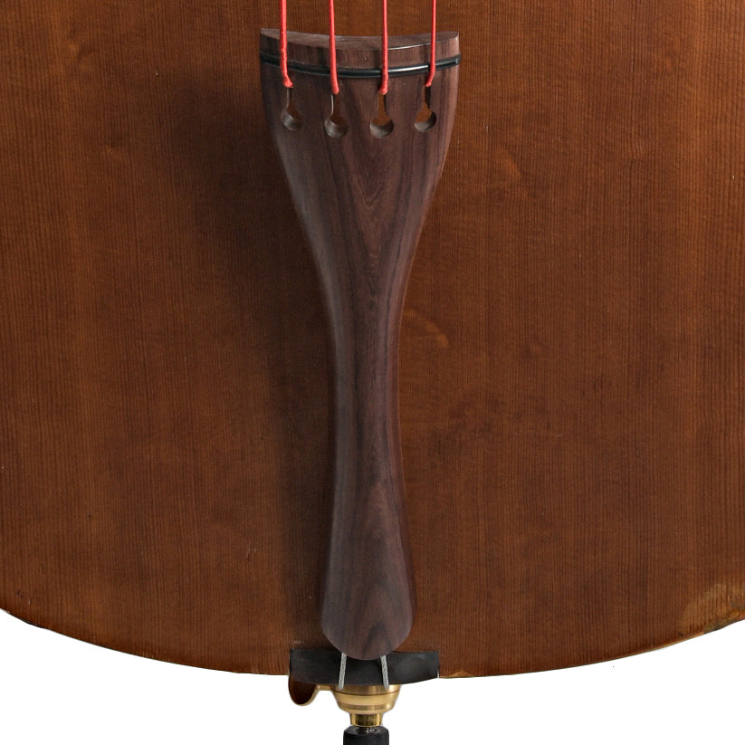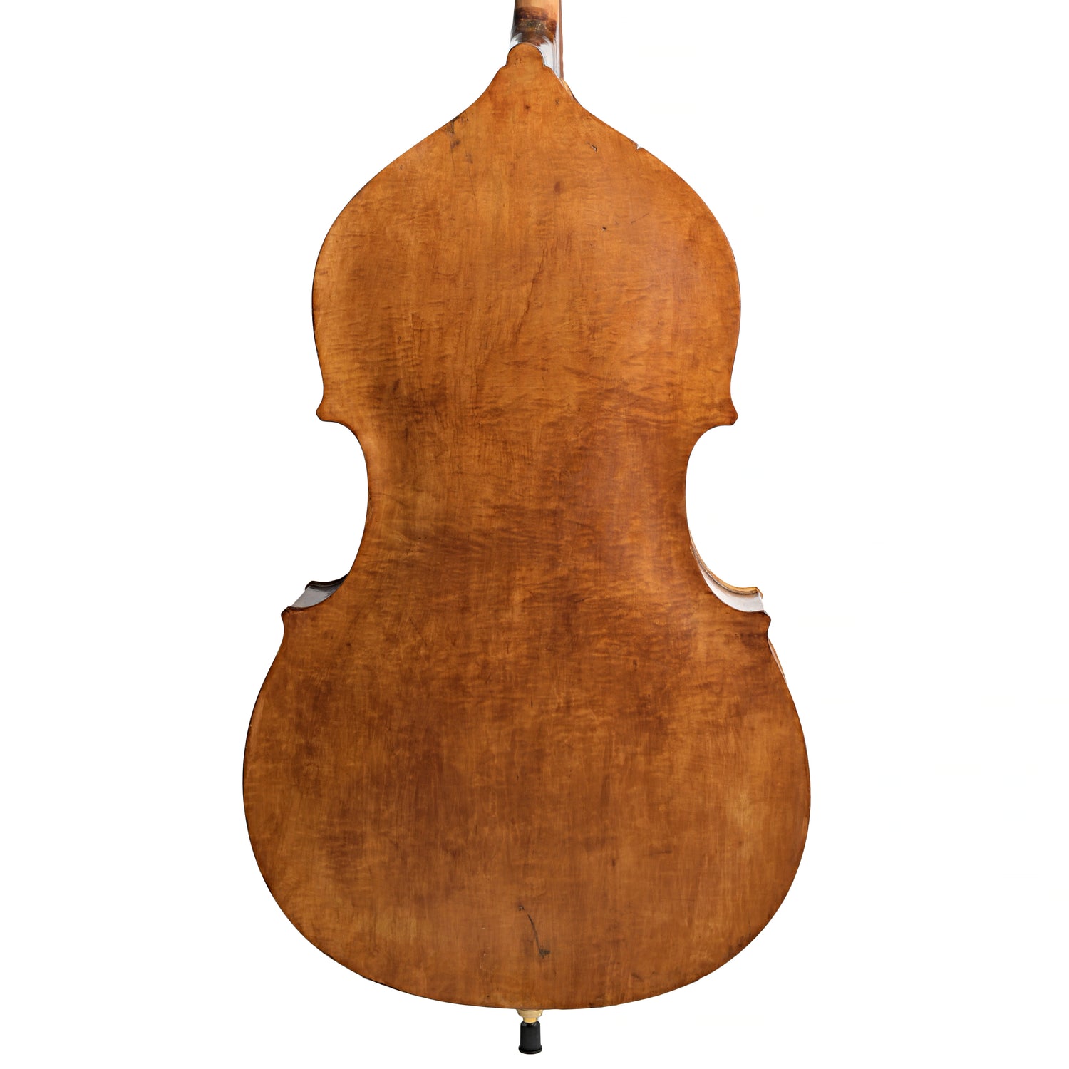Good player's instrument, 3/4 size body, refinished natural, laminated spruce top with f-holes, laminated maple sides and back, new rosewood fingerboard and tailpiece, new bridge, end pin, soundpost and nut, VGC+ (repaired heel), Sold AS-IS (needs fretboard planed, nut and bridge adjustments, etc.)