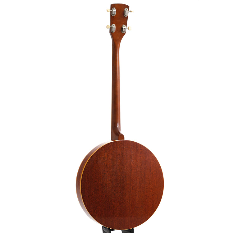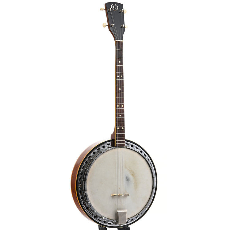 This tenor banjo was made by Kay and features a bound mahogany resonator, multi-ply rim, 11” plastic head, single coordinator rod, 19 fret bound Brazilian rosewood fingerboard, Kluson Deluxe tuners. This banjo needs work to make it play (could use correct height plastic head, new armrest, needs fret level, heat press neck, etc. - sold AS-IS)