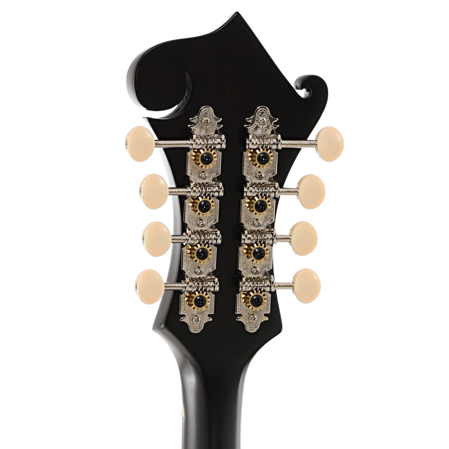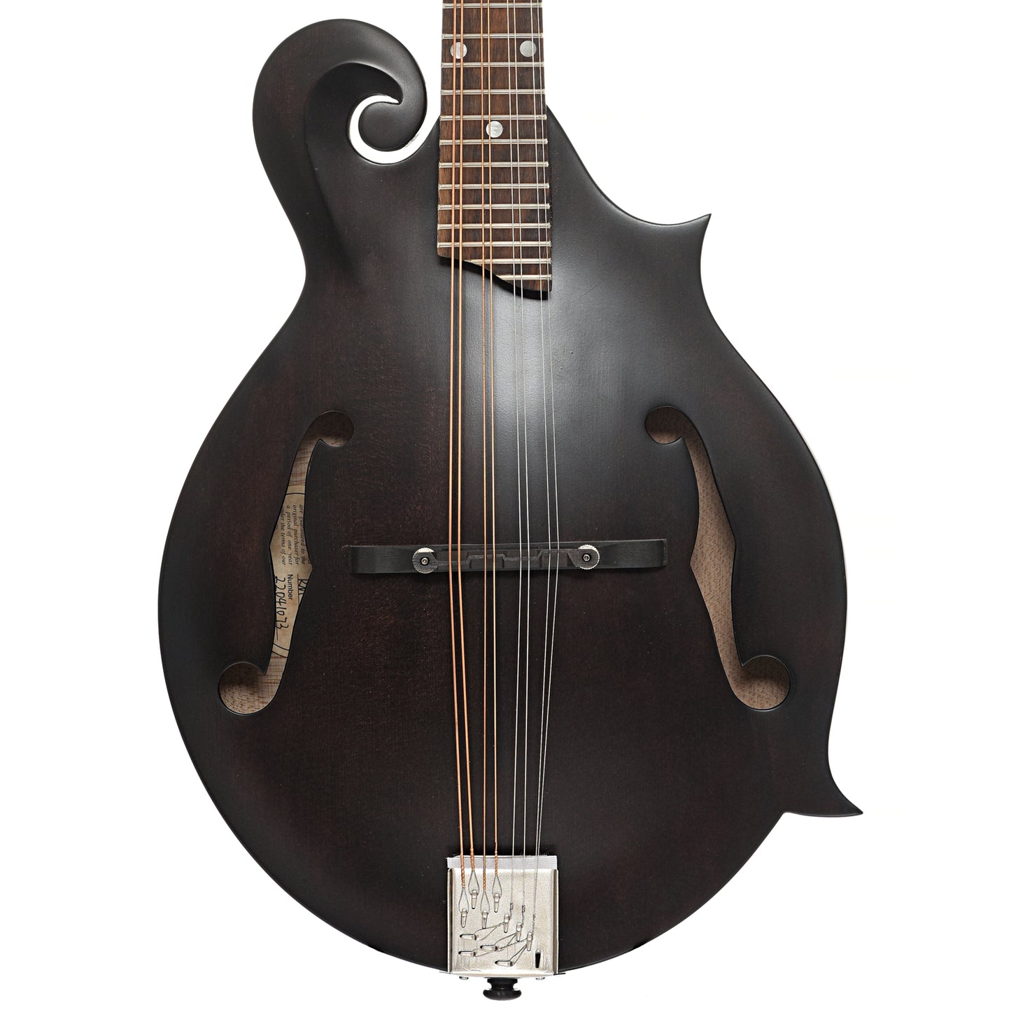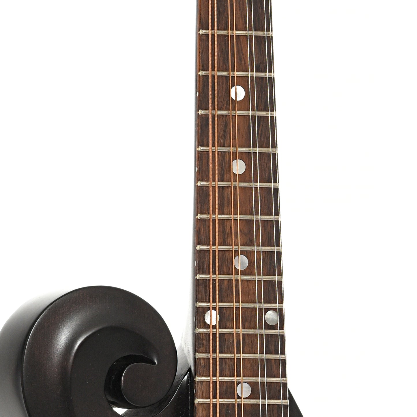 This fetching F-style mandolin has a satin brown finish on a carved spruce top and maple back and sides, a 1-piece maple neck, rosewood radius fingerboard and adjustable bridge. Original padded gigbag. Import.