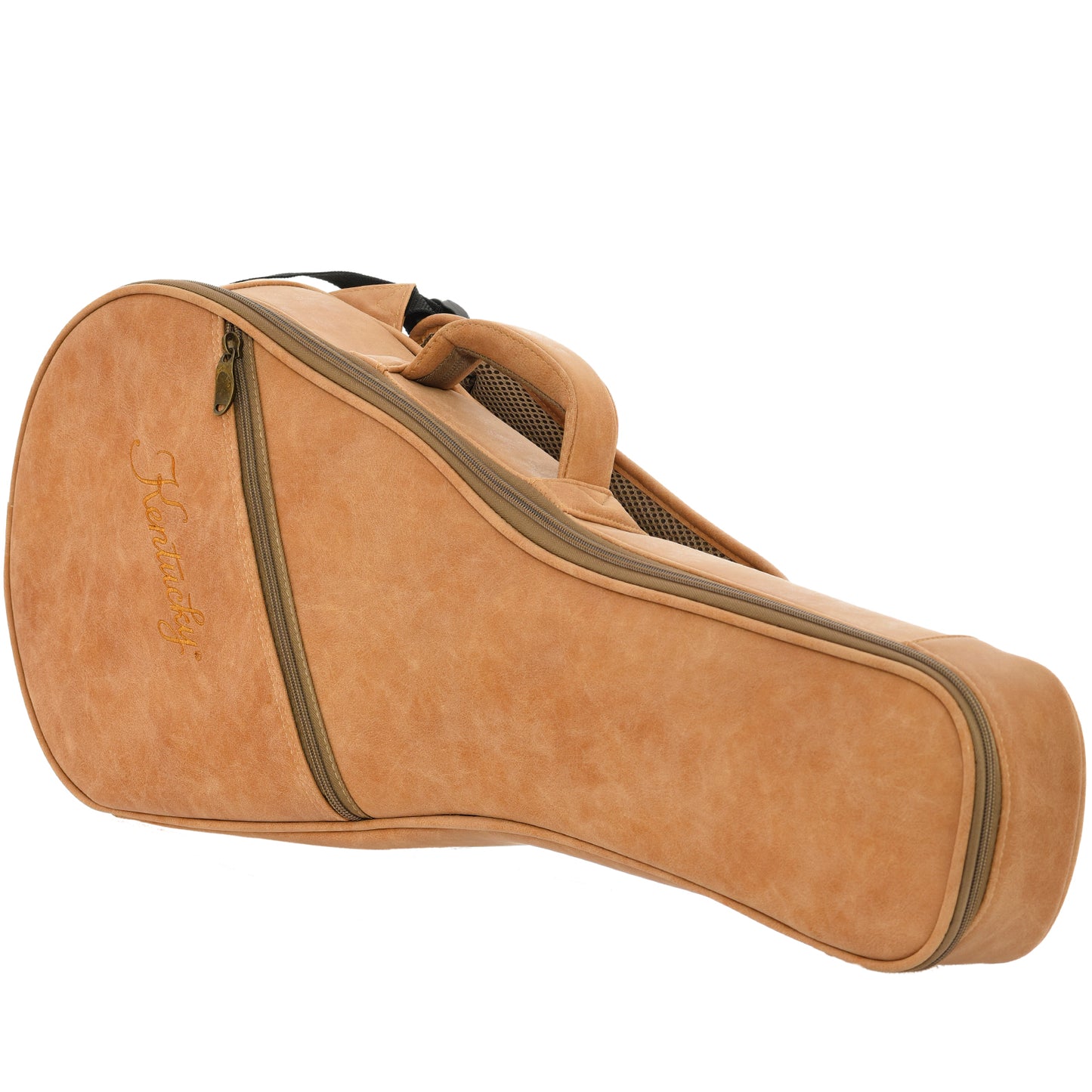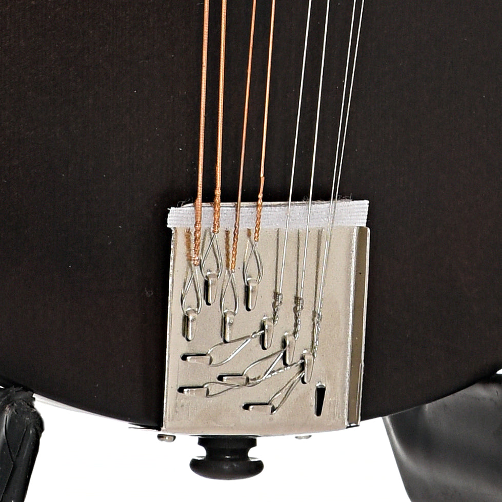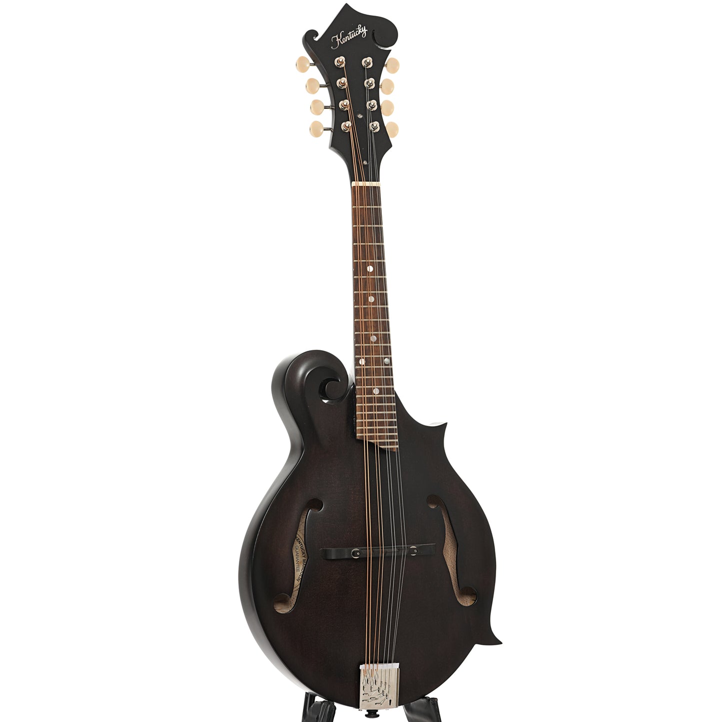 This fetching F-style mandolin has a satin brown finish on a carved spruce top and maple back and sides, a 1-piece maple neck, rosewood radius fingerboard and adjustable bridge. Original padded gigbag. Import.