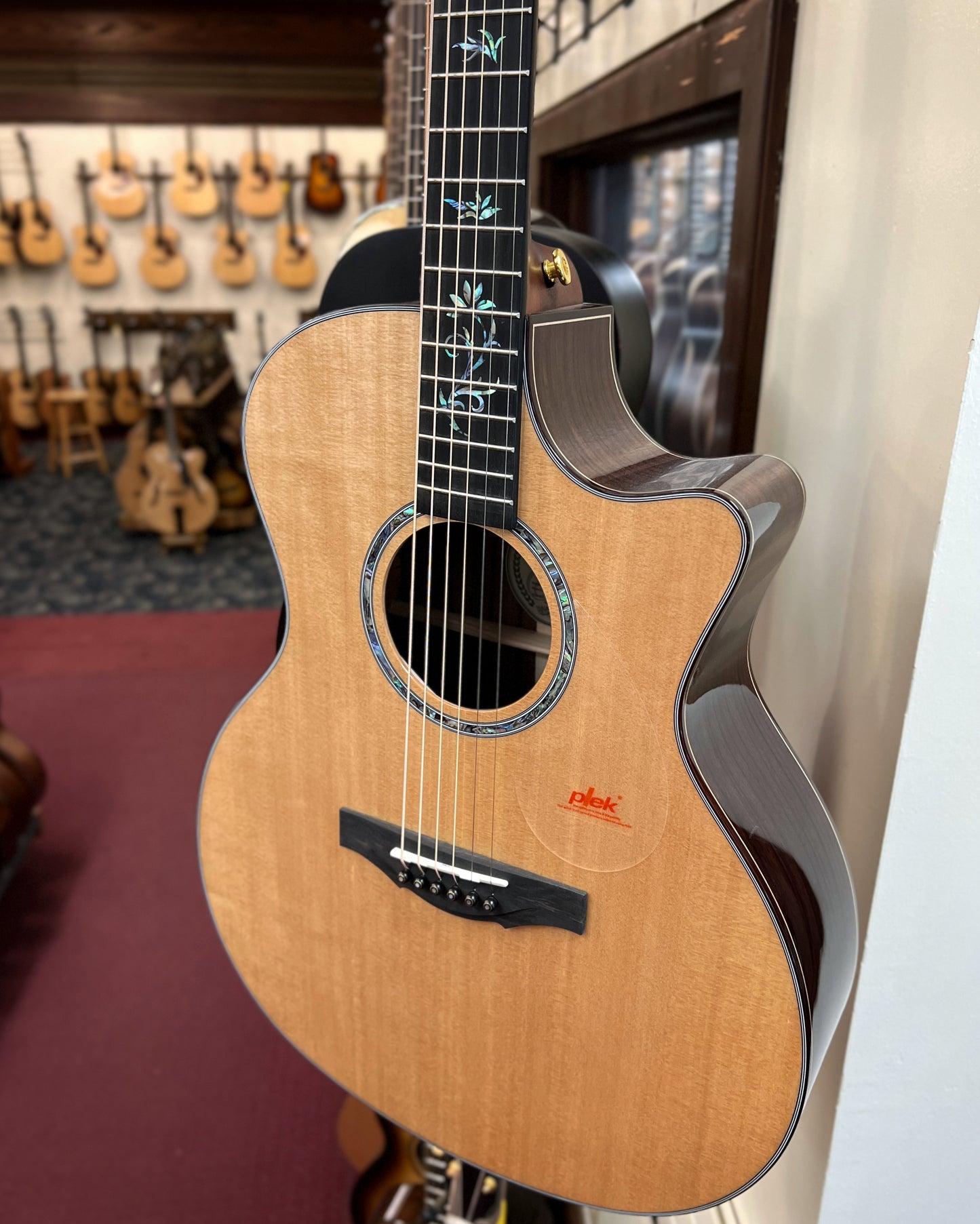 The Kepma GA1-120 delivers great acoustic tone with excellent playability. It features a solid AAA+ Alaskan Sitka Spruce top and solid Indian Rosewood back and sides with a re-engineered top bracing system that enhances projection. It’s bright where it needs to be, and gives you an amazingly detailed low end with dark undertones and clear articulation. It projects with balance, something every player wants but few guitars deliver.