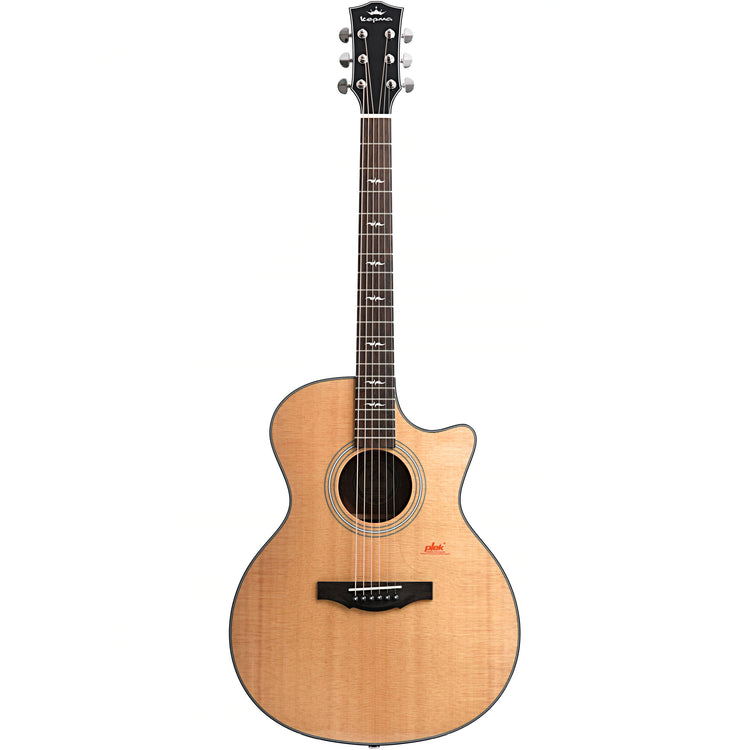 The Kepma GA2-131 delivers nice tone with excellent playability. It features a solid Alaskan Sitka Spruce top and African Mahogany back and sides with a re-engineered top bracing system that enhances projection. Attractive appointments complete the package.