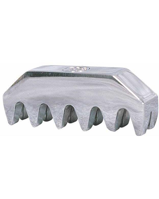Heavy, plated 6-pronged chunk of metal that fits over a straight bridge. An old standby that really deadens the sound, but also has a tendency to fall off while playing. You may want to secure it in place with a twisty-tie.