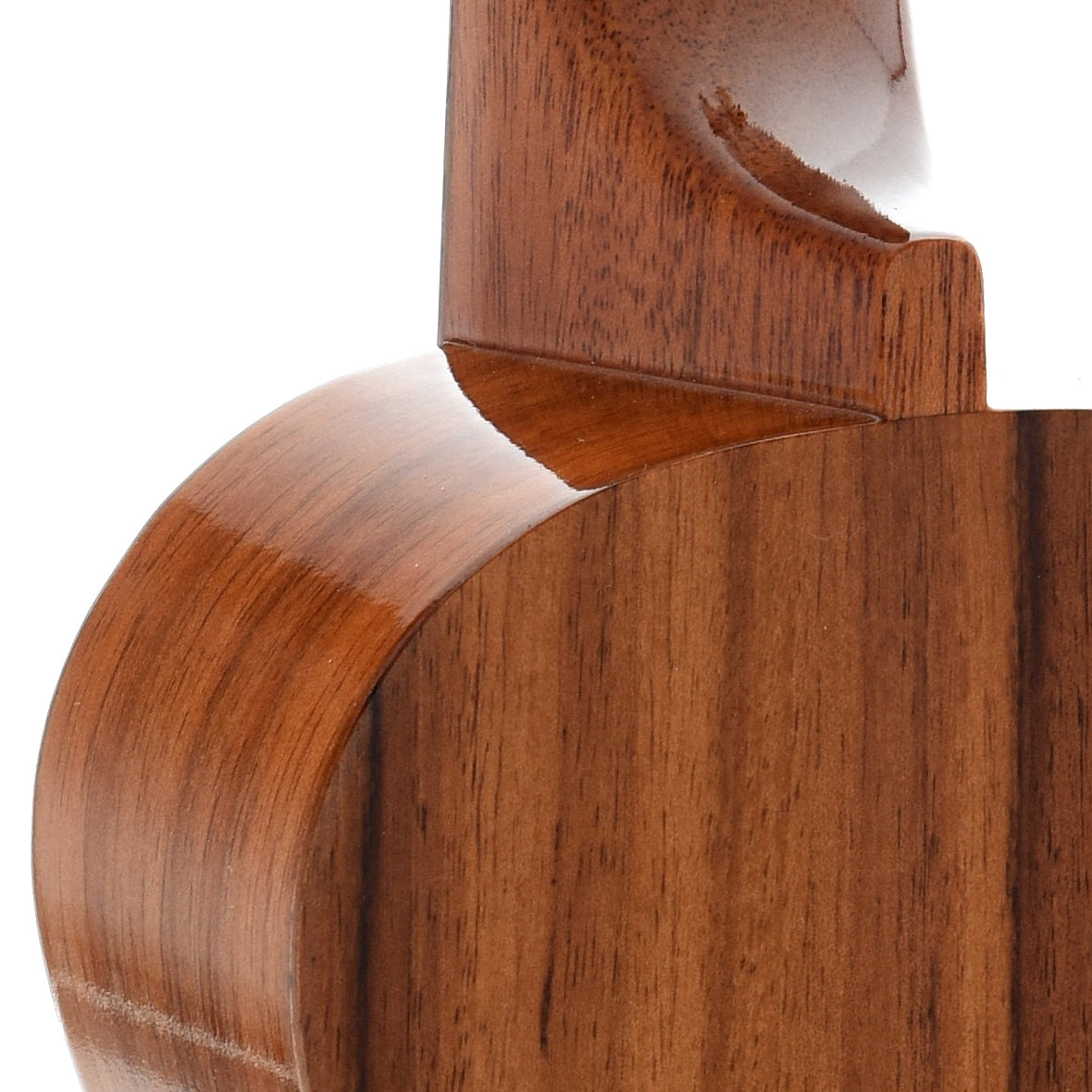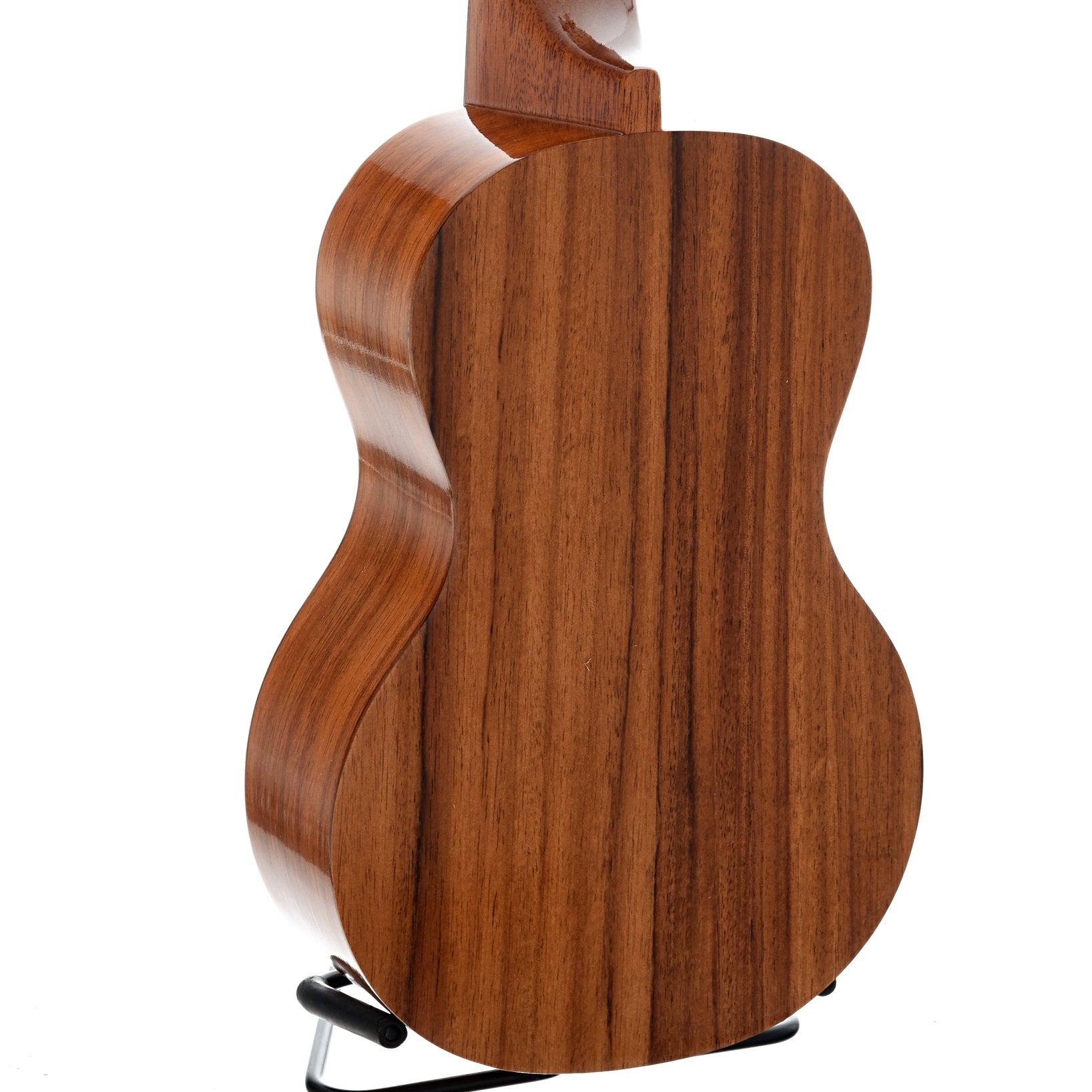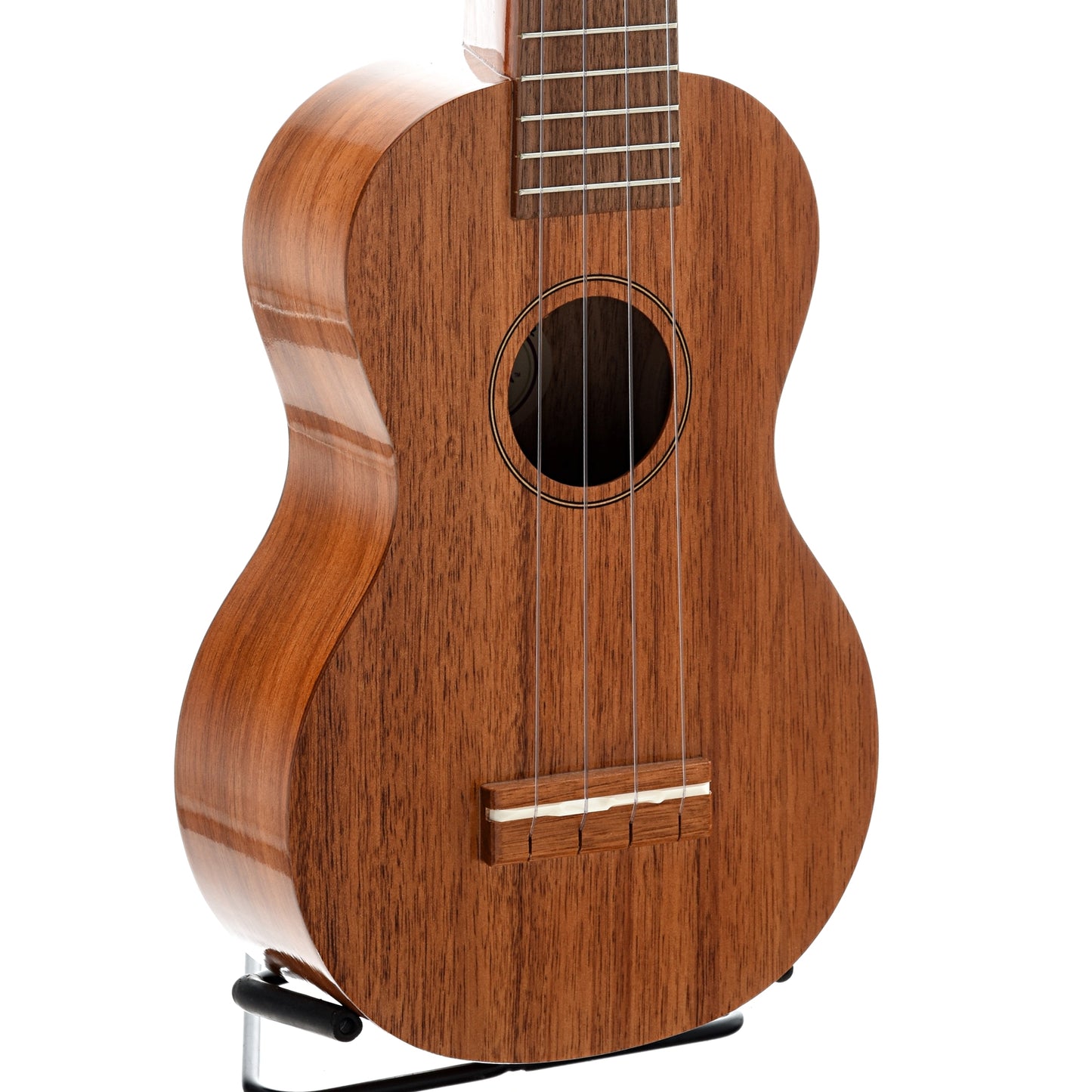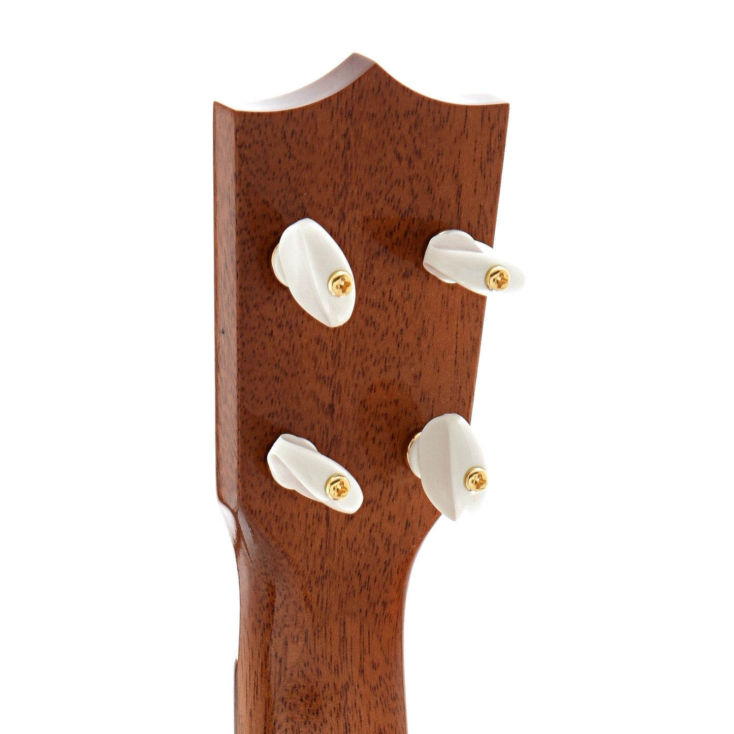 The Kiwaya Eco Series KS-5 soprano ukulele features a body made of extremely thin laminated koa to preserve valuable forest resources. Other features include a solid mahogany neck and gold Gotoh friction pegs with white buttons. The bonus? It sounds great.