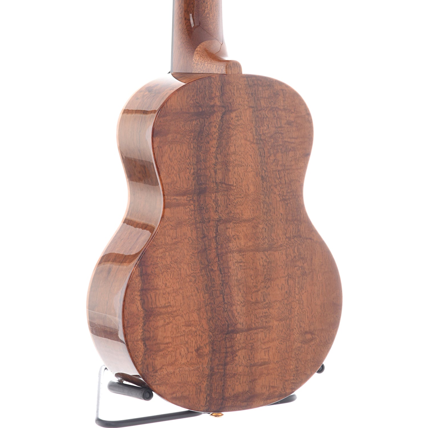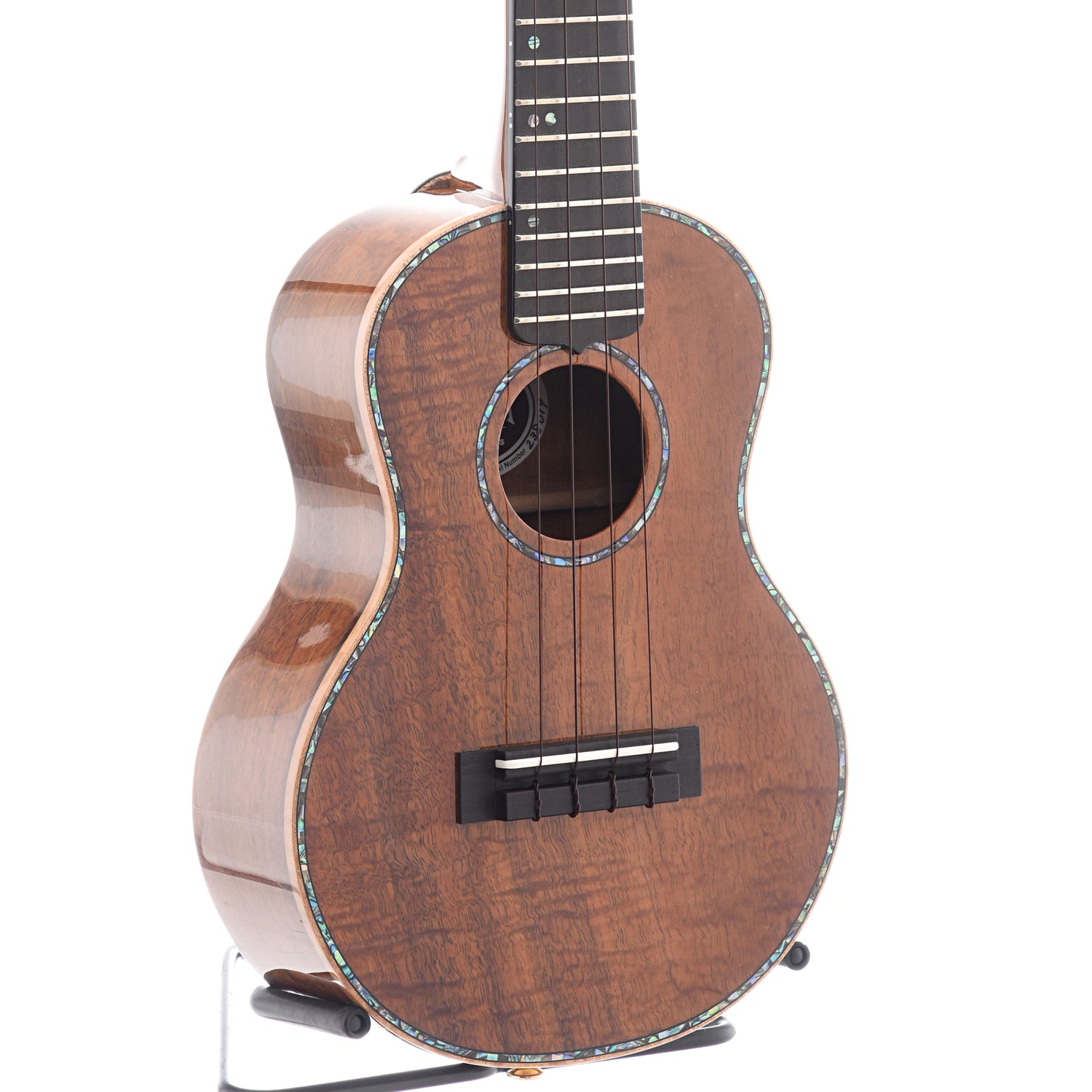 The Kiwaya KPC-5K Strummer Series concert ukulele is an exceptional instrument and somewhat rare in the USA. It's built with stunning all solid, highly flamed 5A Hawaiian koa. Fine appointments include ebony fingerboard and bridge, abalone inlay and binding, gold Gotoh planetary tuners, and a high gloss finish. Impressive.