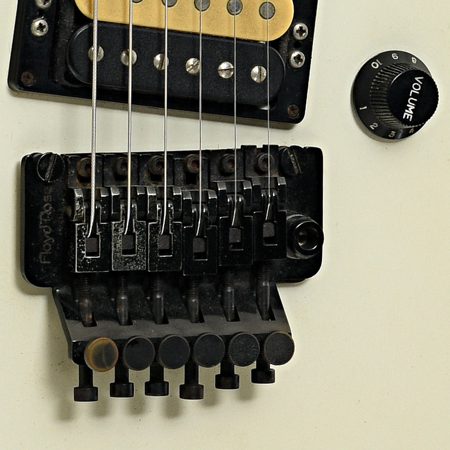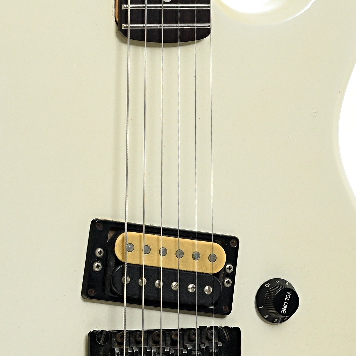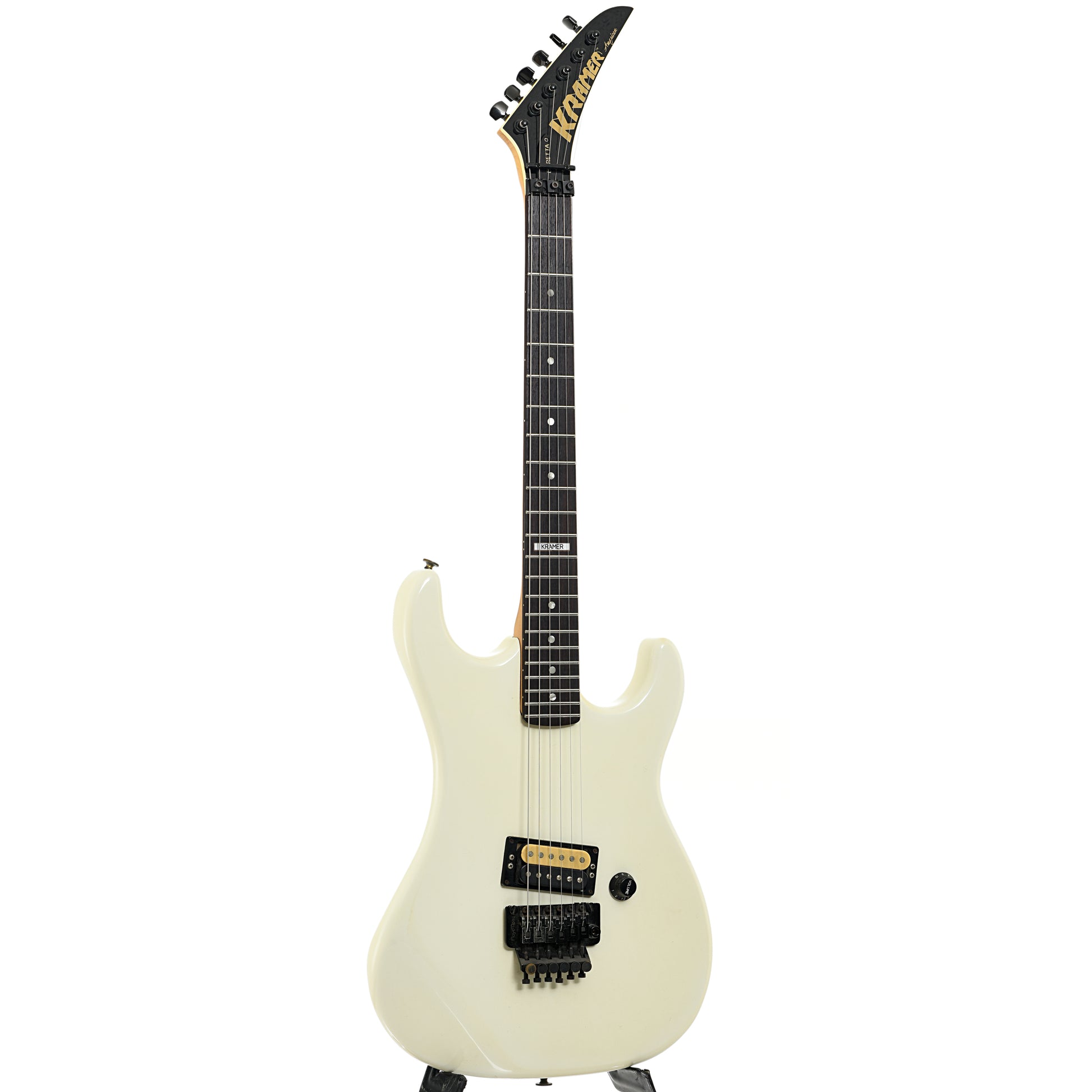 The 80s shred again with this Kramer Baretta! Features include a gloss white finish on poplar body, a single Schaller humbucking pickup and Schaller tuners, Floyd Rose locking tremolo and nut. Later Kramer neck installed with 22-fret rosewood fingerboard with "KRAMER" inlay block. Original hard shell case. Assembled in USA. (expert headstock repair and overspray by our shop)