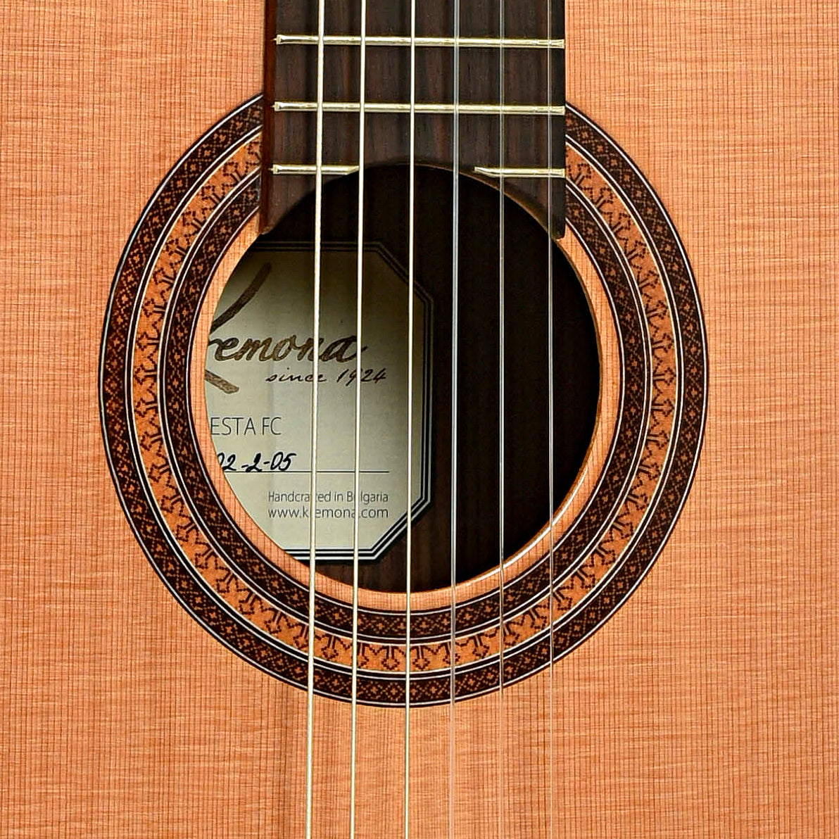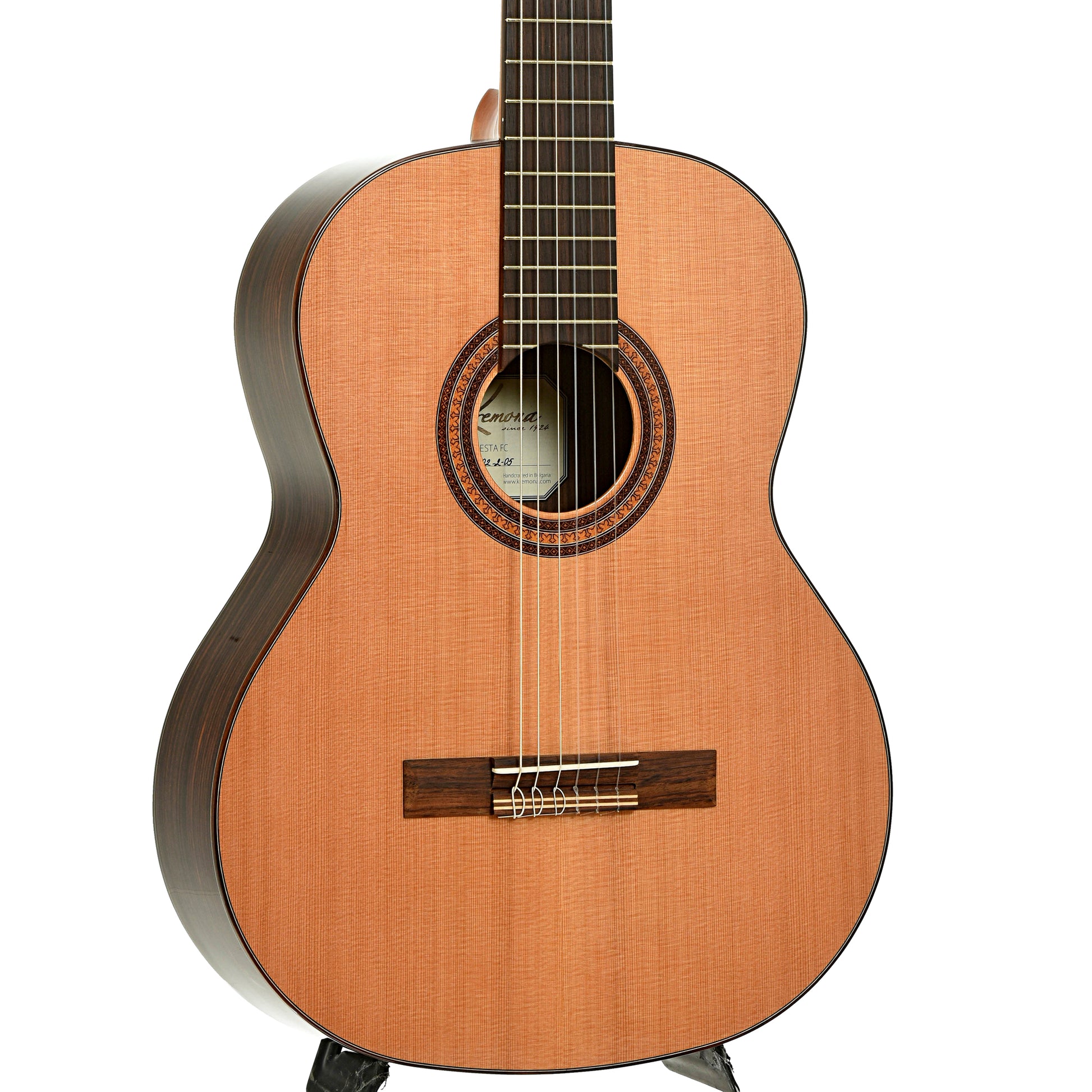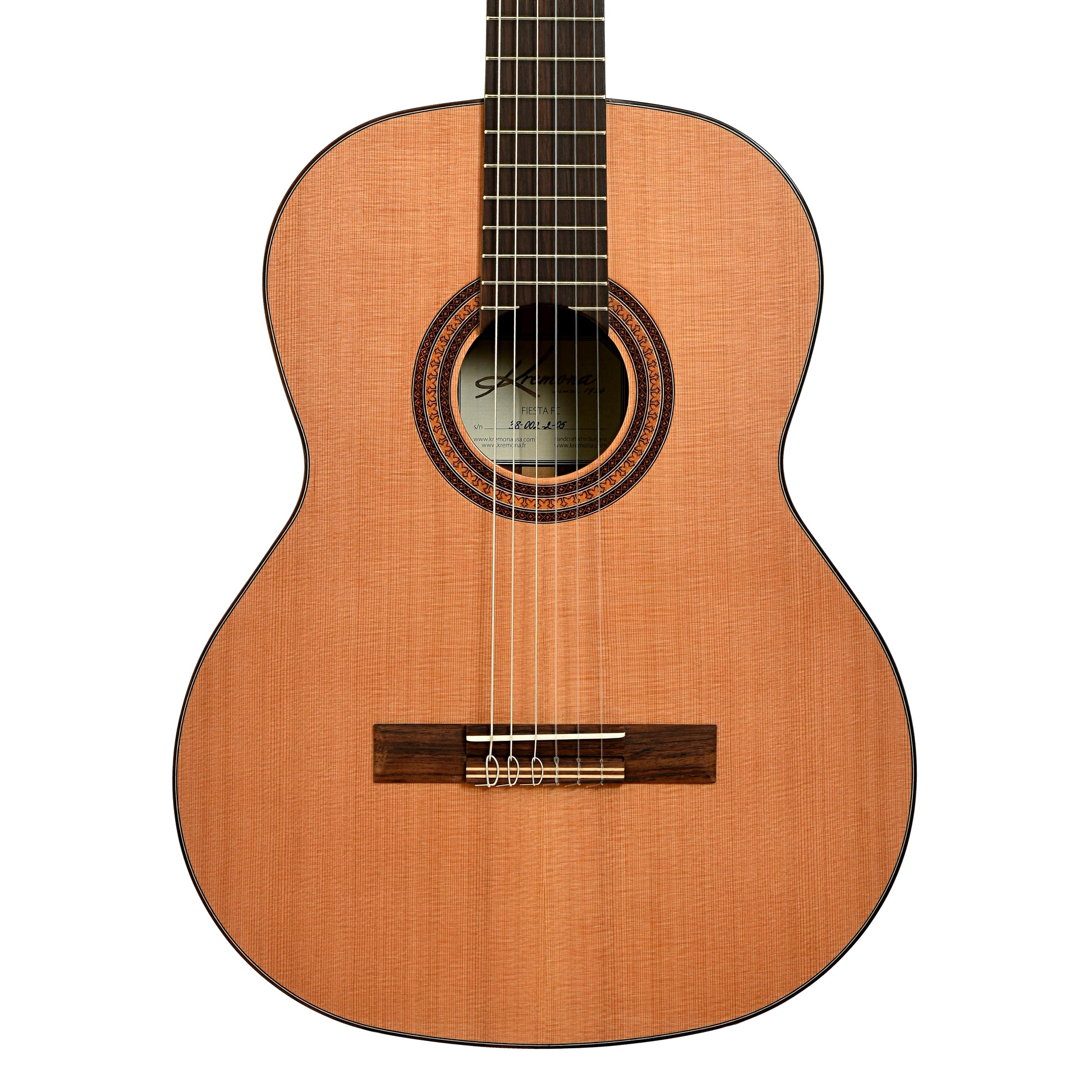 Unusual dark stain marks in finish on treble side by the waist, priced accordingly. The Kremona Fiesta model is a traditionally voiced favorite of guitarists around the world. Handcrafted with a solid western red cedar top, solid Indian rosewood and intricate appointments. It offers a balanced sound with rich lows and focused midrange tones, perfect for classical, jazz, pop and more.
