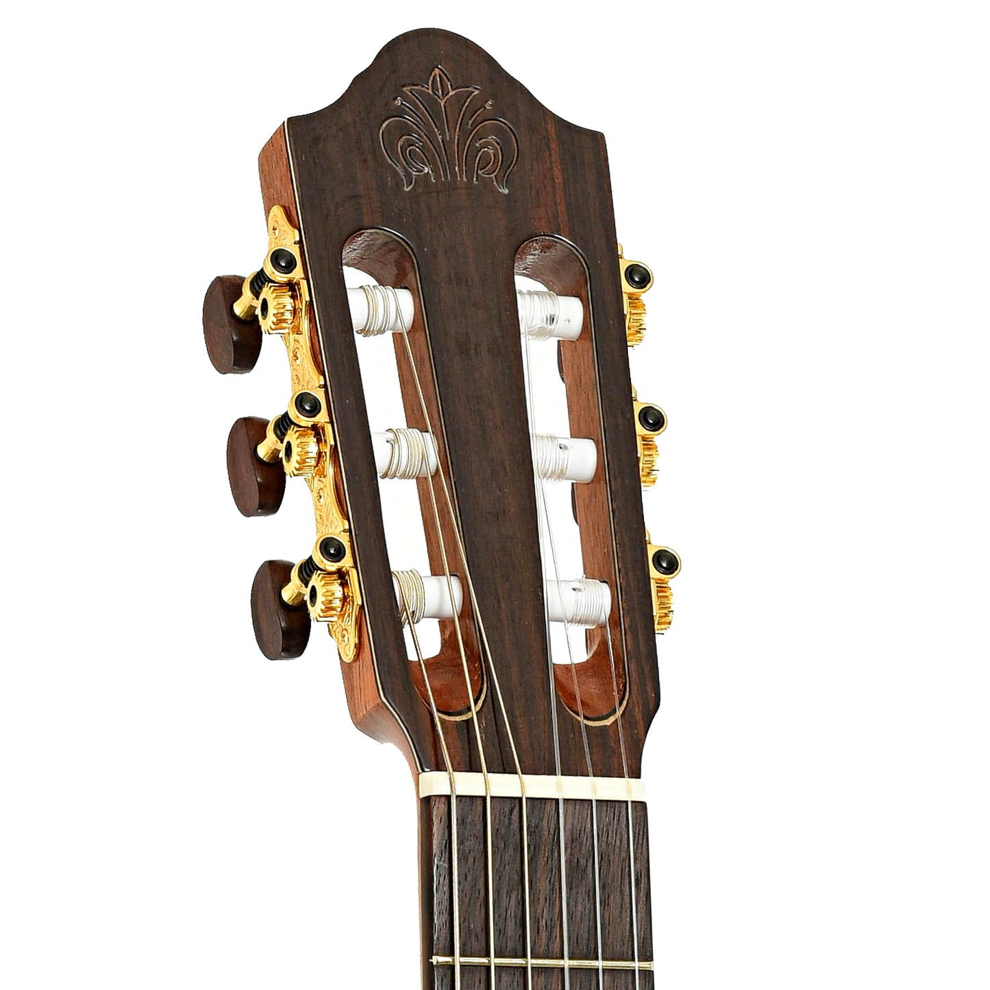 - Gold tuning machines with rosewood buttons