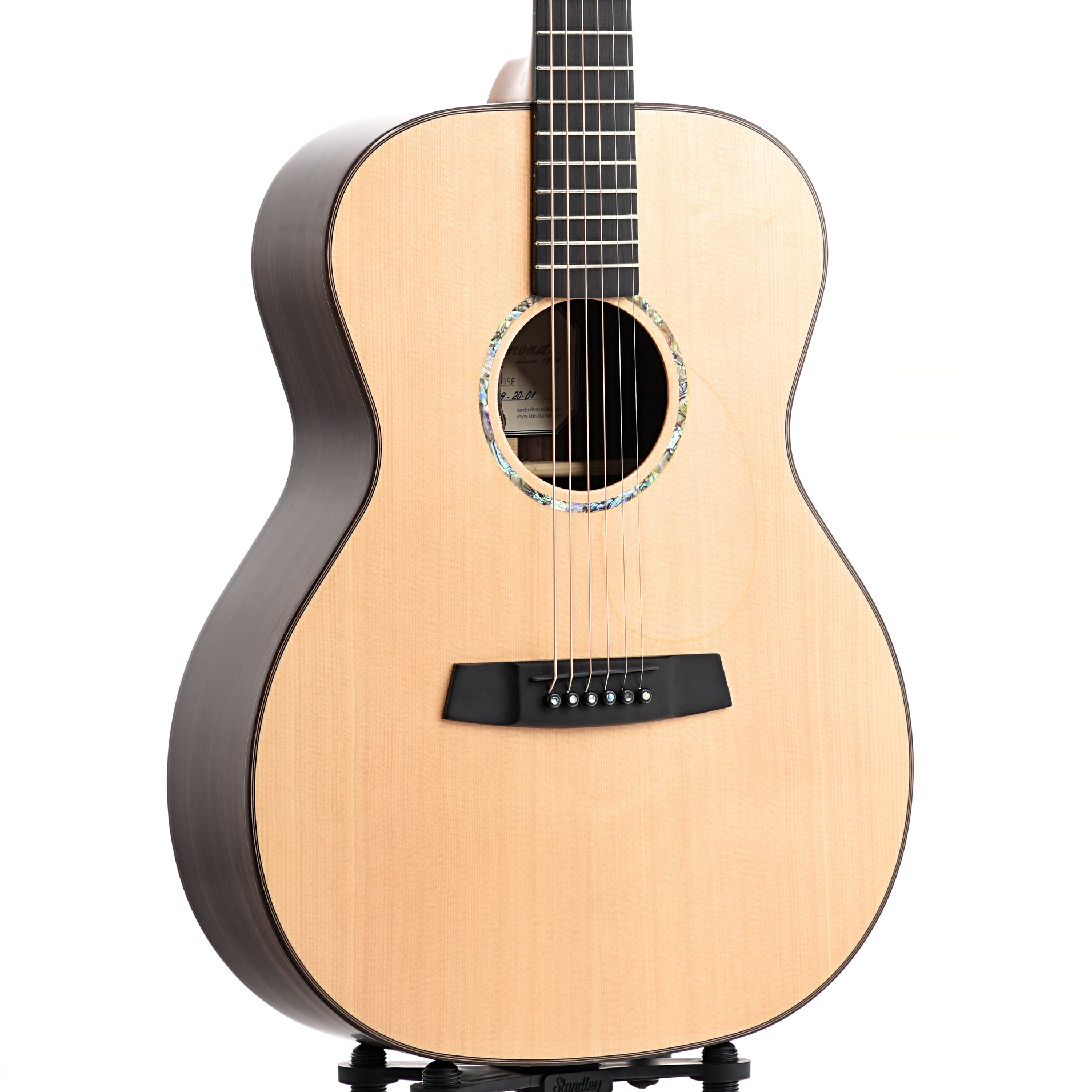 An alluring OM guitar, the R35E melds Kremona's old world craftsmanship with decidedly contemporary looks. With an all solid spruce top and solid rosewood back and sides, the sound is impressive. It has distinguished ebony and abalone appointments and is stage ready with LR Baggs electronics. Plus, it comes with a deluxe hardshell case.